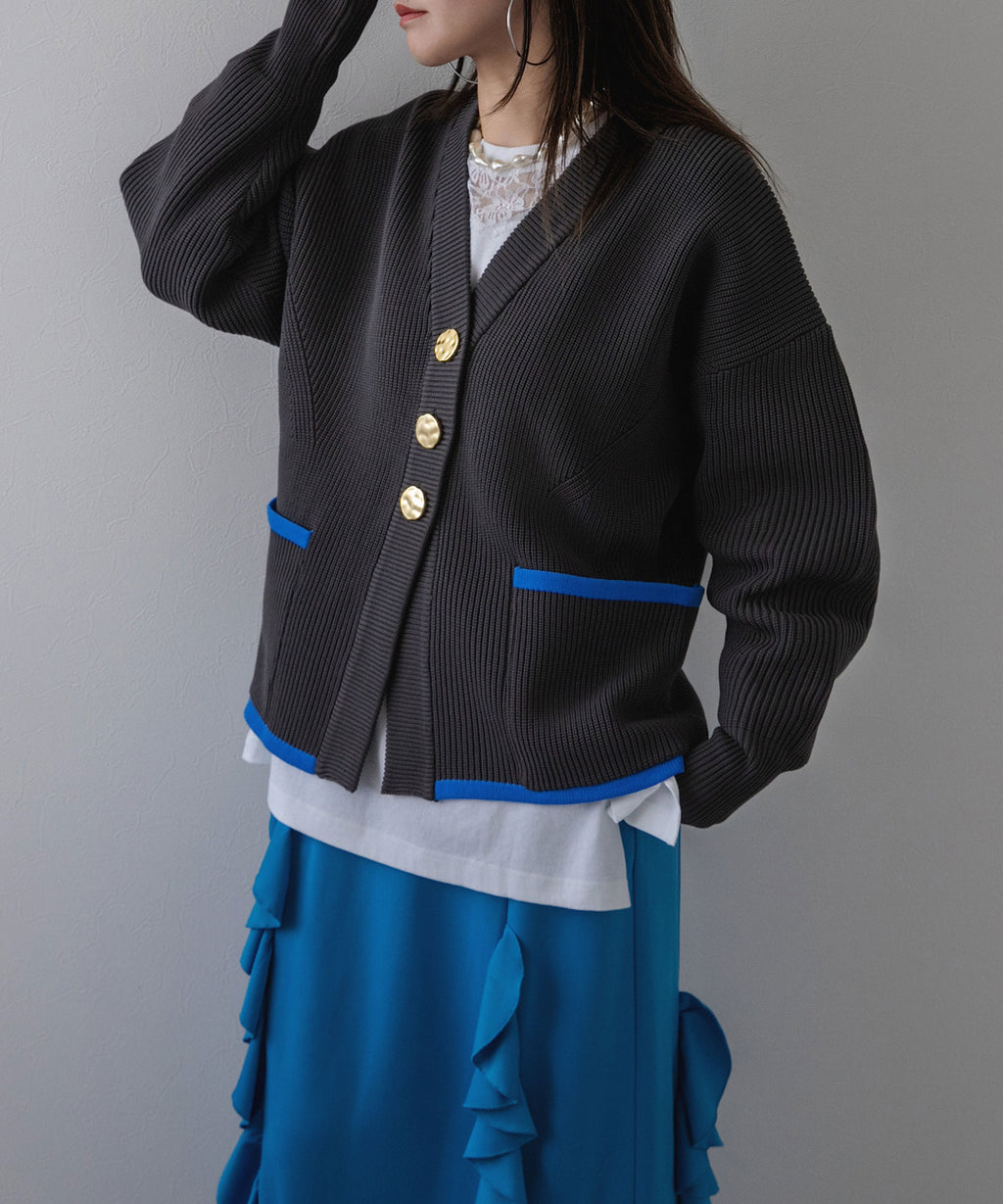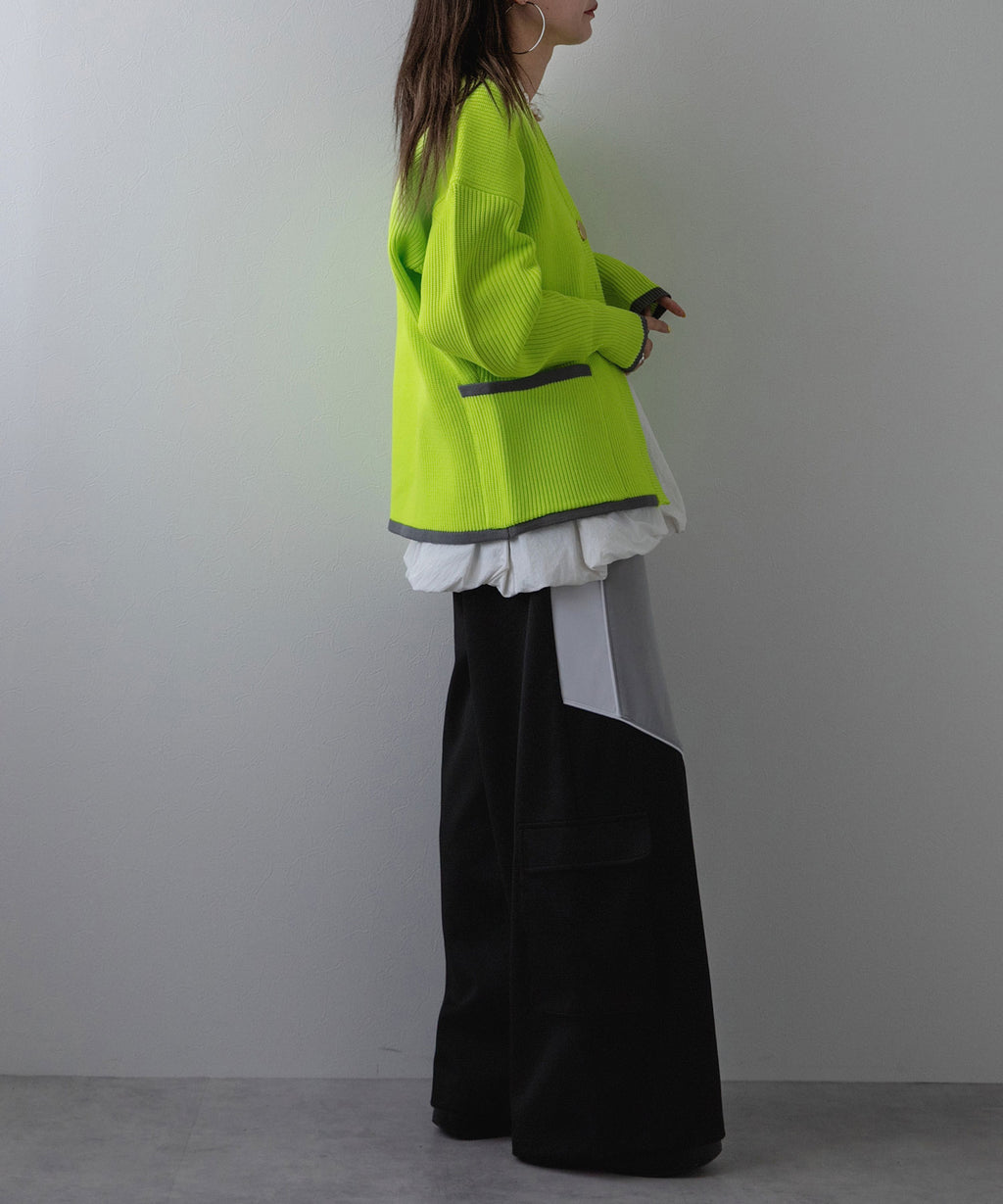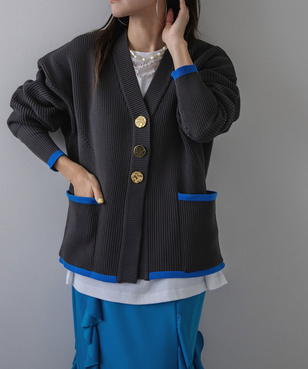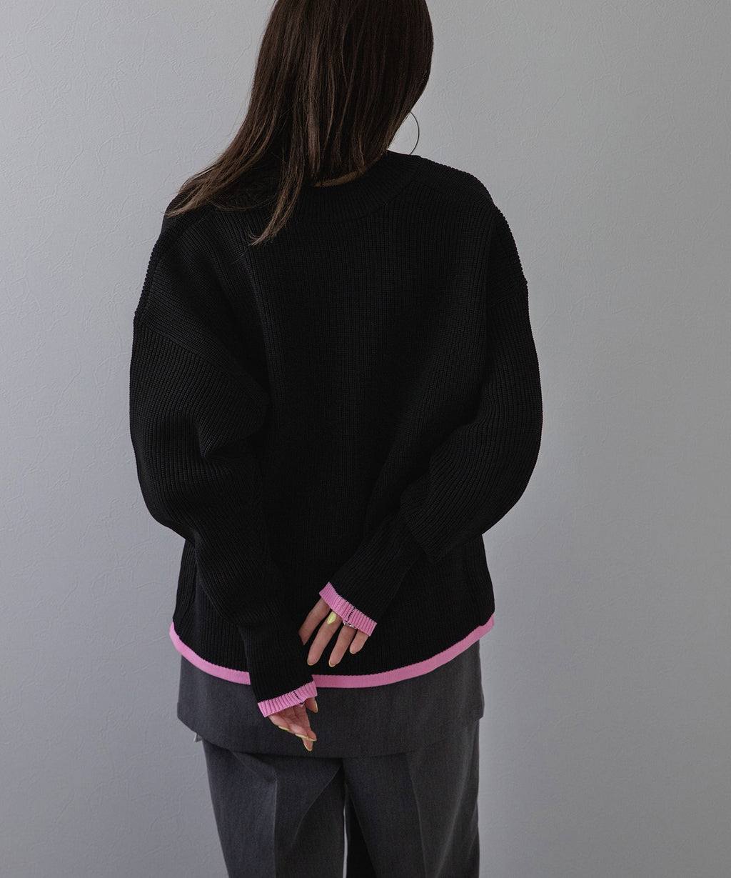 袖口・裾・ポケット口に施された配色がアクセントとなり、シンプルながらも存在感のある1枚です。