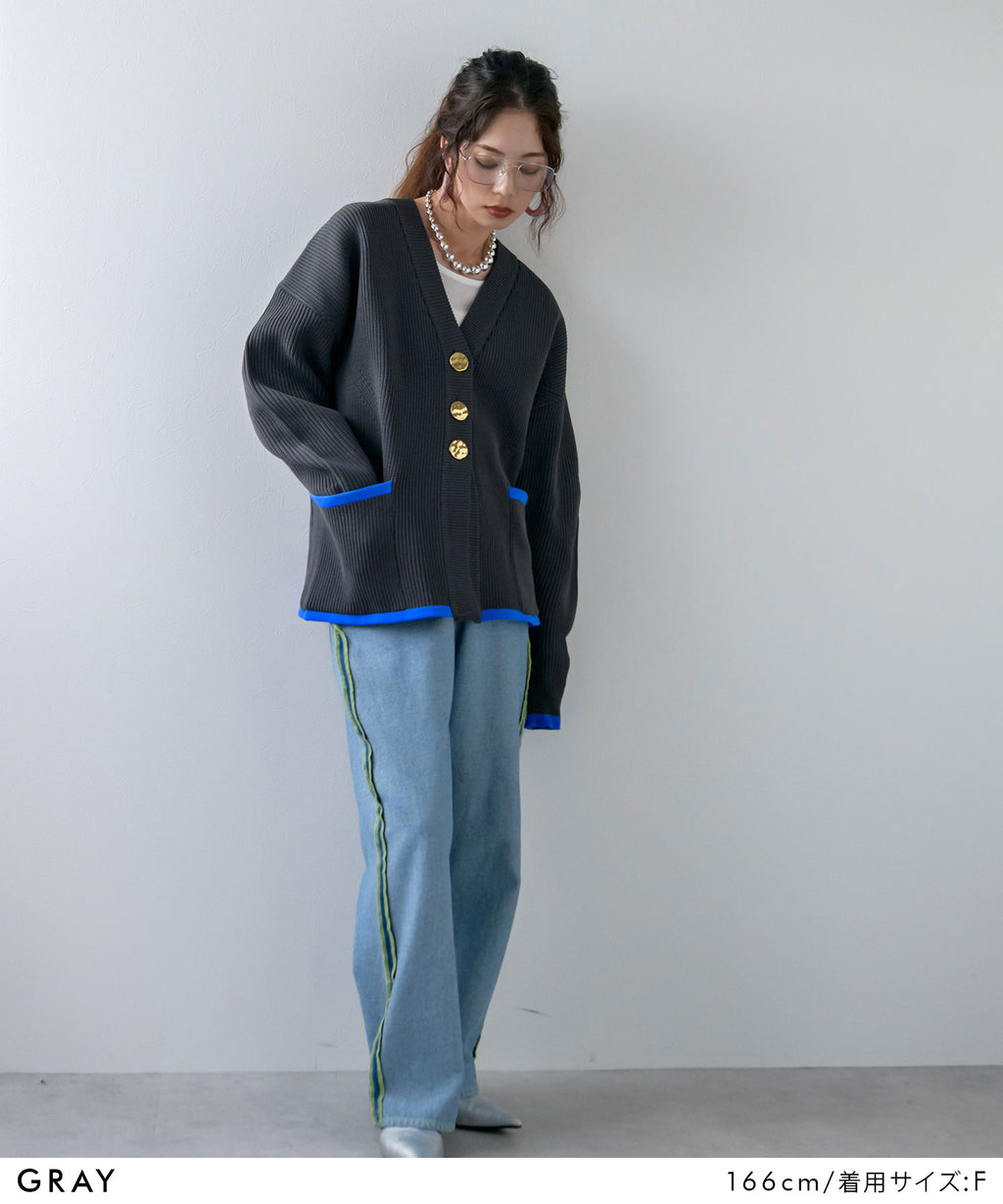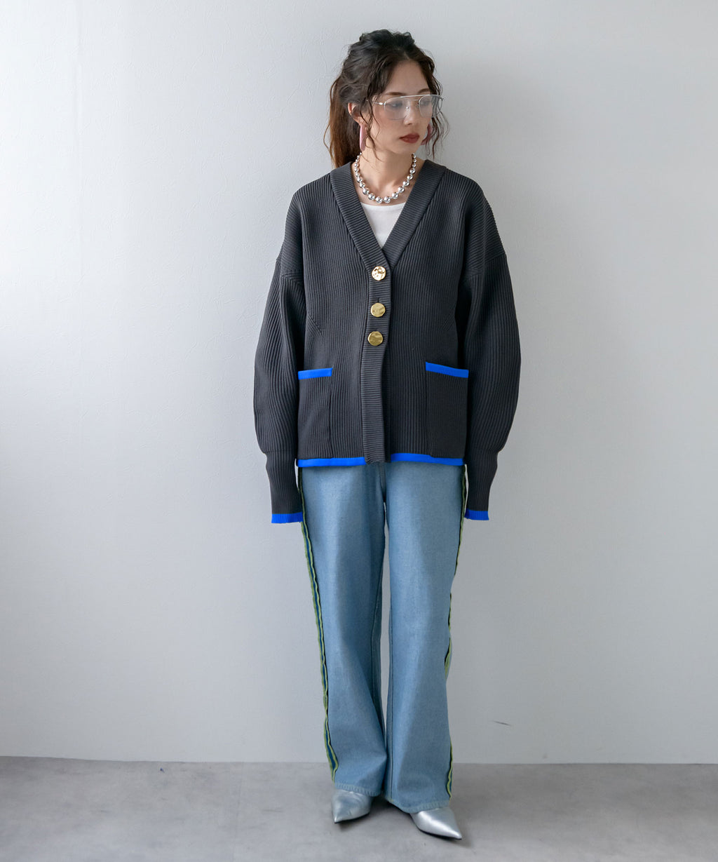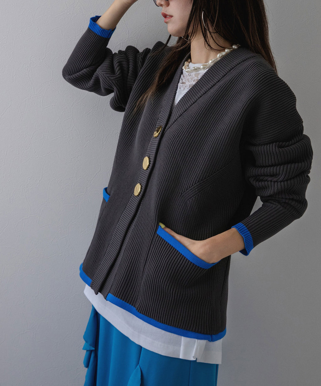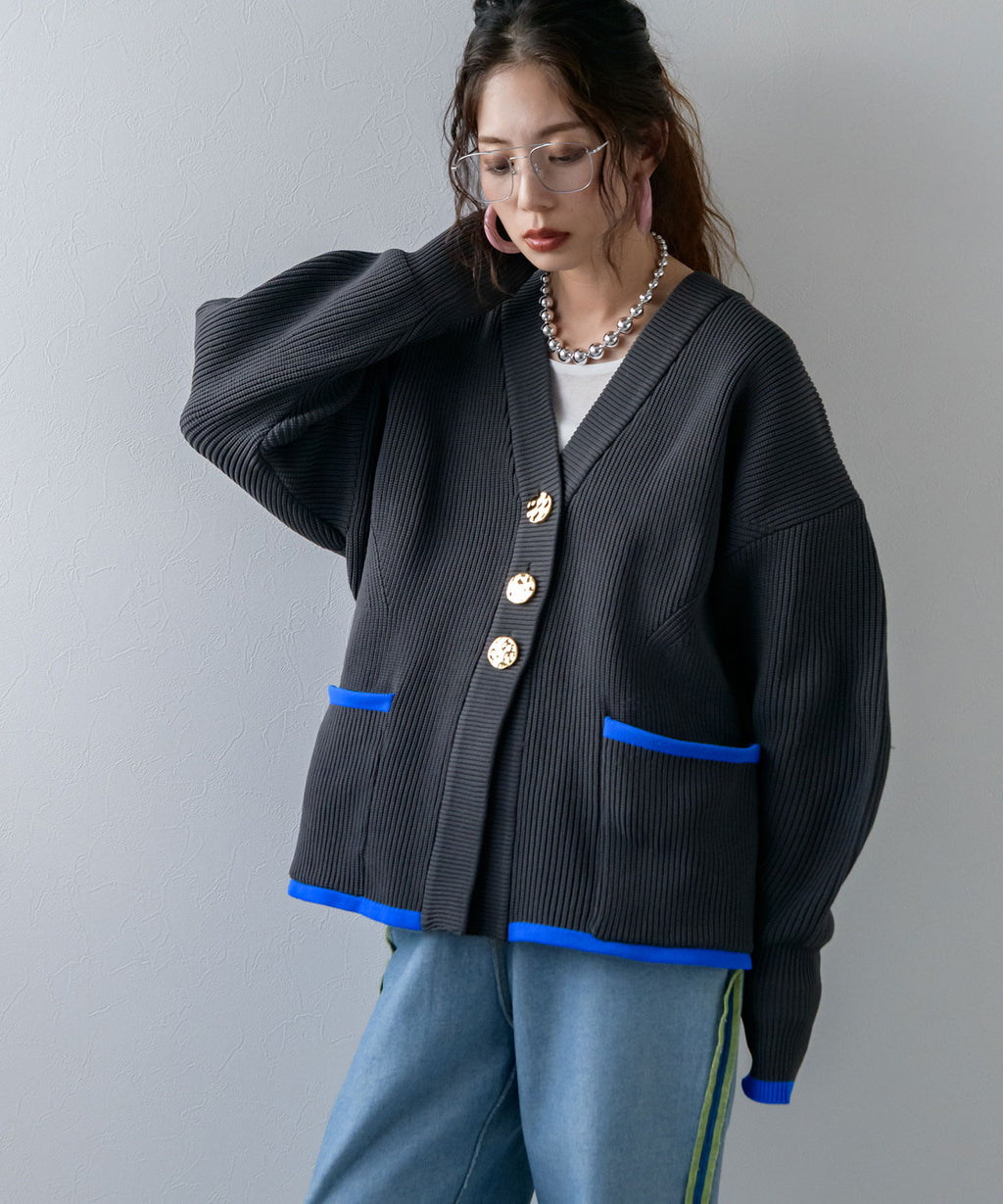 袖口・裾・ポケット口に施された配色がアクセントとなり、シンプルながらも存在感のある1枚です。