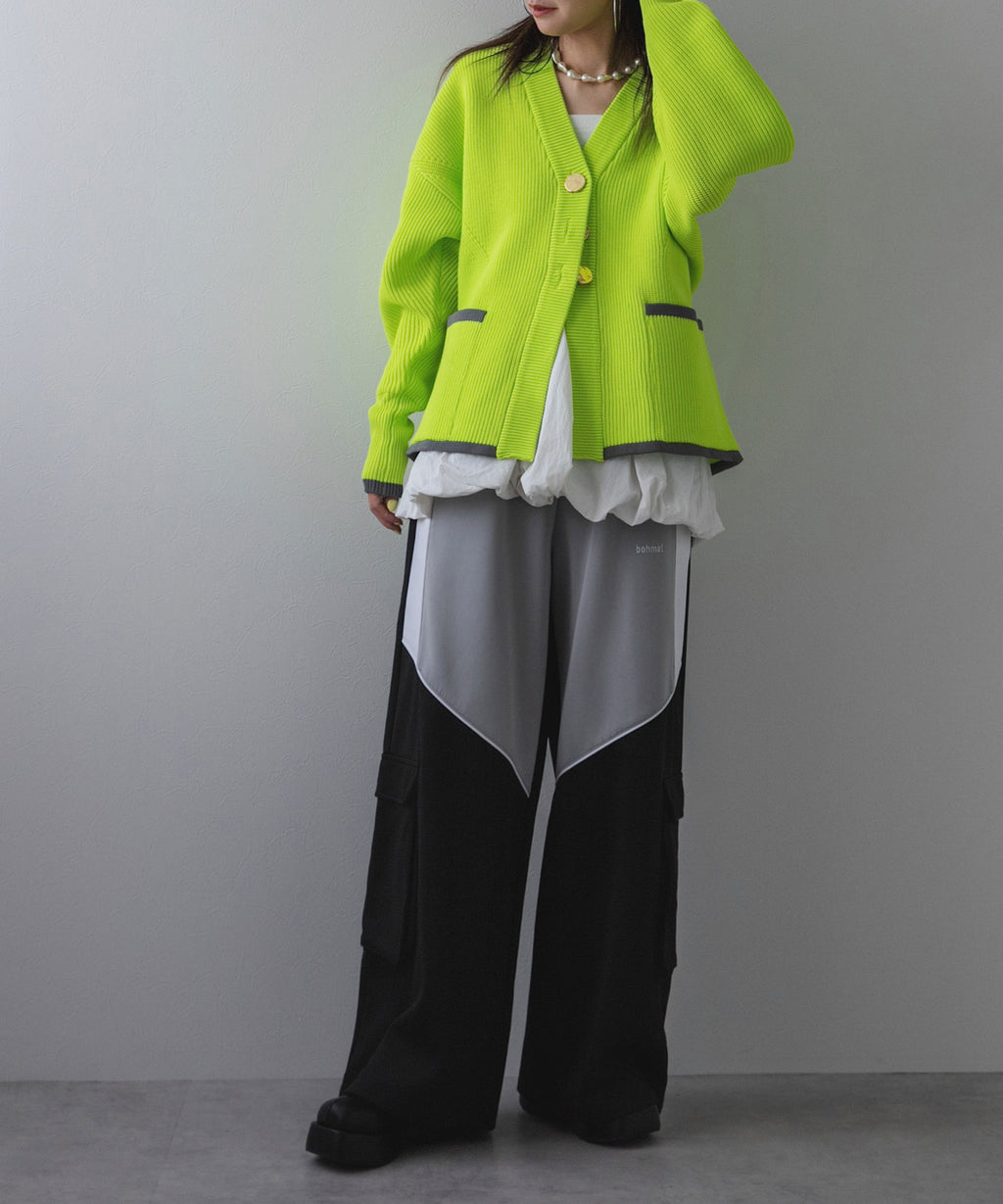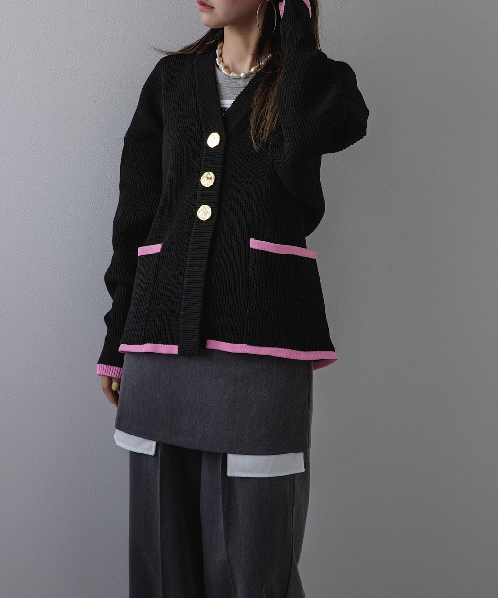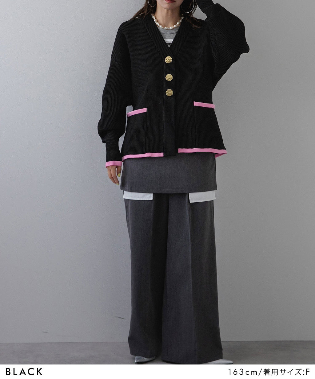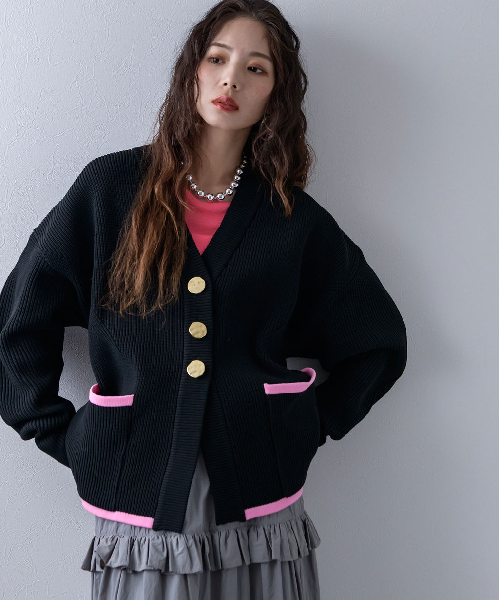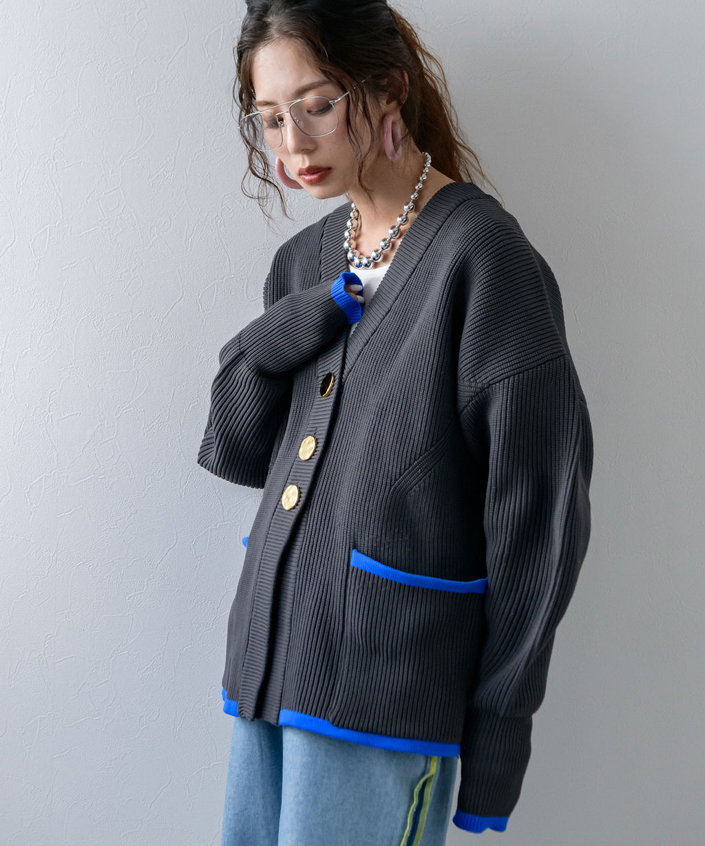 袖口・裾・ポケット口に施された配色がアクセントとなり、シンプルながらも存在感のある1枚です。