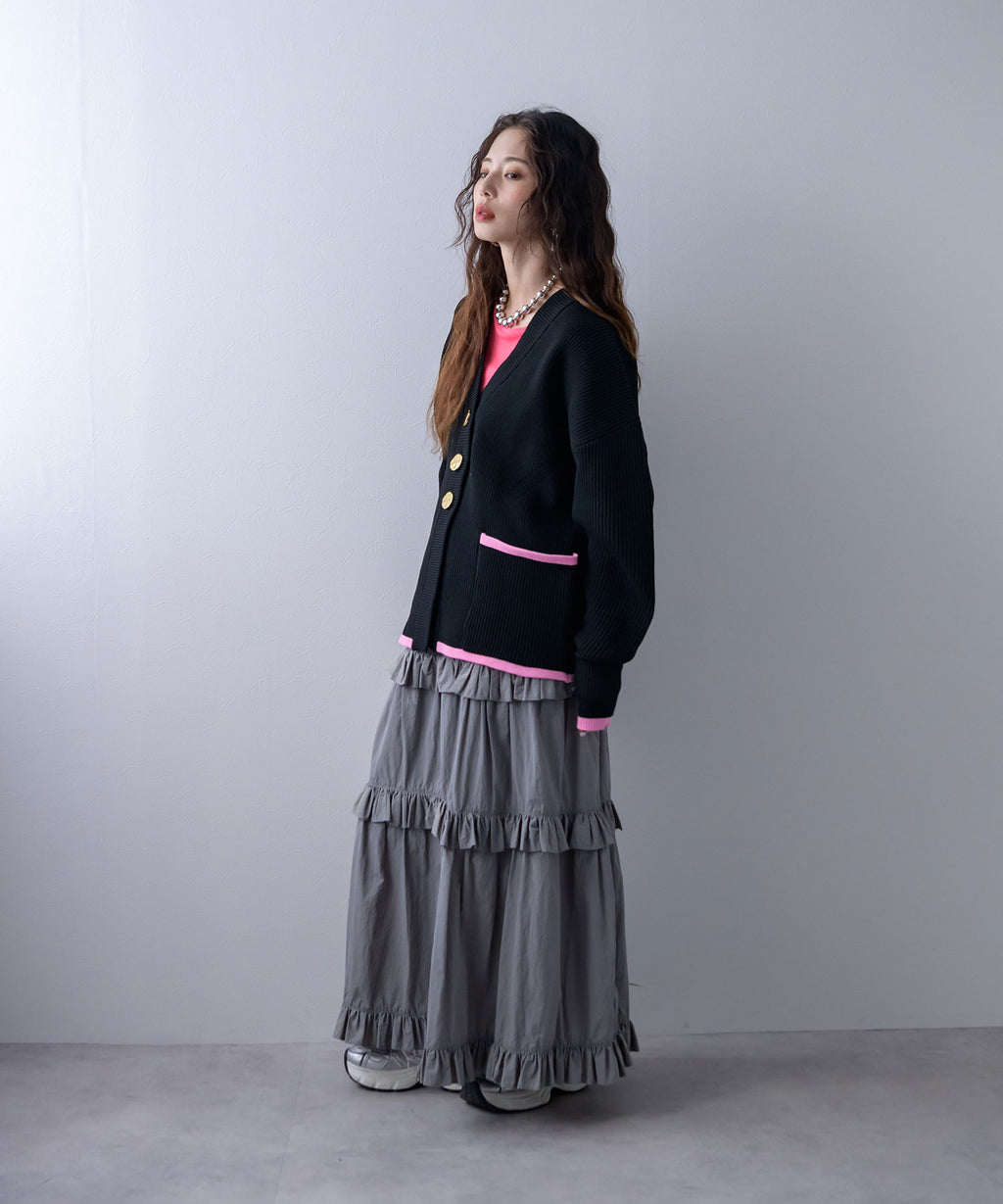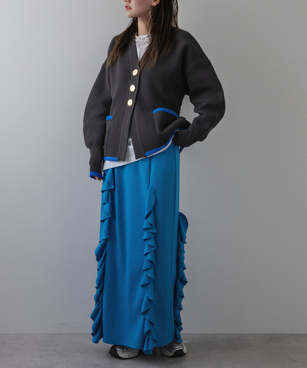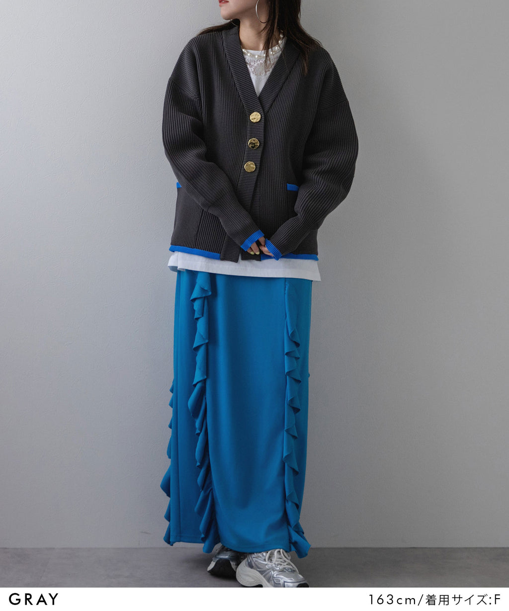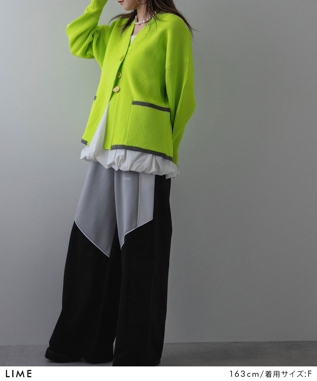 袖口・裾・ポケット口に施された配色がアクセントとなり、シンプルながらも存在感のある1枚です。