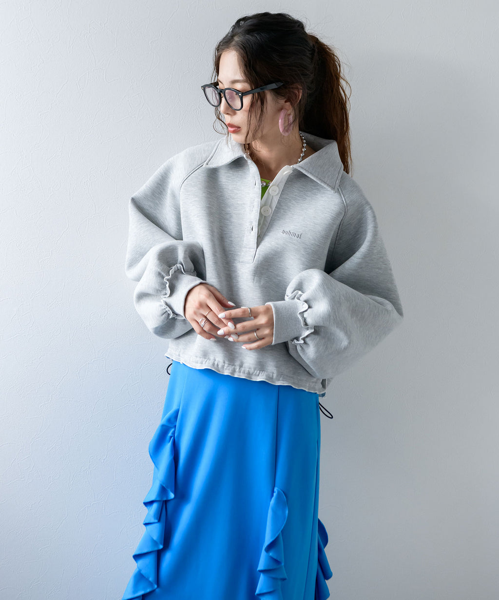 襟付き仕様でカジュアルすぎず、上品な抜け感を演出。