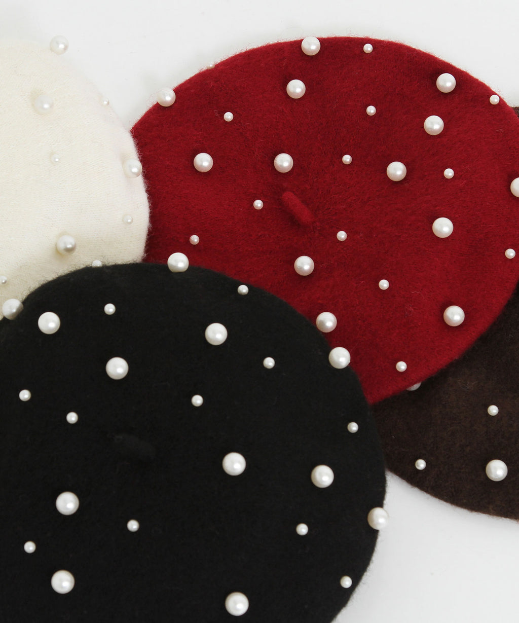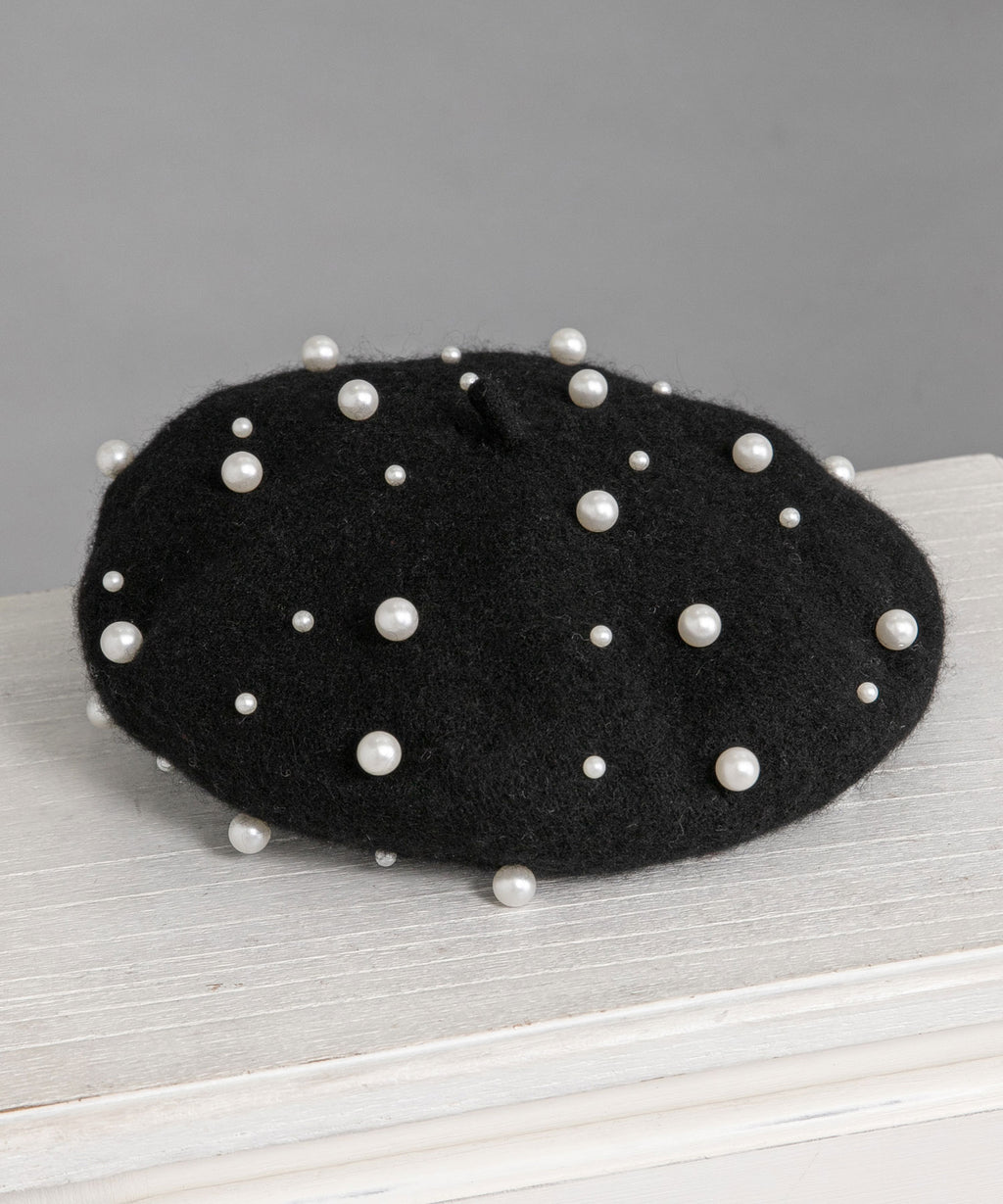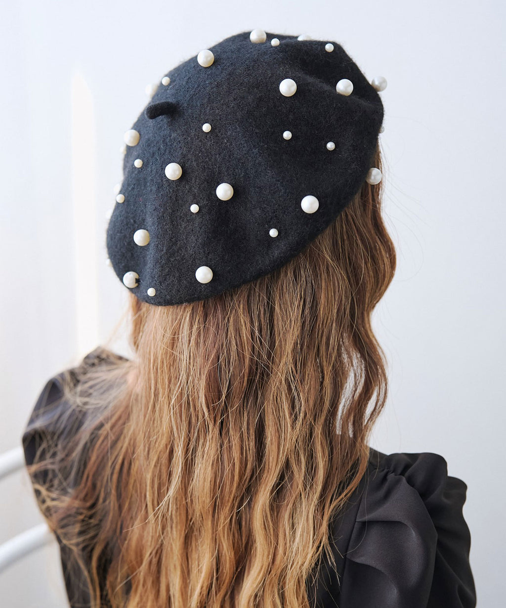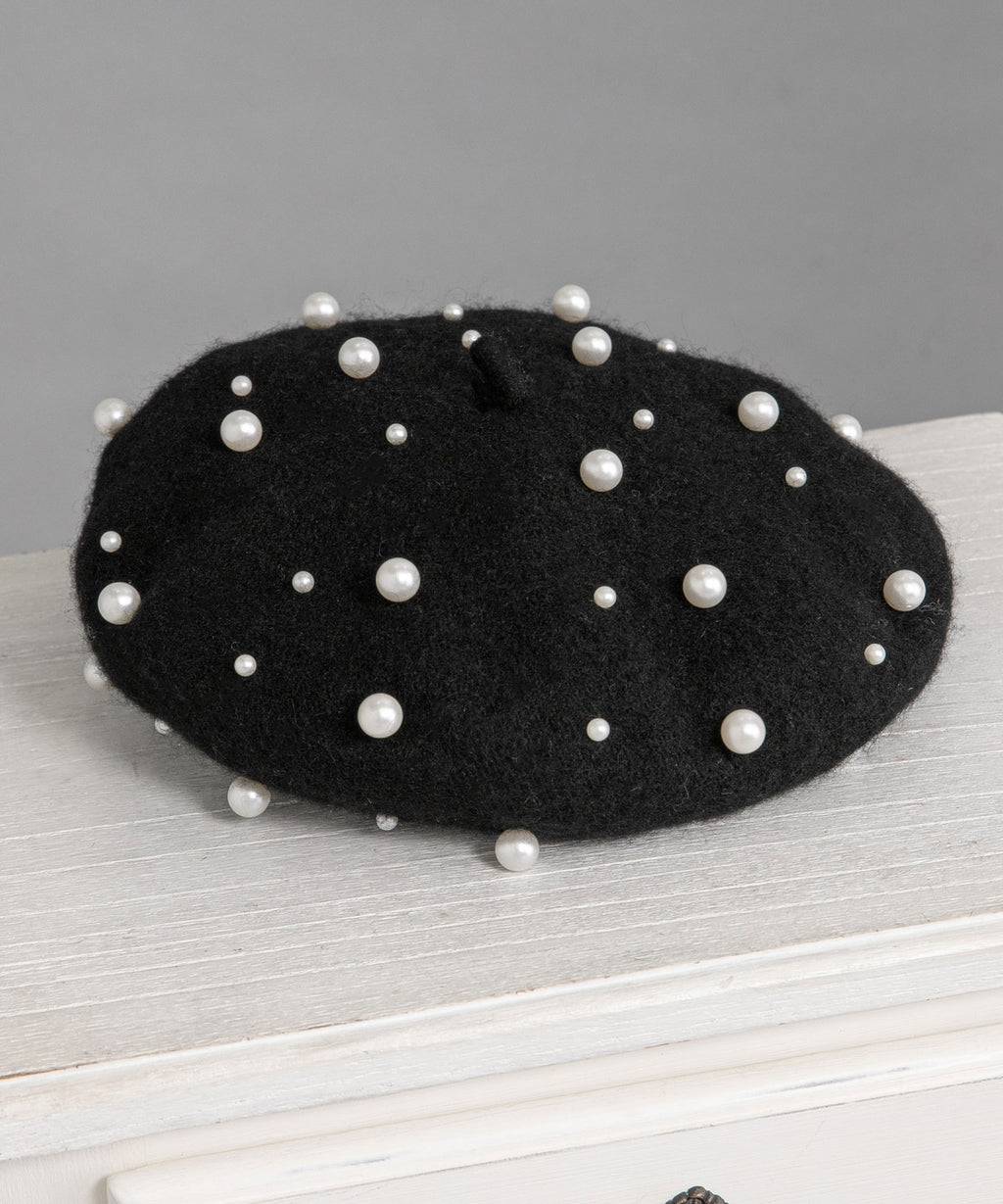 パールがフェミニンであざとく、コーデのアクセントになってくれるベレー帽。