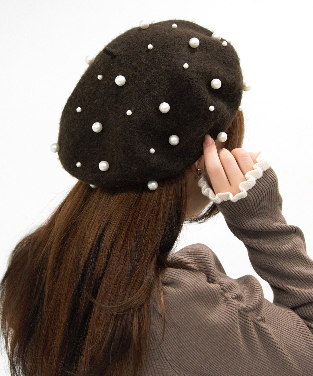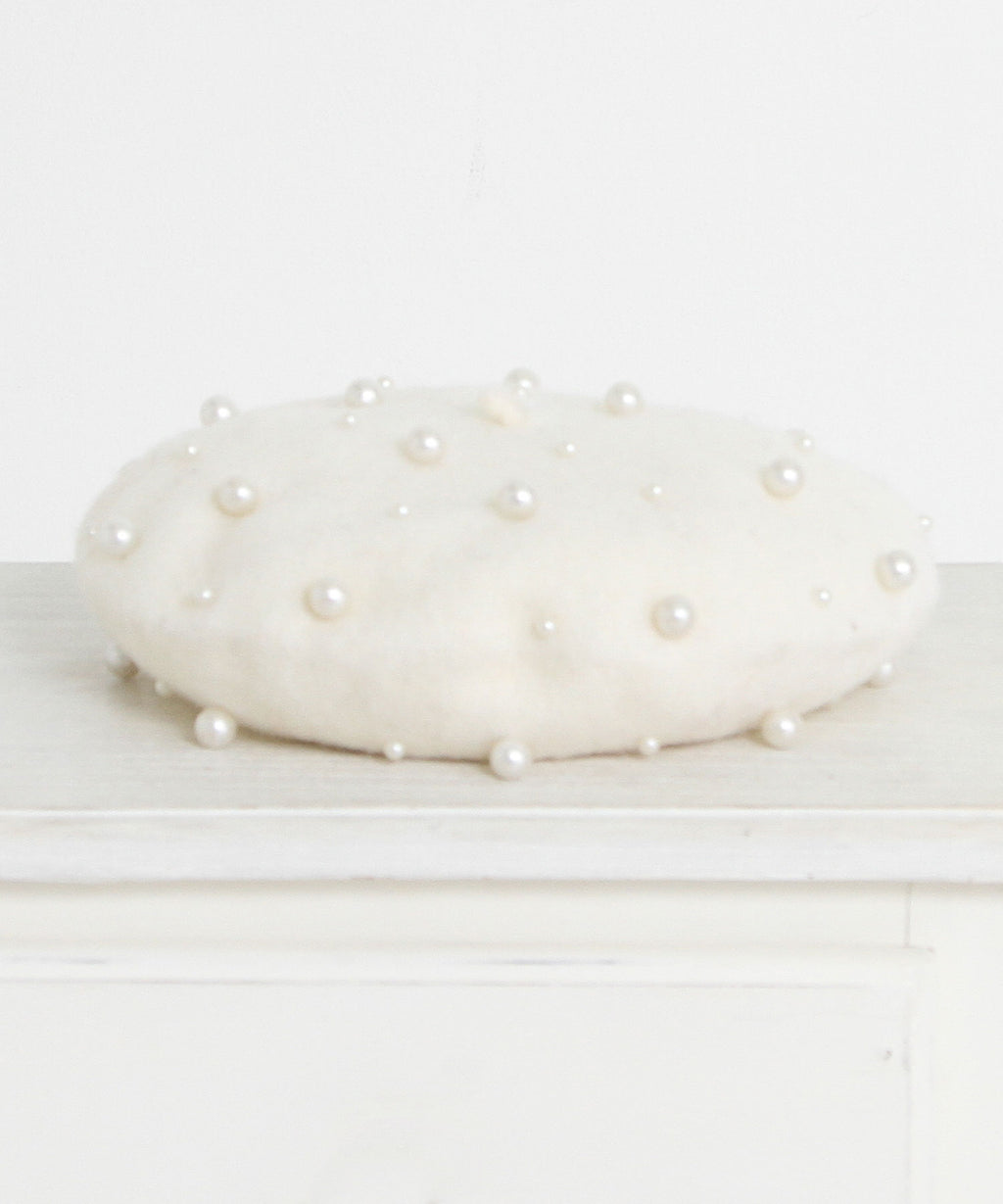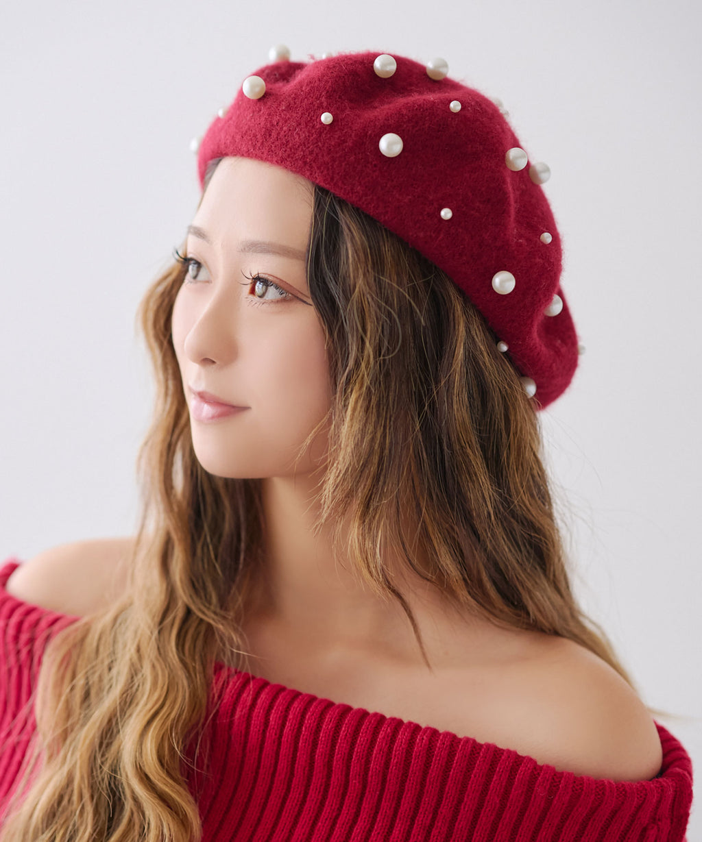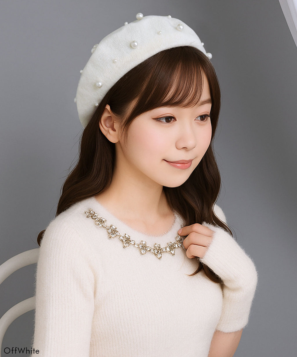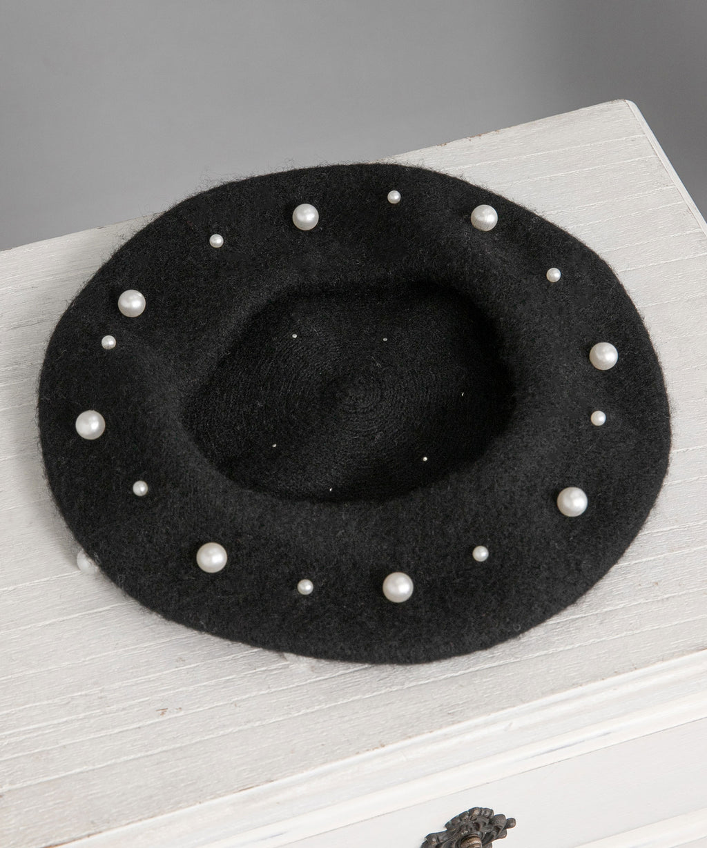 パールがフェミニンであざとく、コーデのアクセントになってくれるベレー帽。