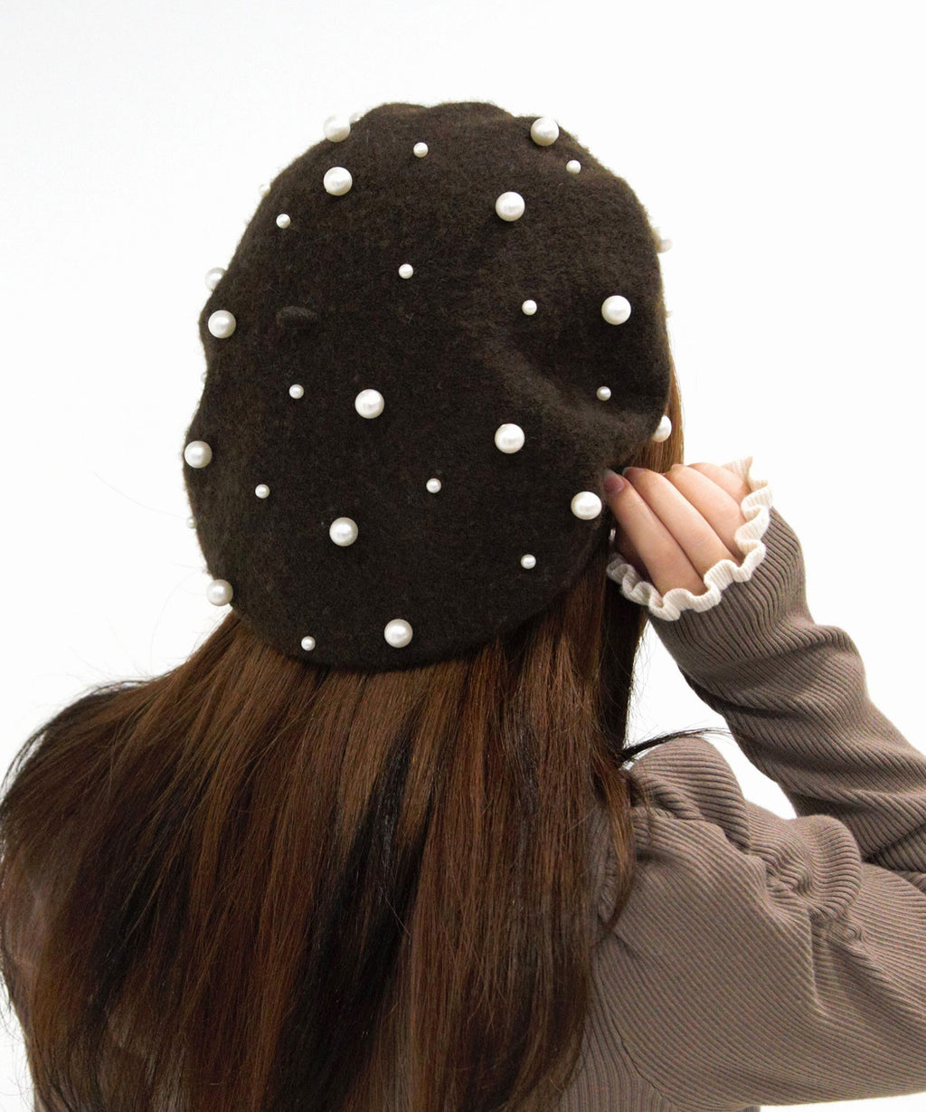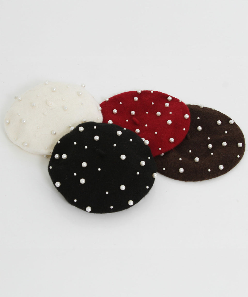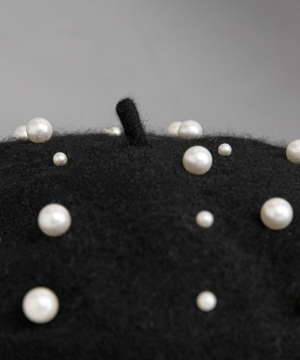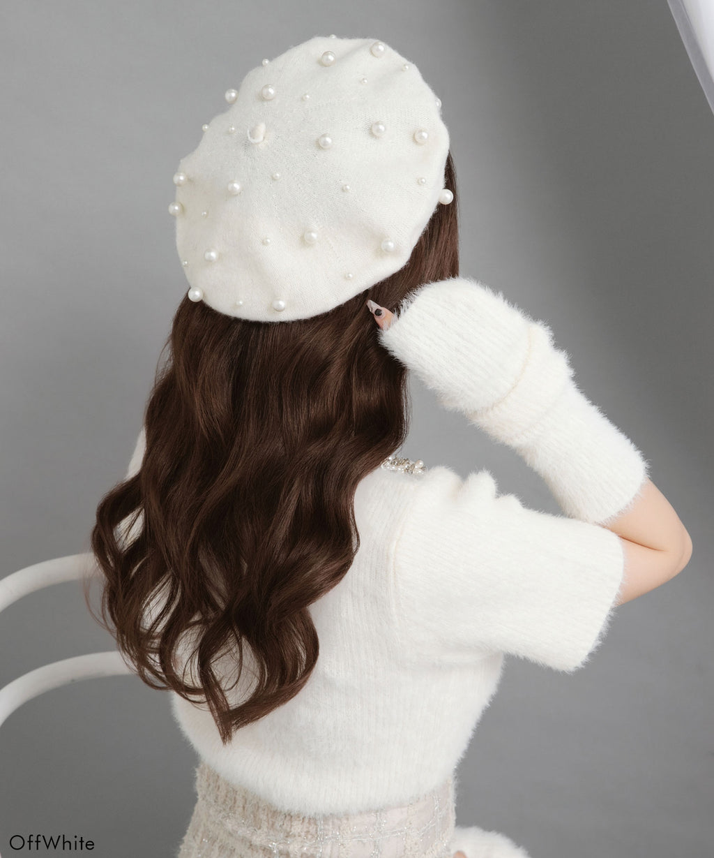 パールがフェミニンであざとく、コーデのアクセントになってくれるベレー帽。