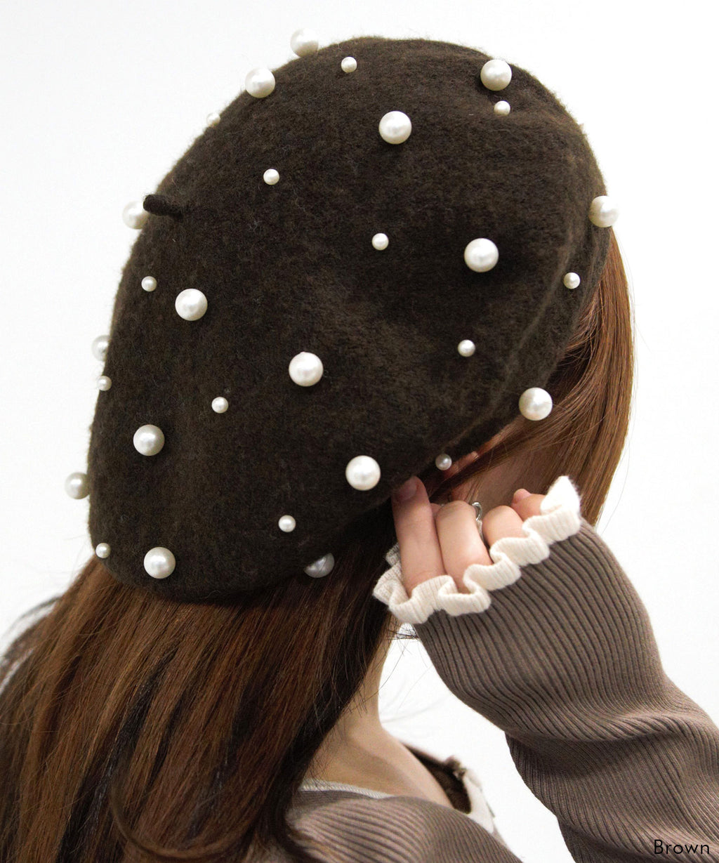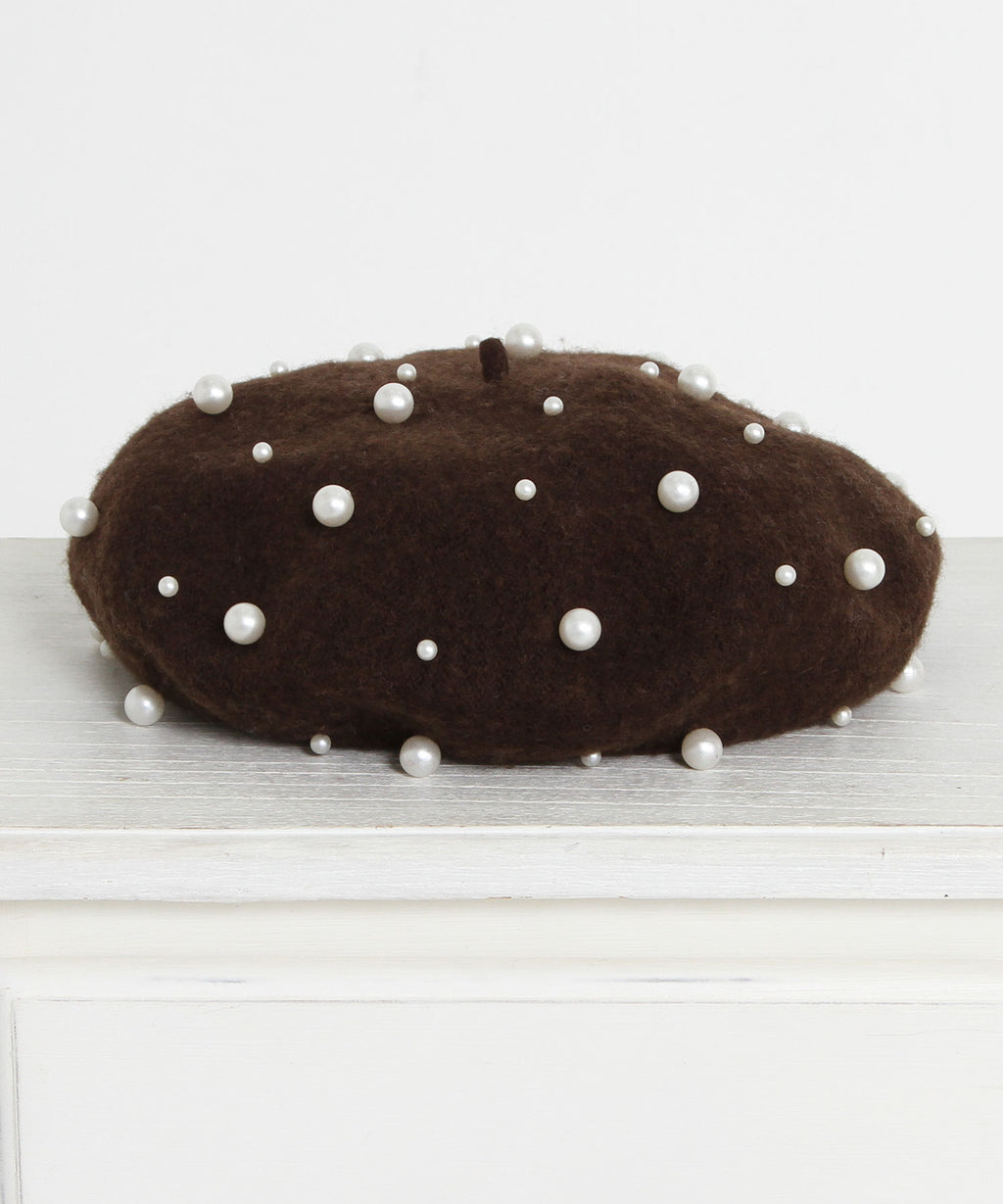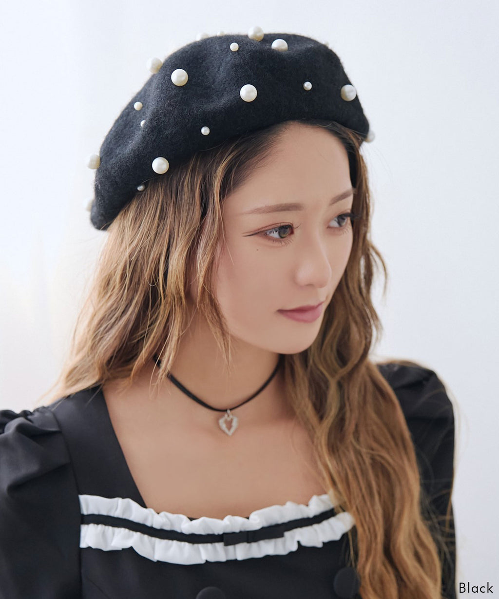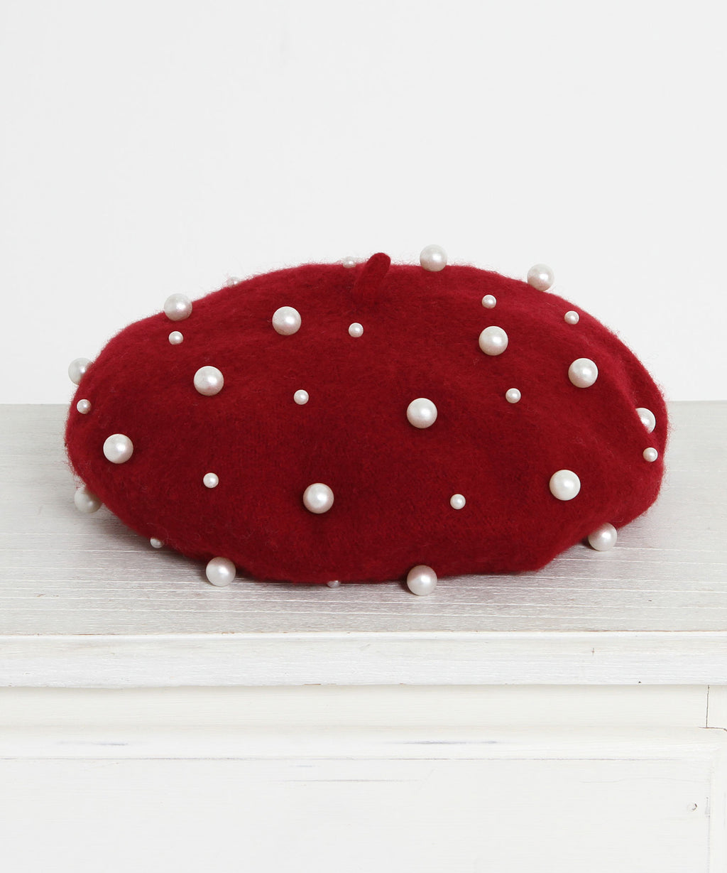 パールがフェミニンであざとく、コーデのアクセントになってくれるベレー帽。