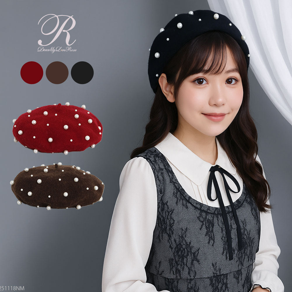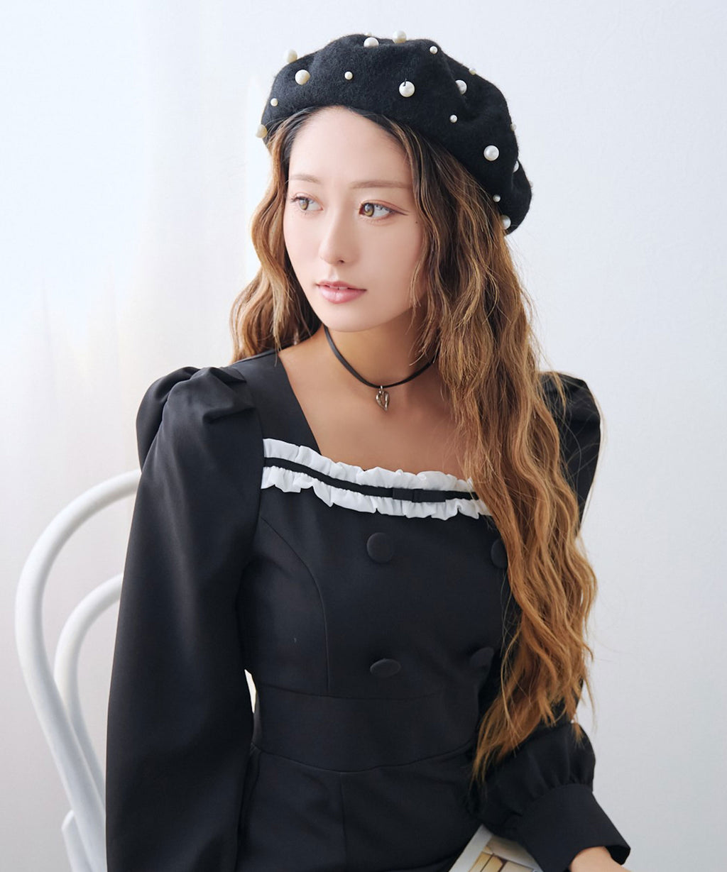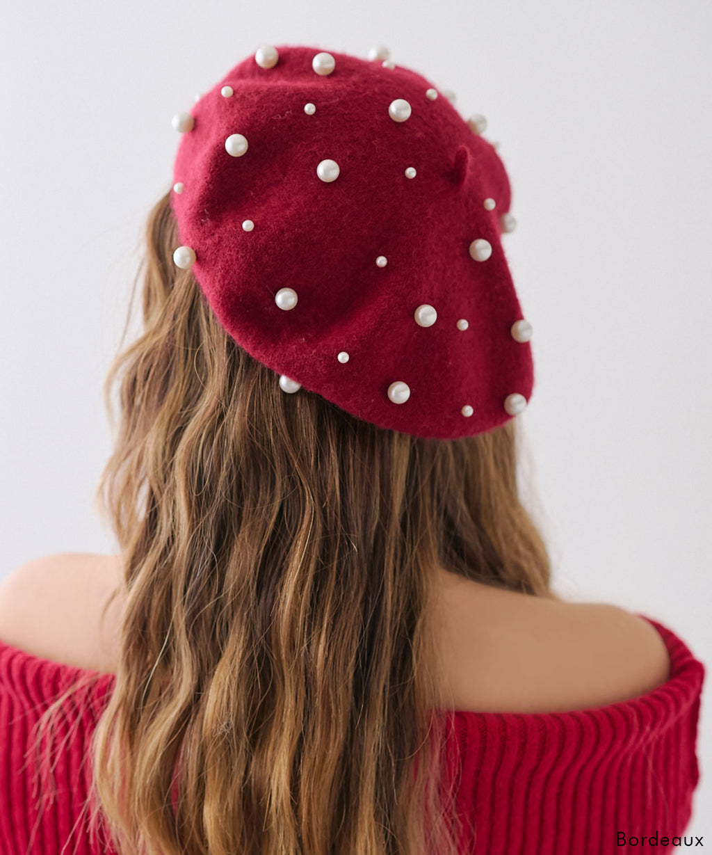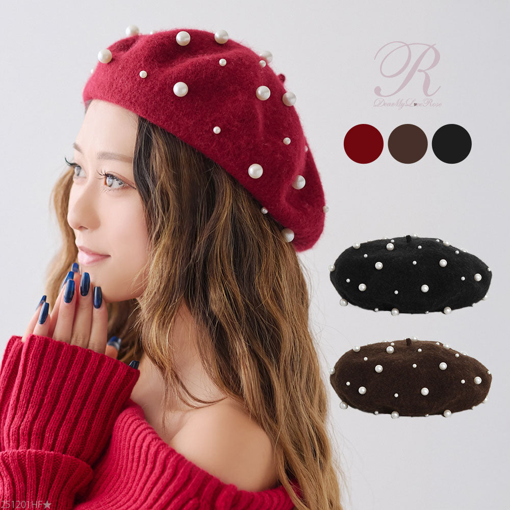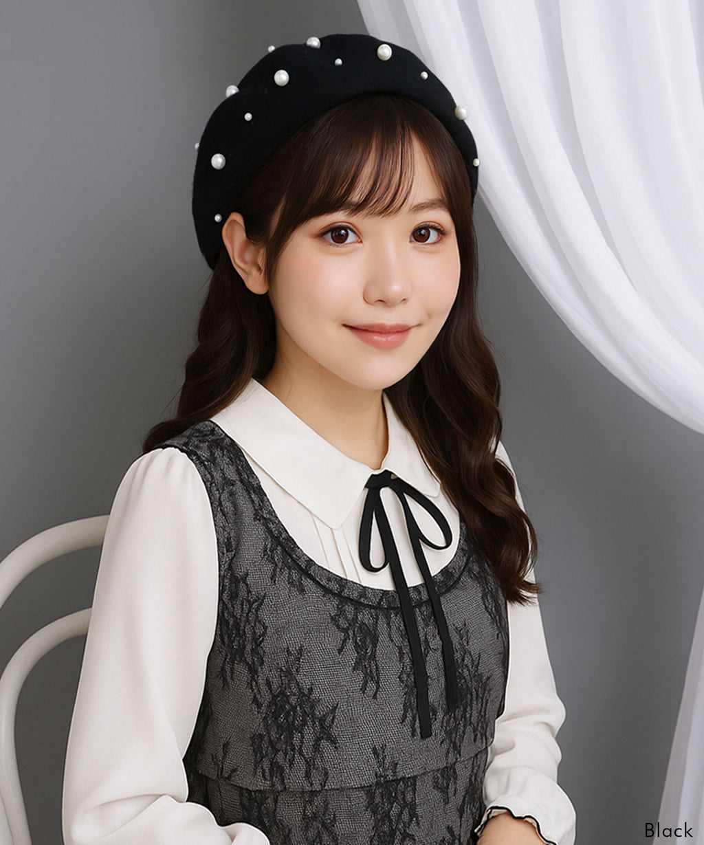 パールがフェミニンであざとく、コーデのアクセントになってくれるベレー帽。