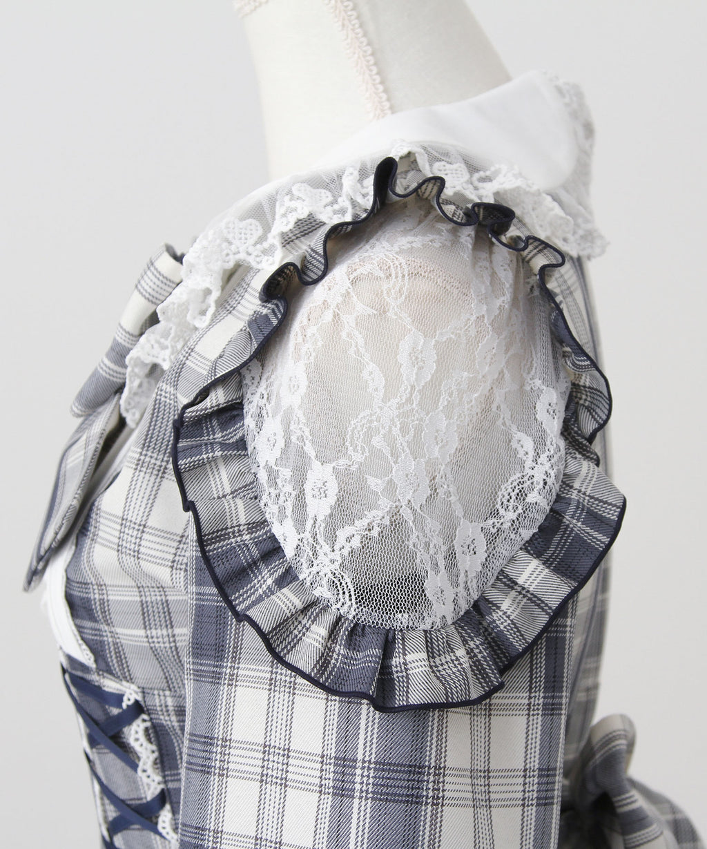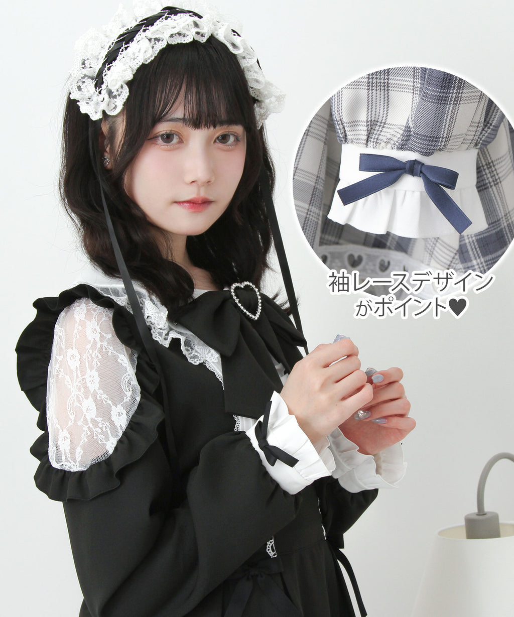 袖にはレース切替の程よい透け感をプラスし、フリルたっぷりのデザインでときめきポイントも満載♪