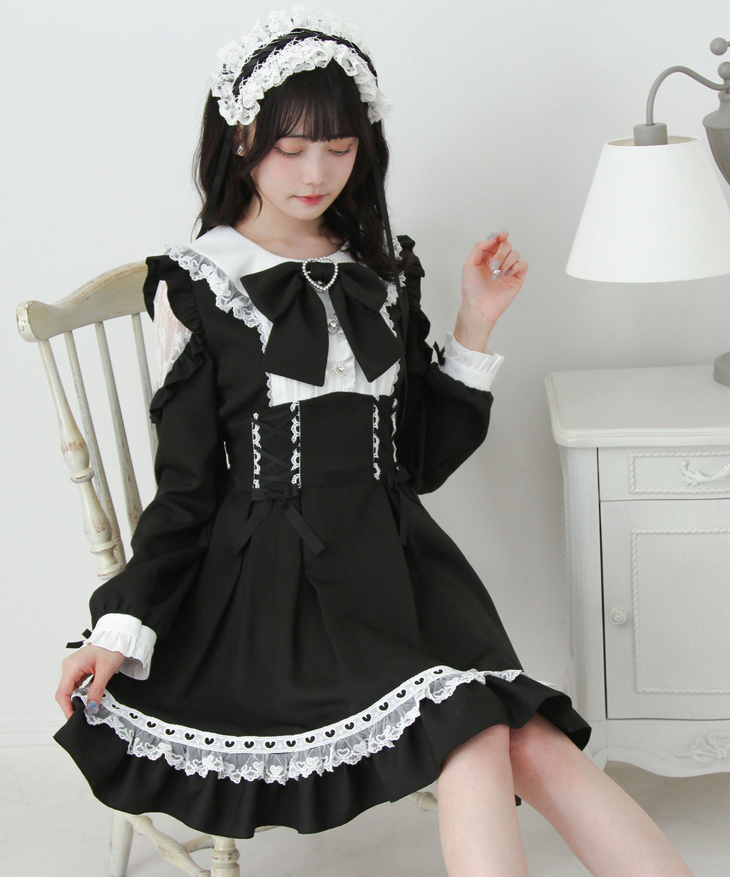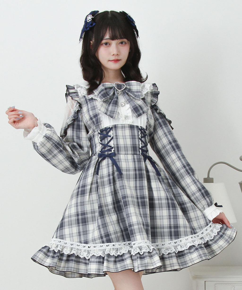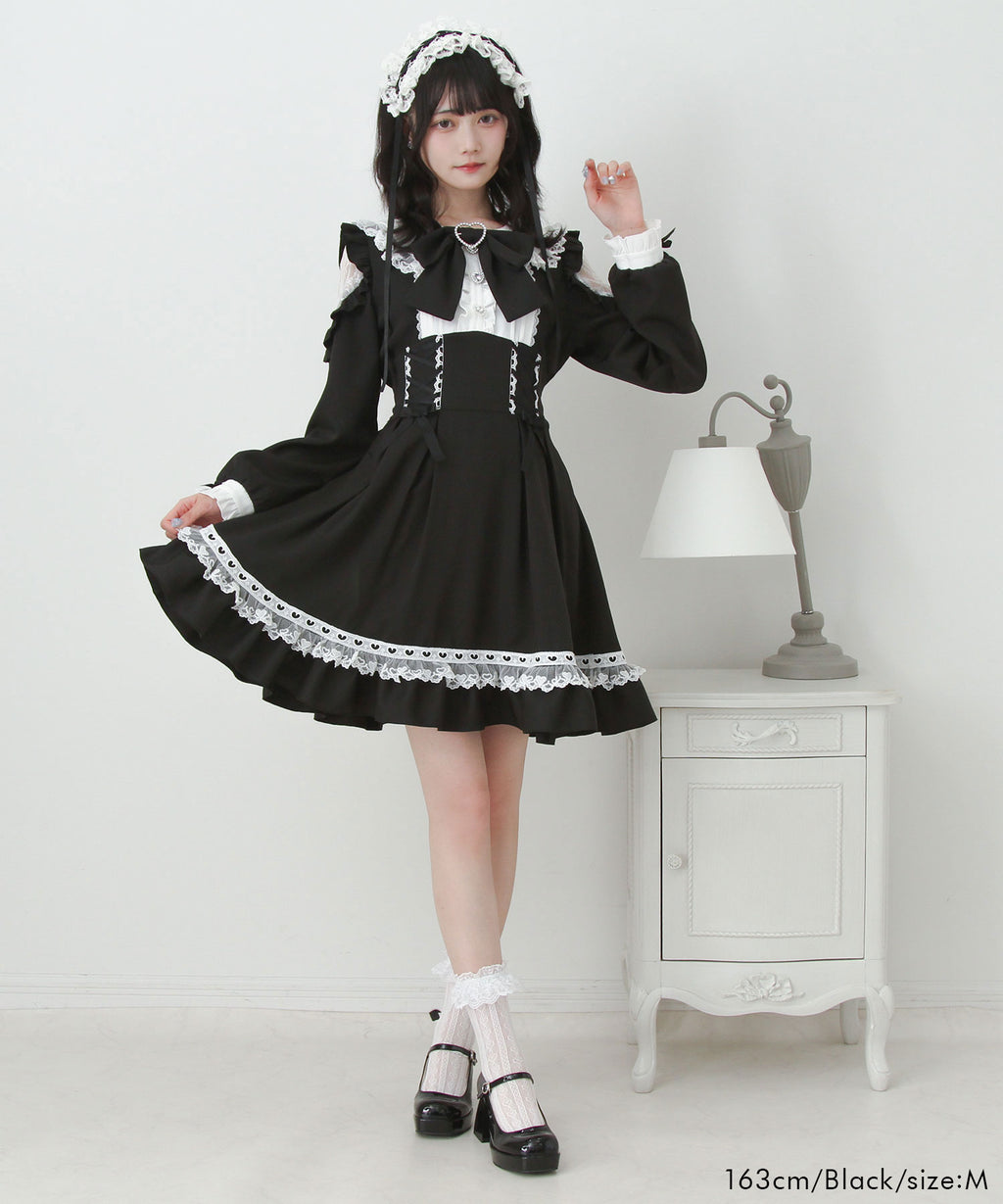 ハートモチーフたっぷり♪かわいすぎるレースアップ×ハイウエストデザインのワンピースが登場♪