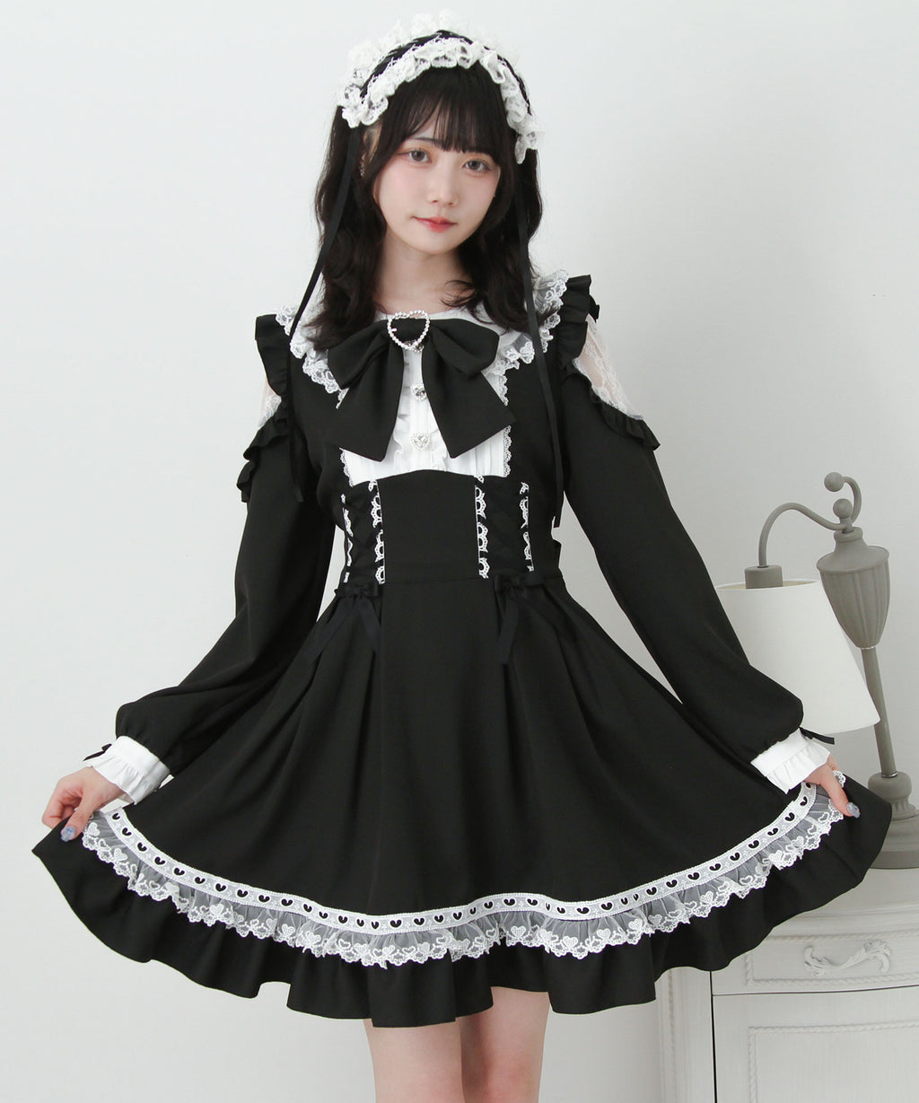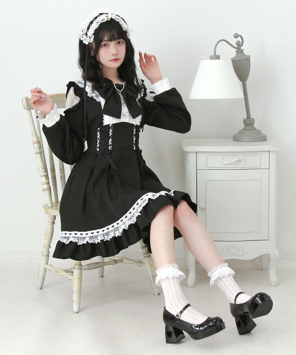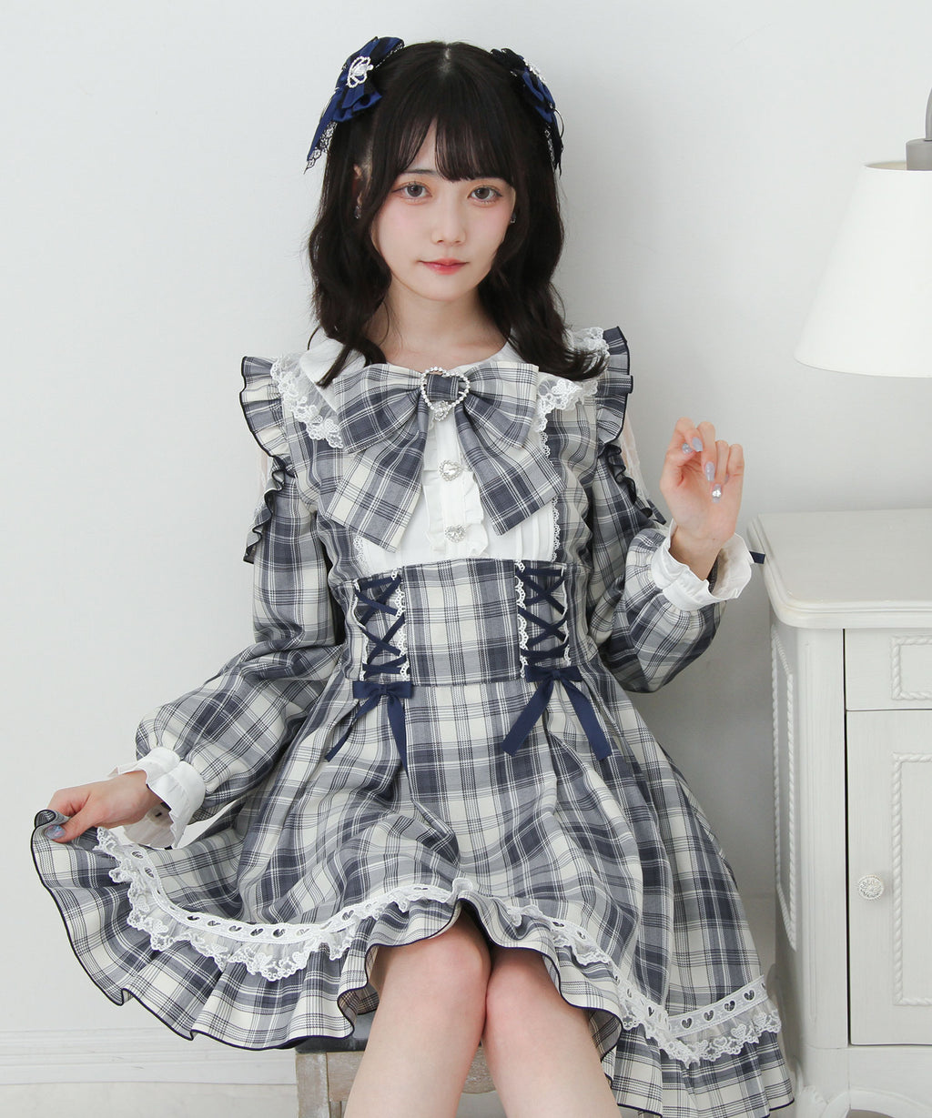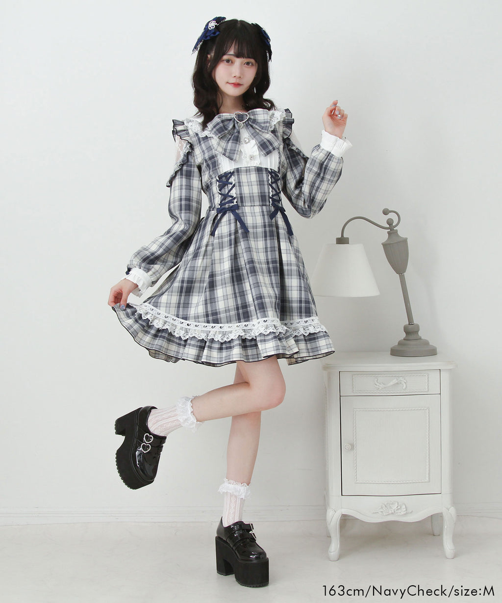 ハートモチーフたっぷり♪かわいすぎるレースアップ×ハイウエストデザインのワンピースが登場♪