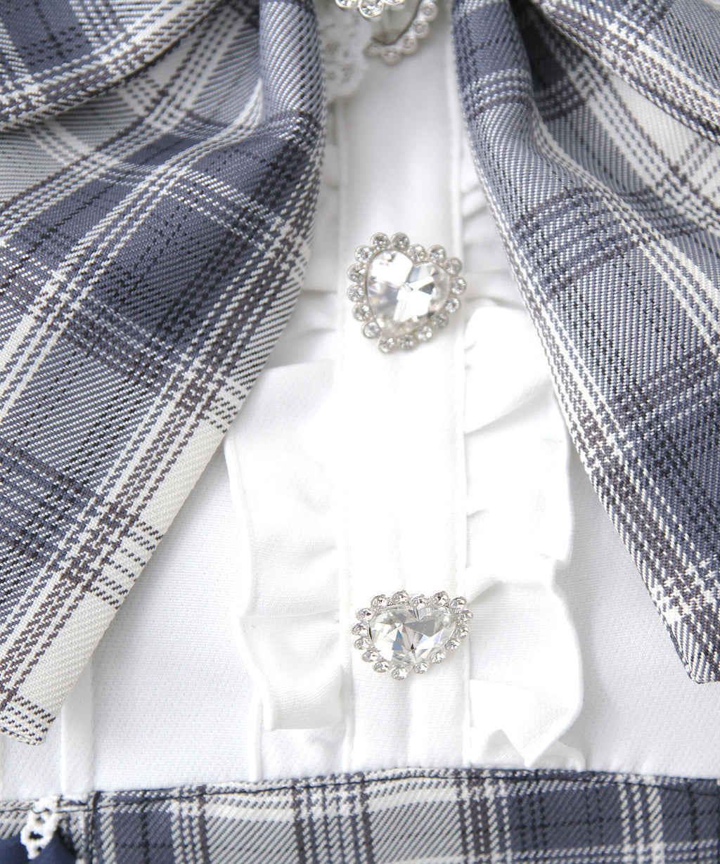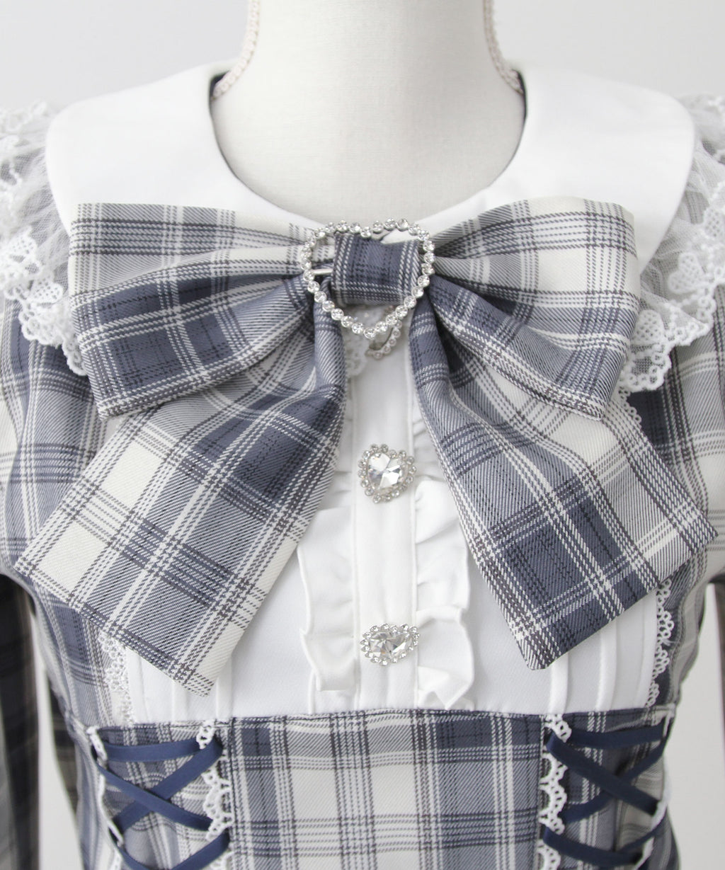 ハートがキラキラ輝くバックルと大きめリボンが目を惹く、ガーリー感たっぷりのワンピース。