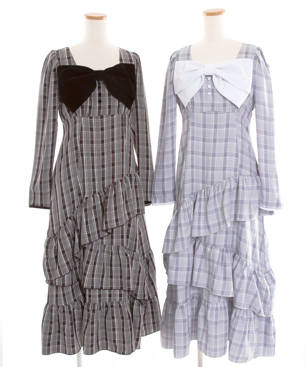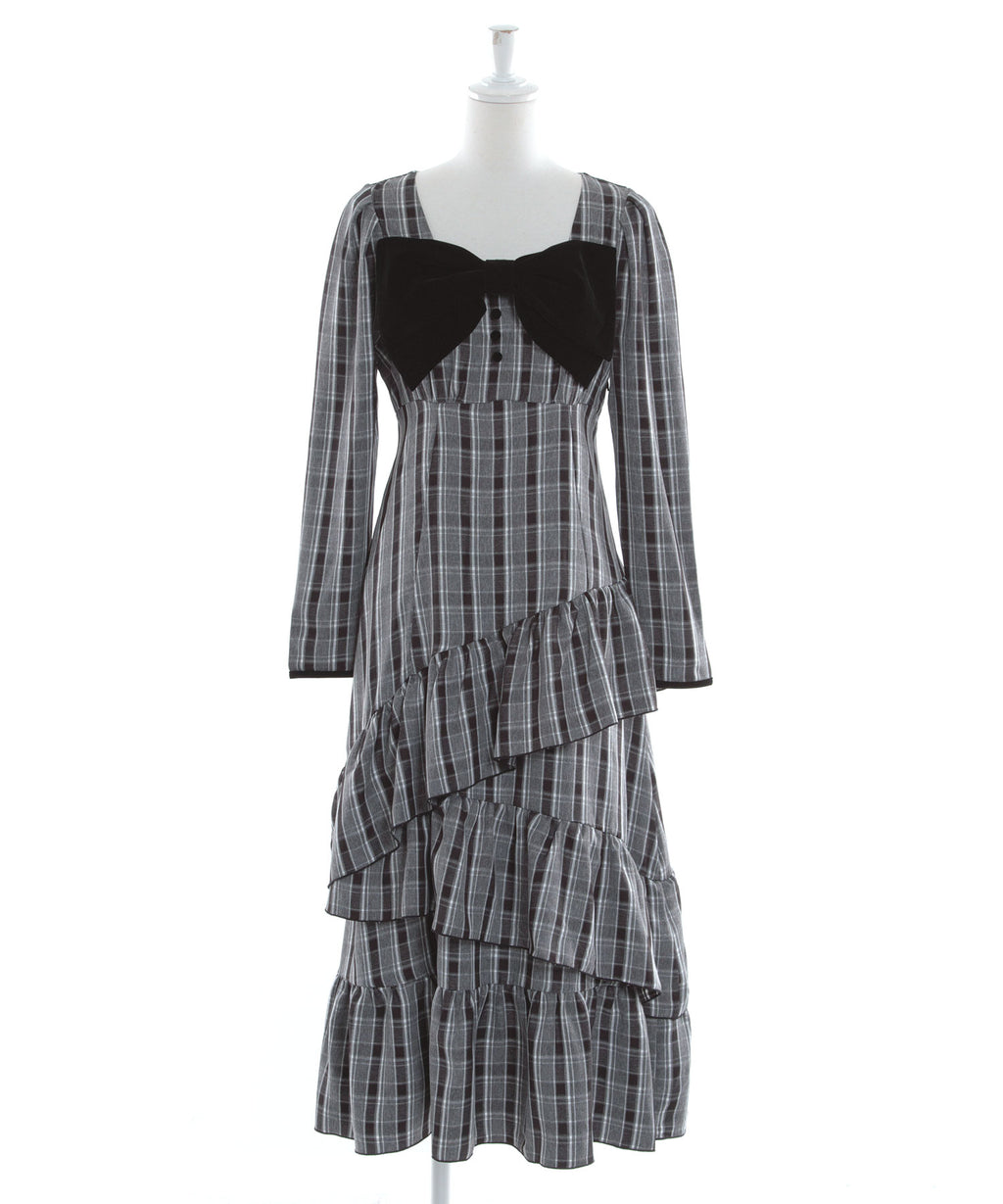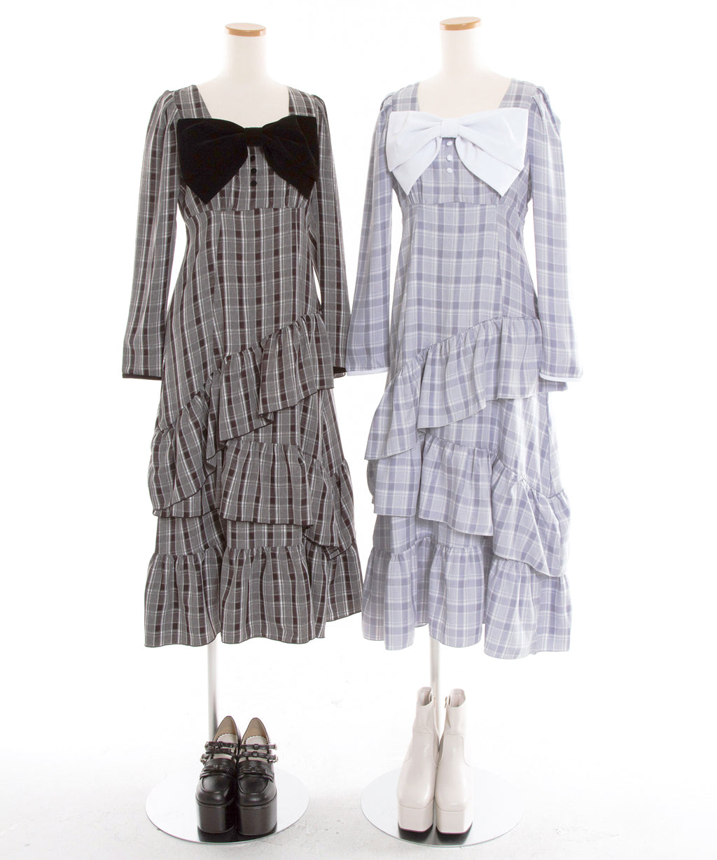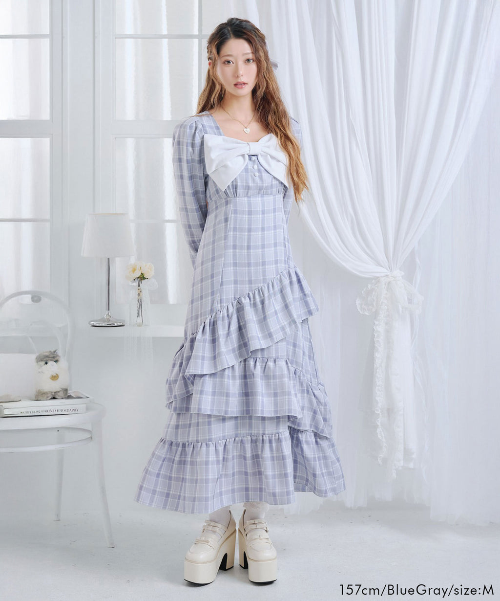 大きめリボン×チェック柄×ティアードフリルが主役の、クラシカルガーリーなロングワンピースが登場。