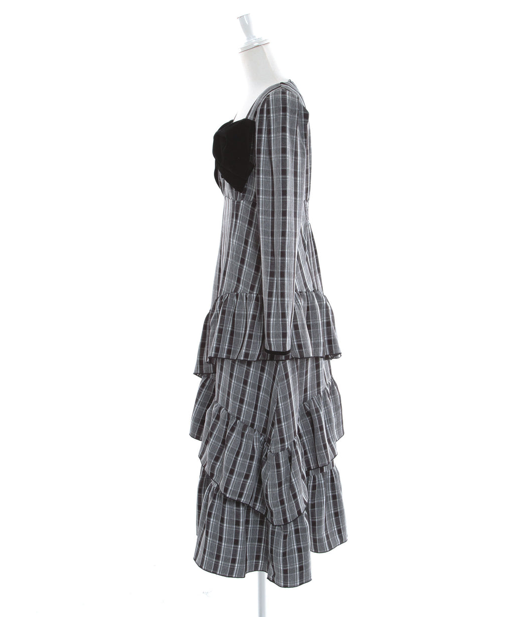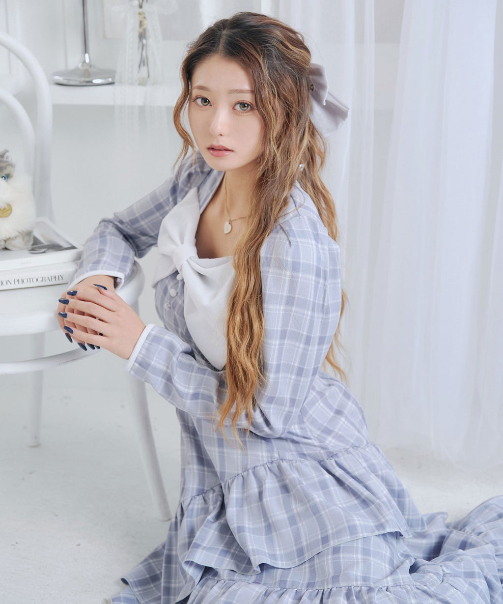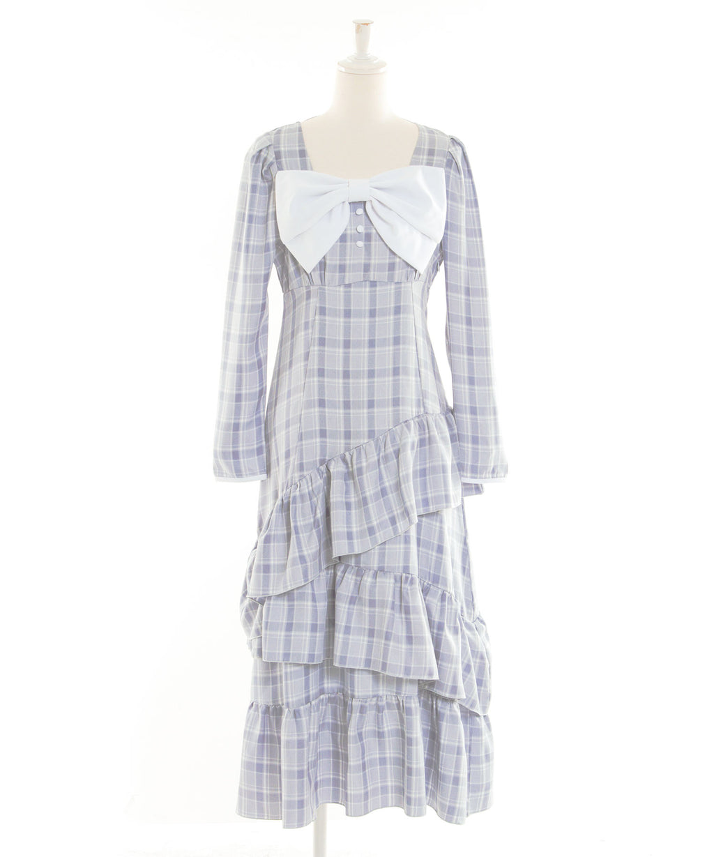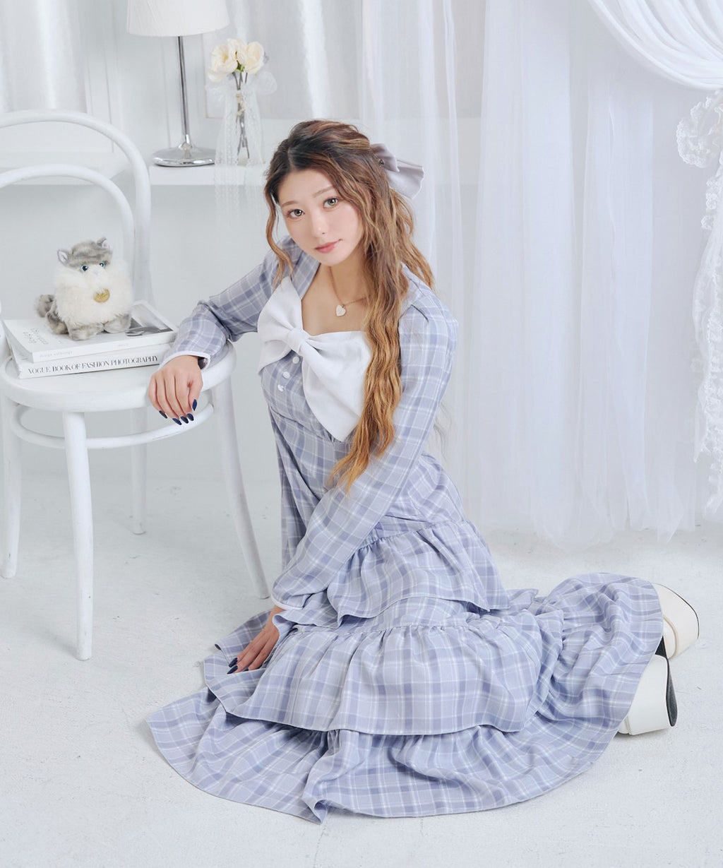 大きめリボン×チェック柄×ティアードフリルが主役の、クラシカルガーリーなロングワンピースが登場。
