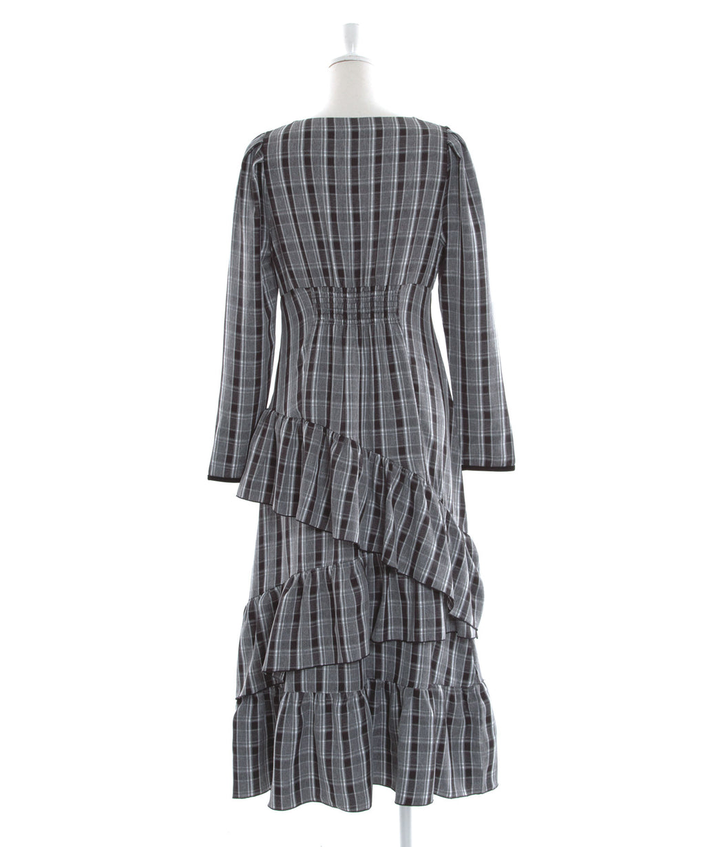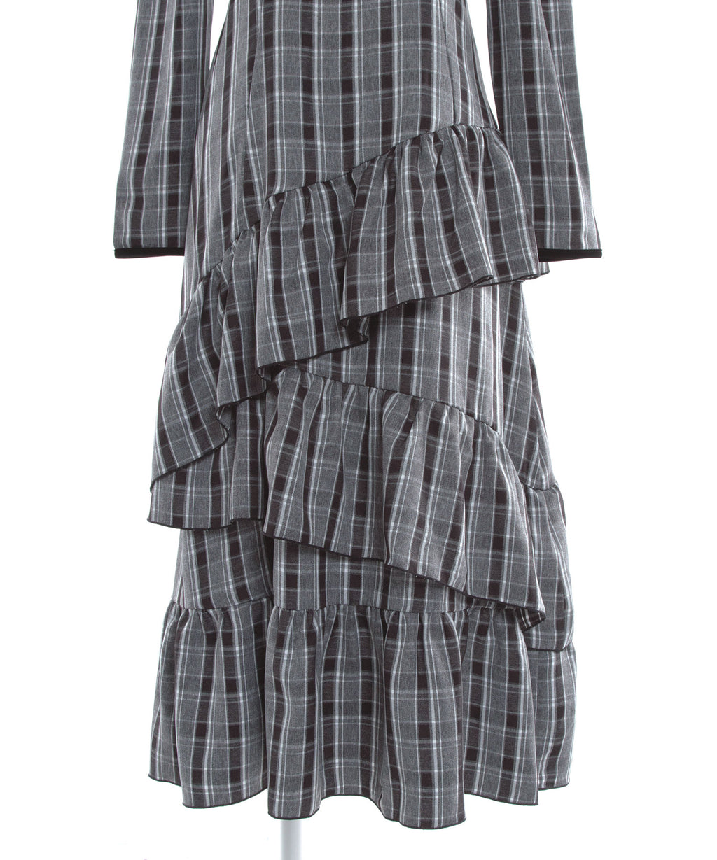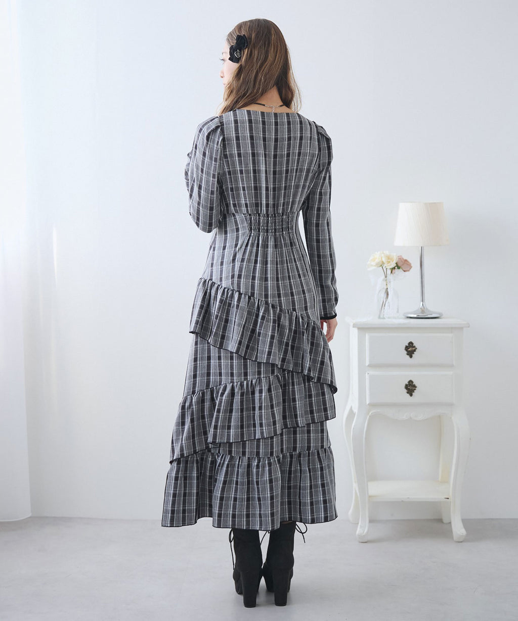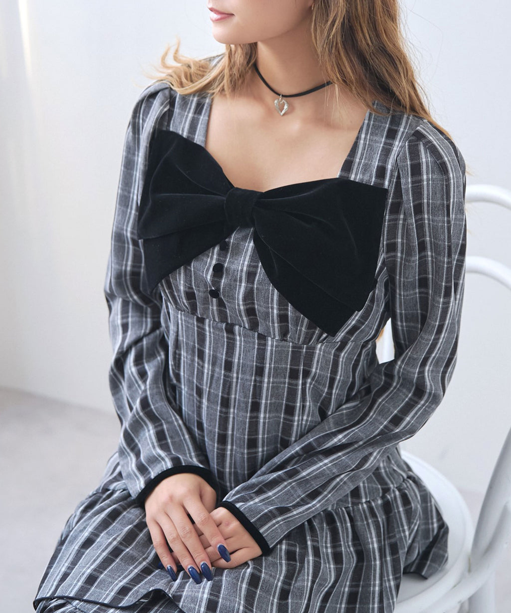 大きめリボン×チェック柄×ティアードフリルが主役の、クラシカルガーリーなロングワンピースが登場。