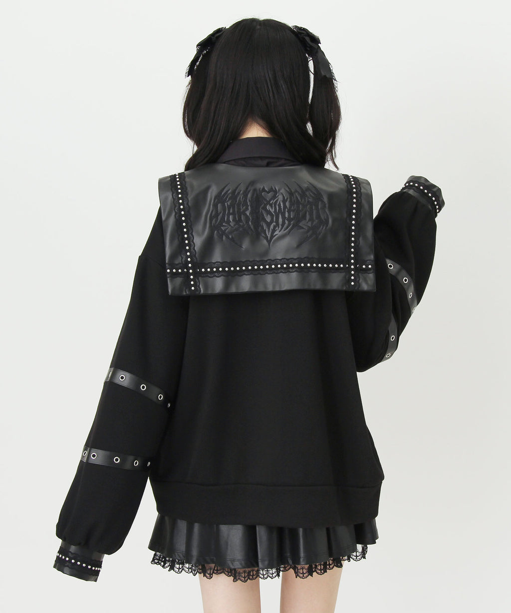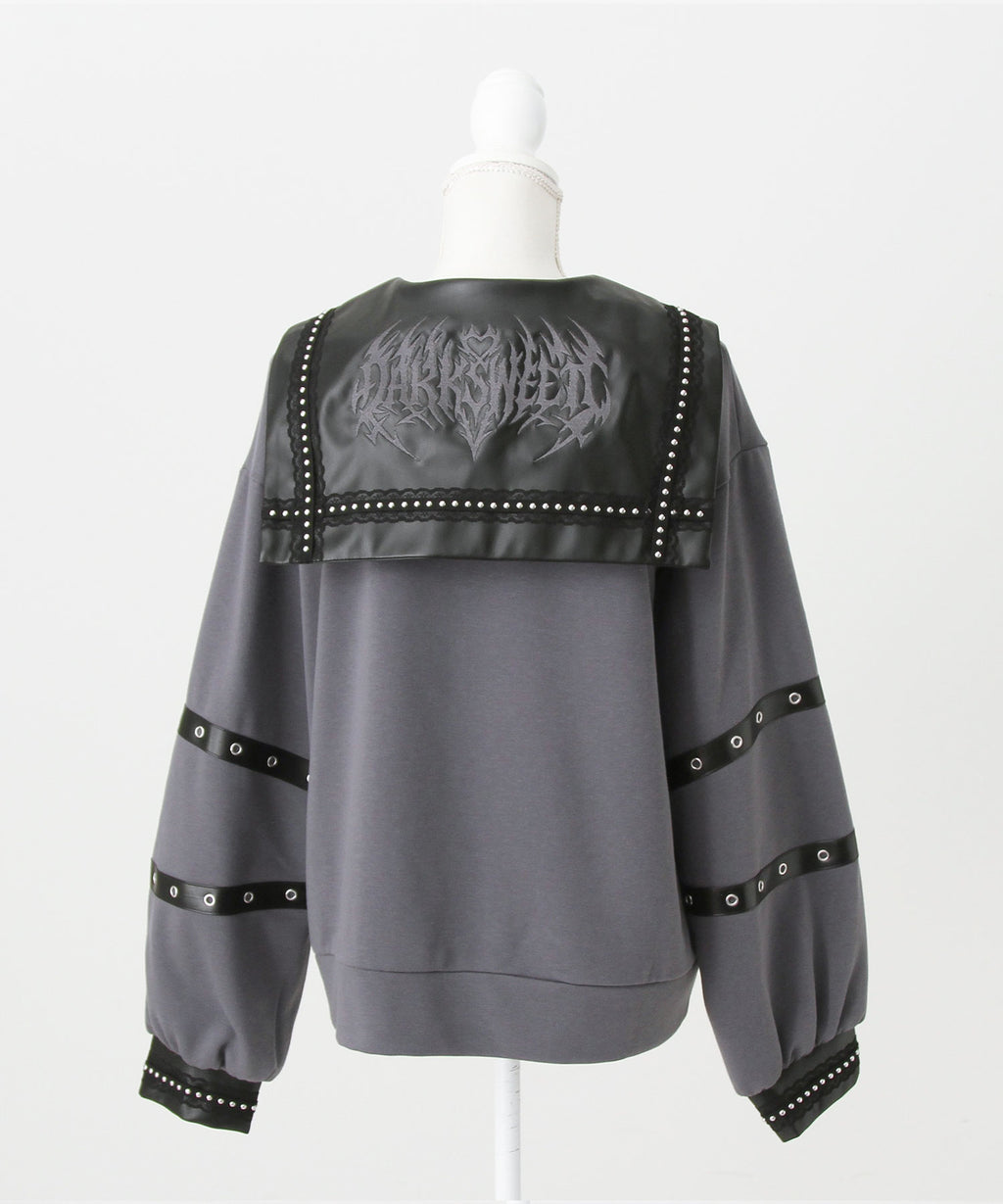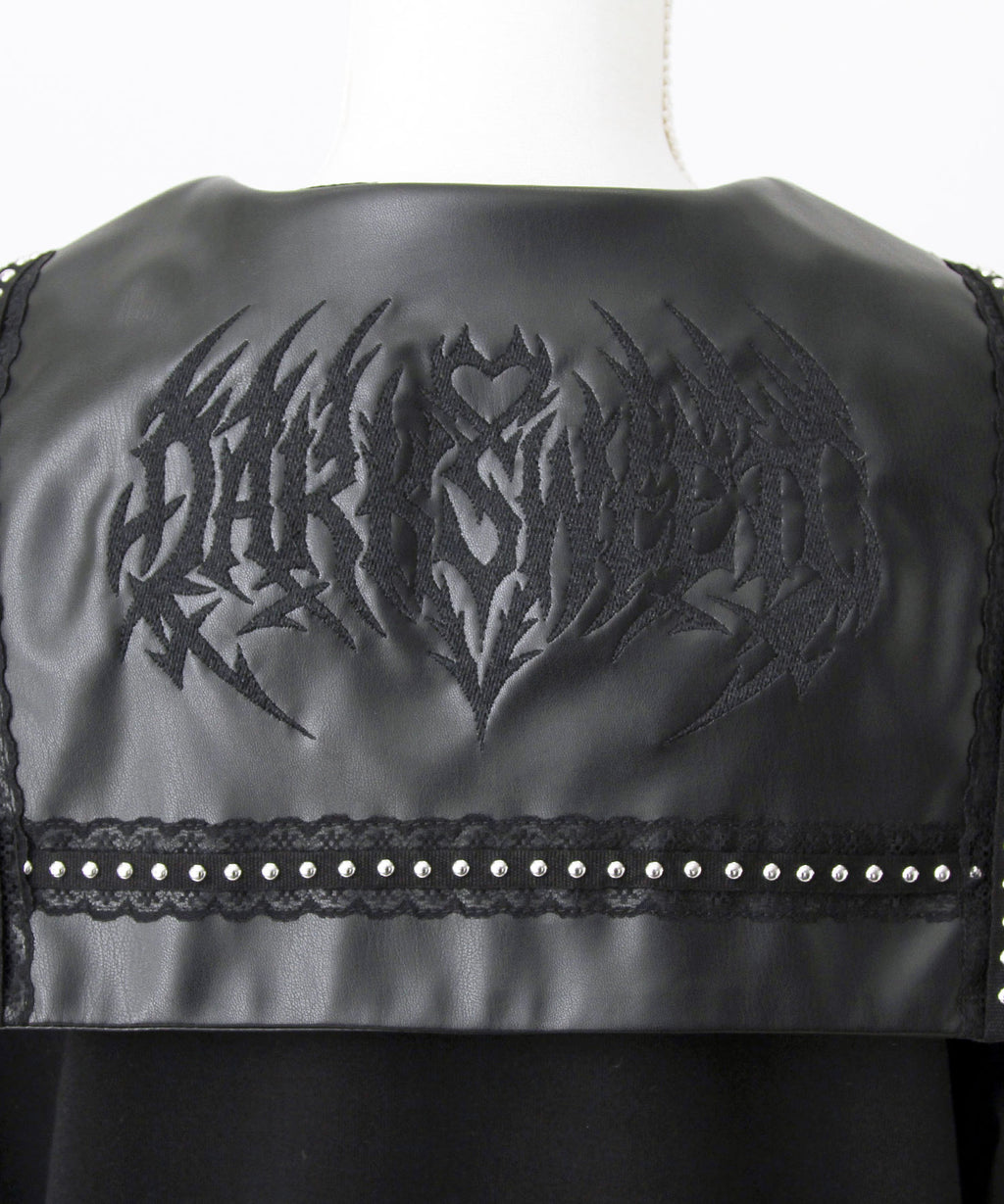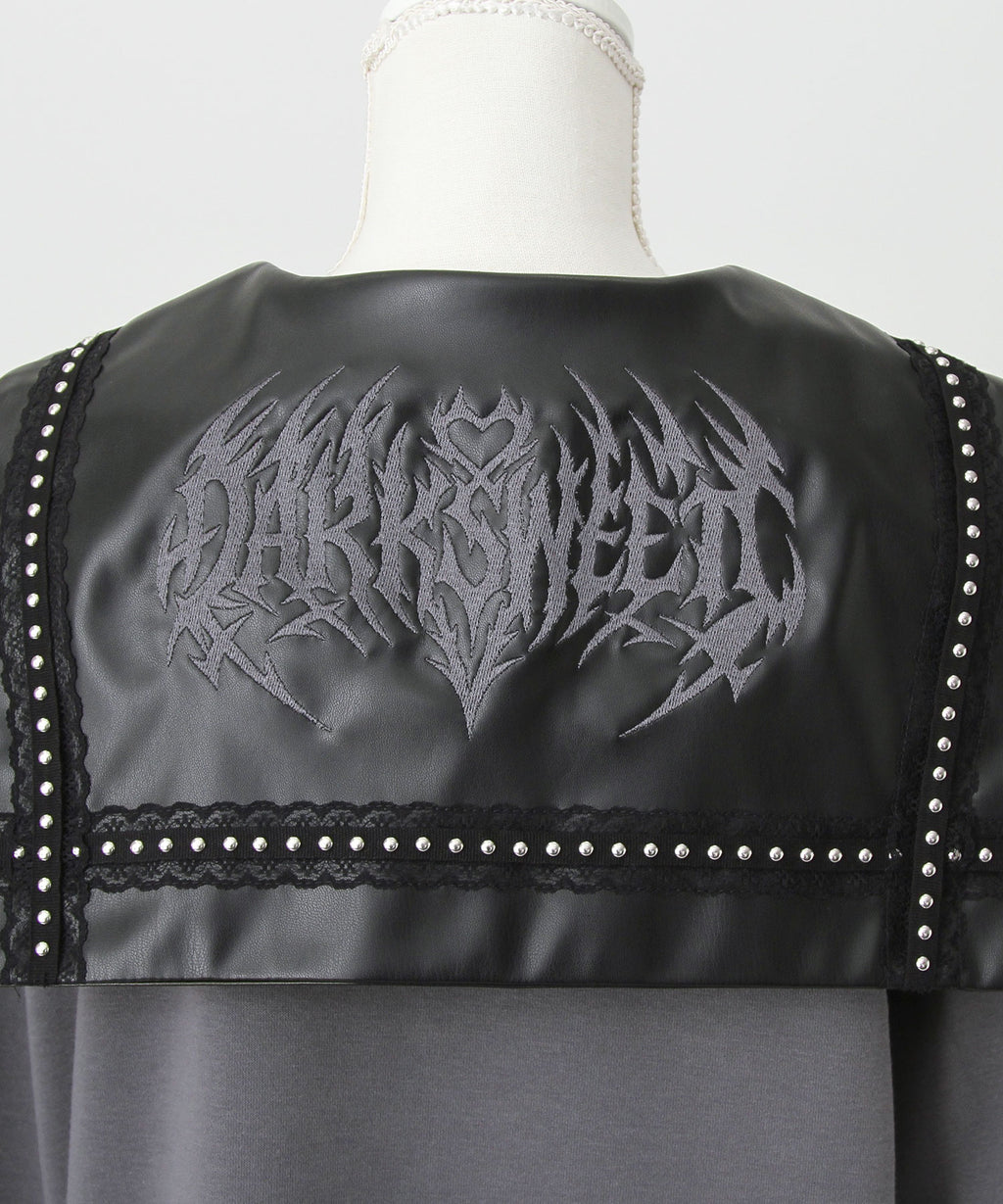大きめセーラーカラーにレザー素材を使用し、縁にはスタッズ&レースをあしらったデザイン。