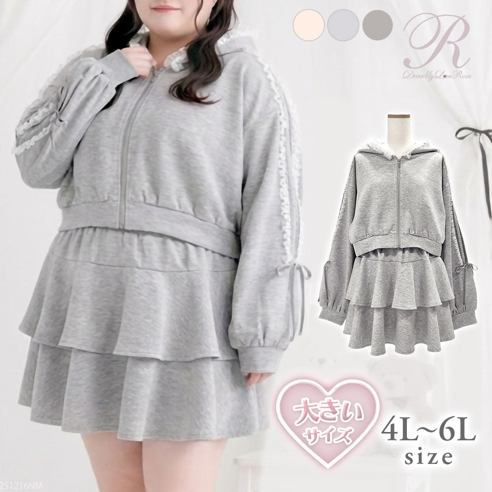 パーカーはフロントジップで開け閉めして着脱する仕様です。スカートはウエスト総ゴムで楽に着脱いただけます。