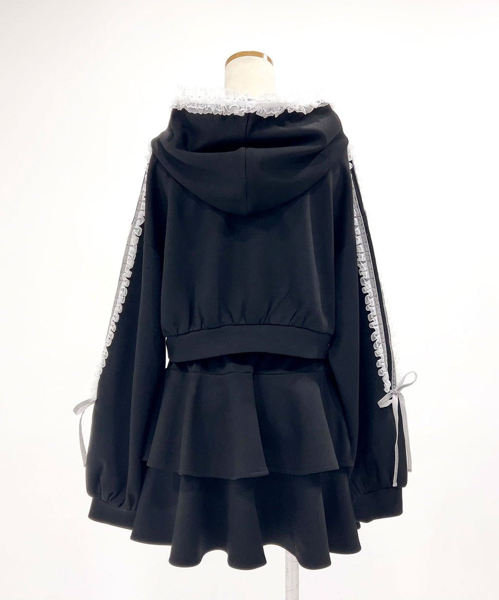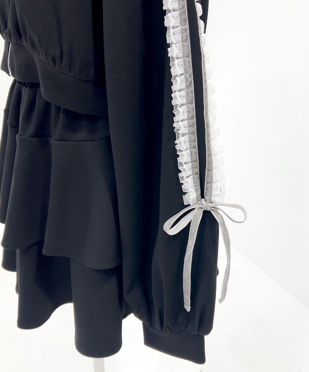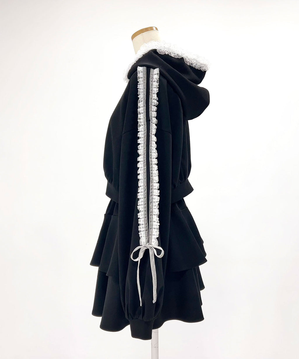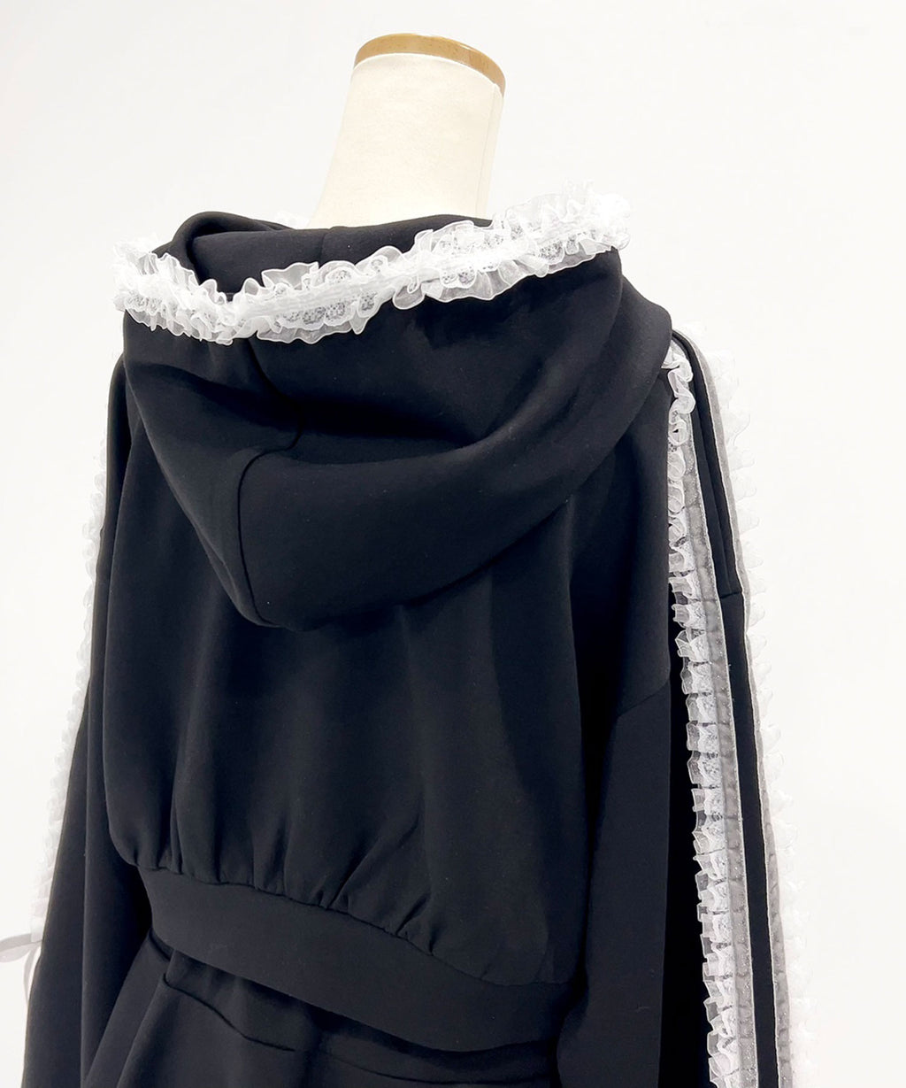 パーカーのお袖にはふりふりのレースとベロアシルバーのラインテープを施し、どこから見ても映えるデザインに♪