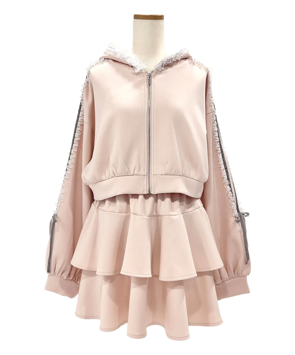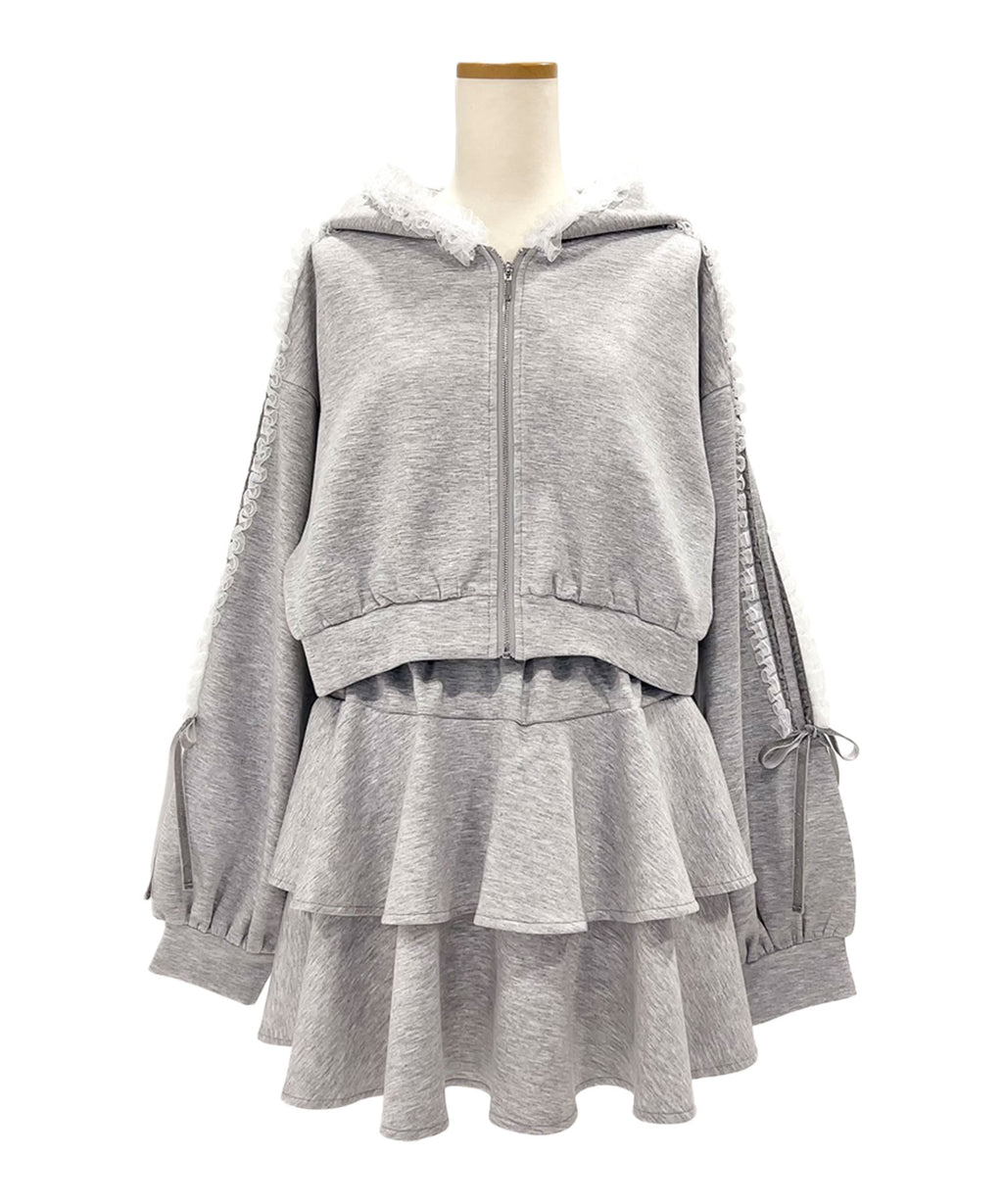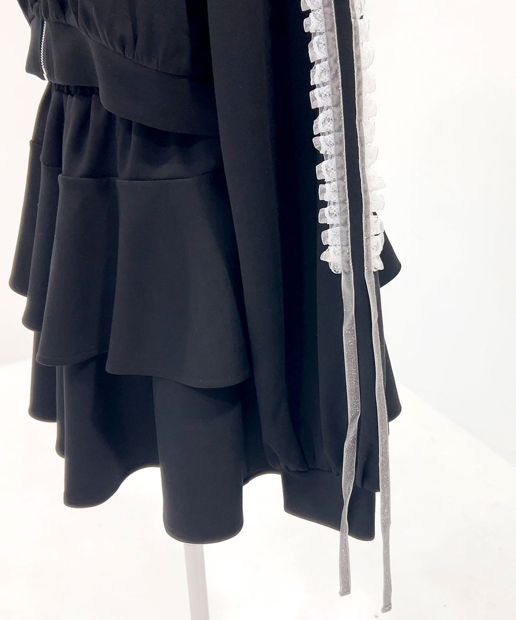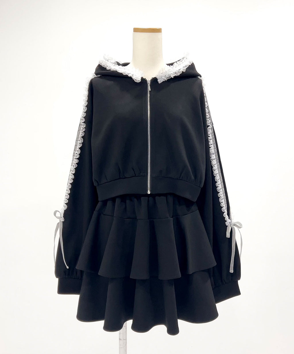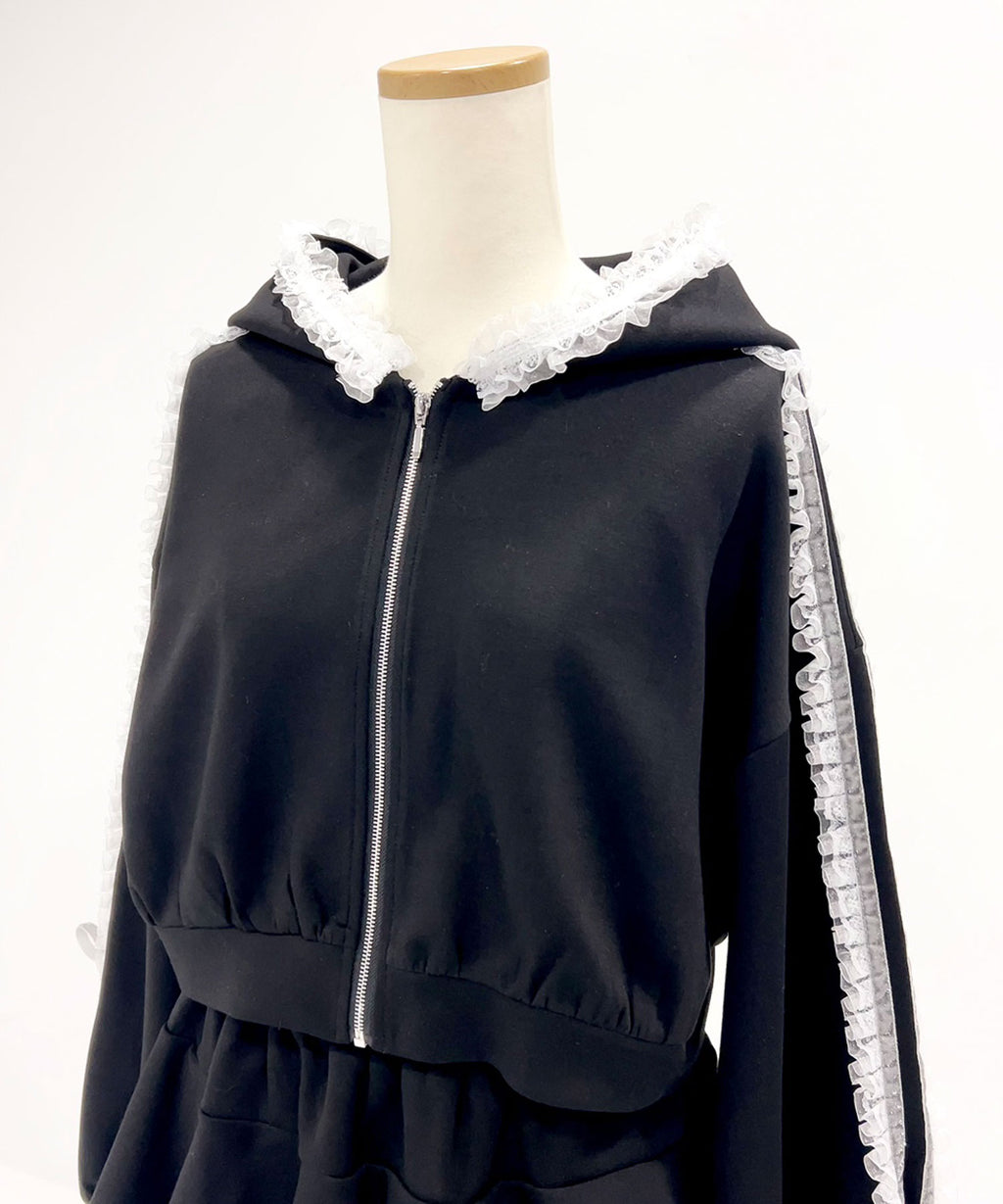 パーカーのお袖にはふりふりのレースとベロアシルバーのラインテープを施し、どこから見ても映えるデザインに♪
