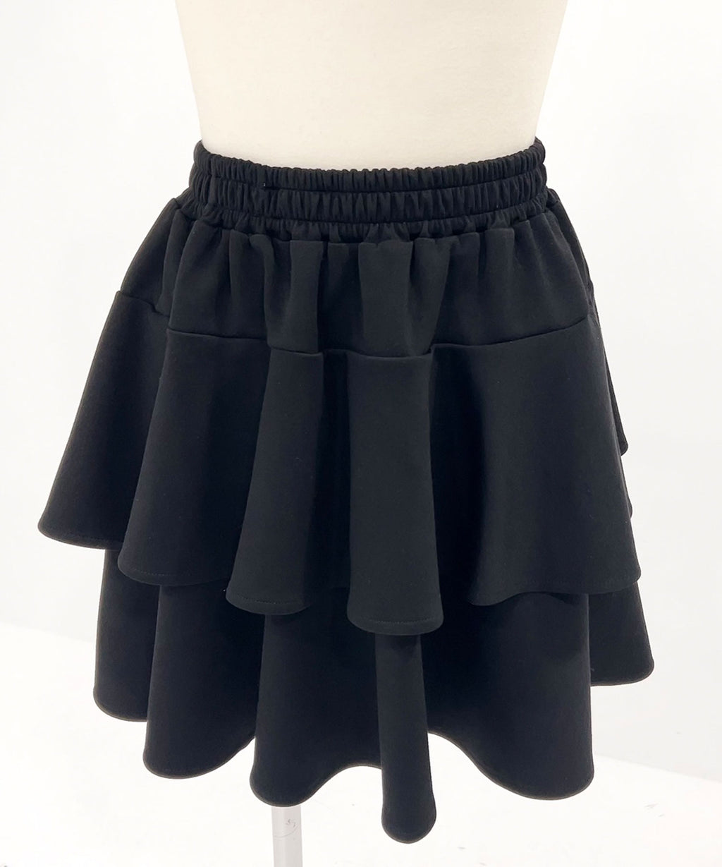 スカートもシンプルながら使い勝手も良く、スタイルアップ効果も狙える2段ティア—ドデザインに◎