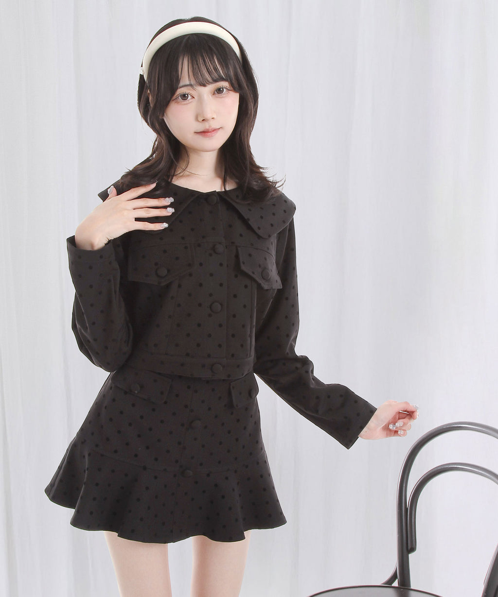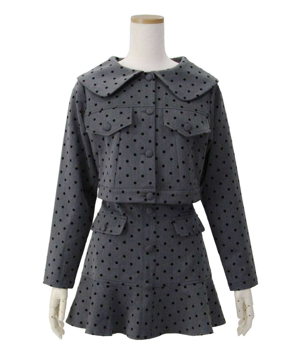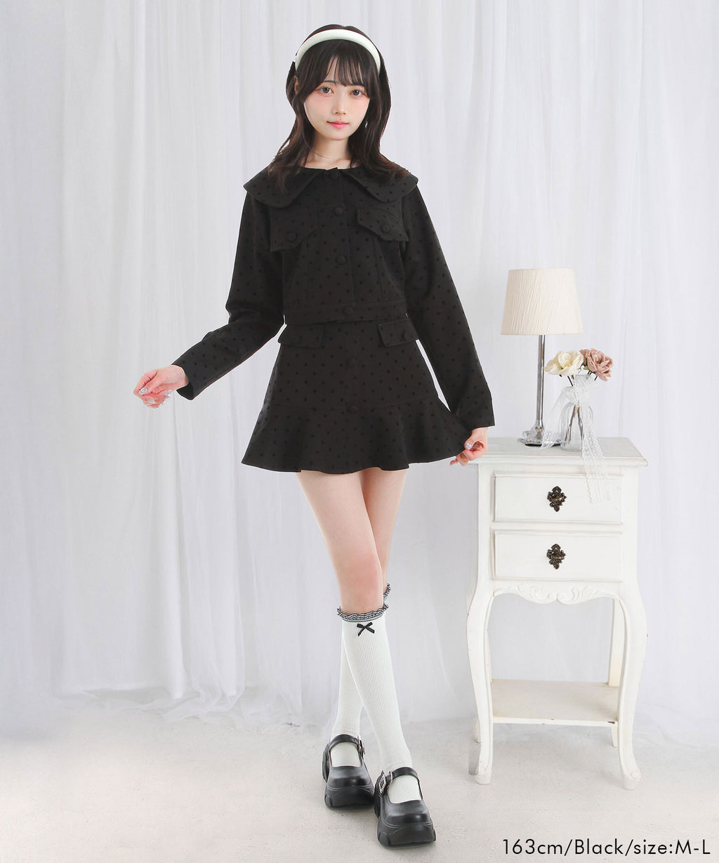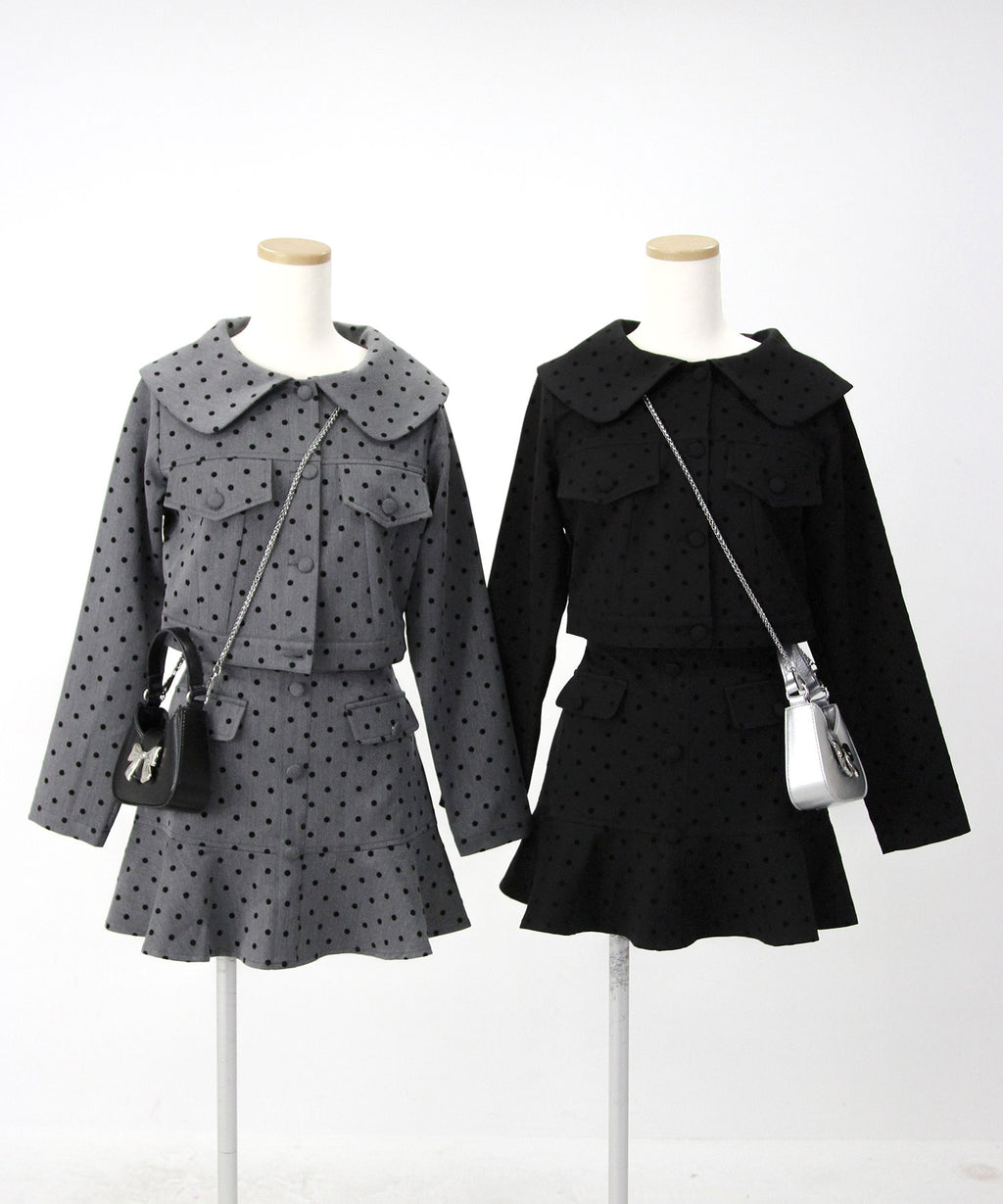 トレンド感たっぷり♪ドット柄丸襟ショートジャケット&ミニスカートセットアップのご紹介♪