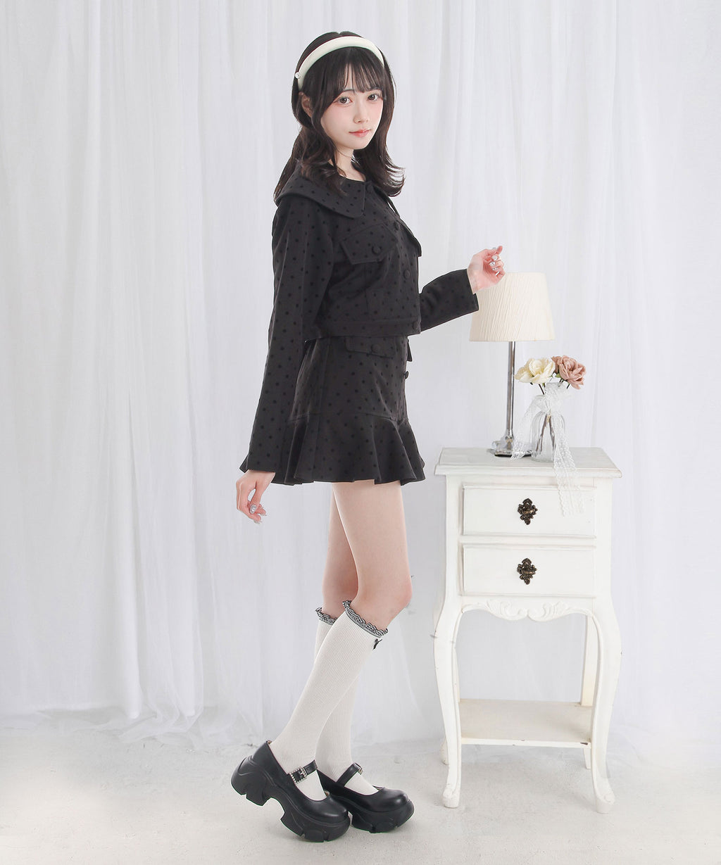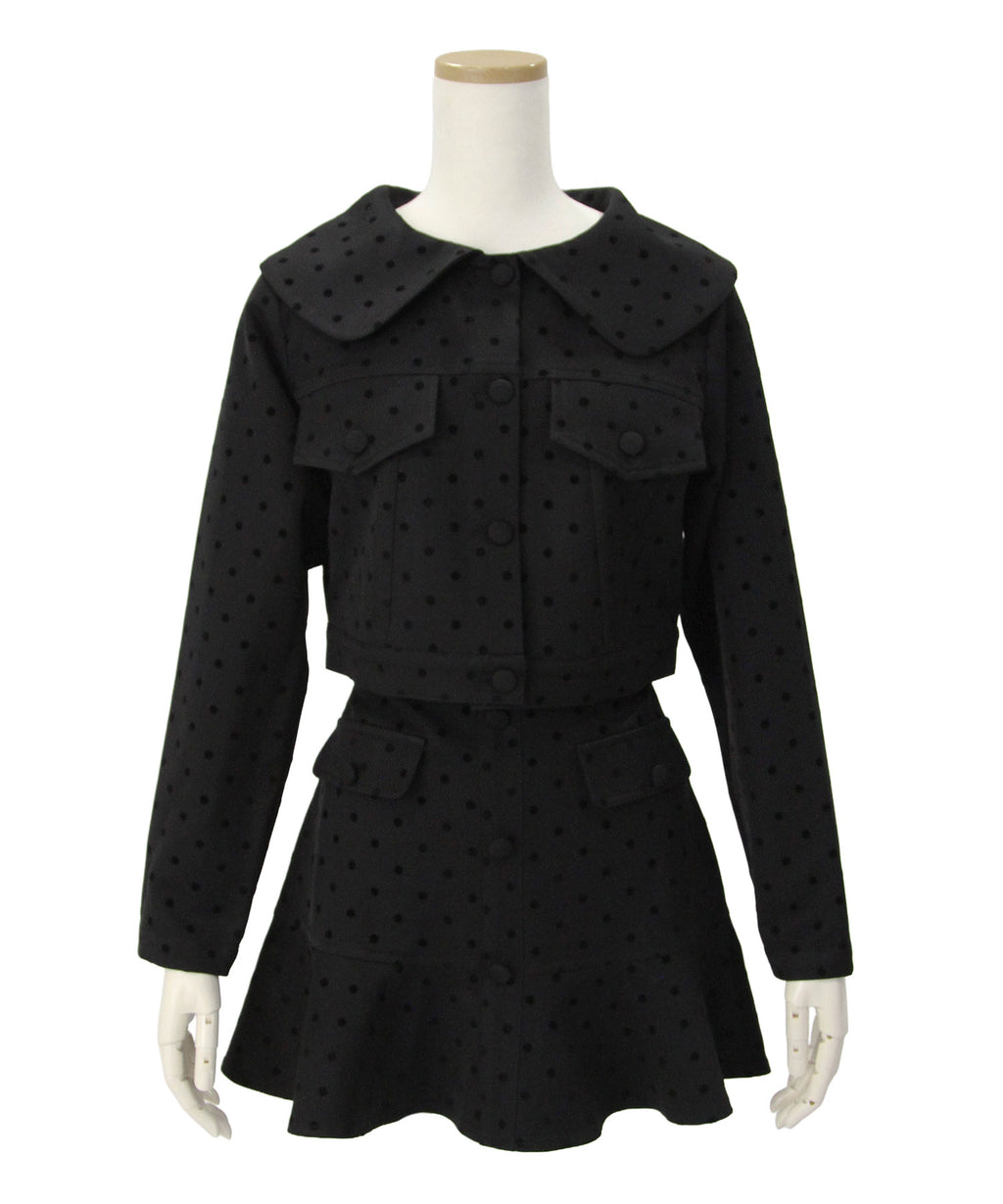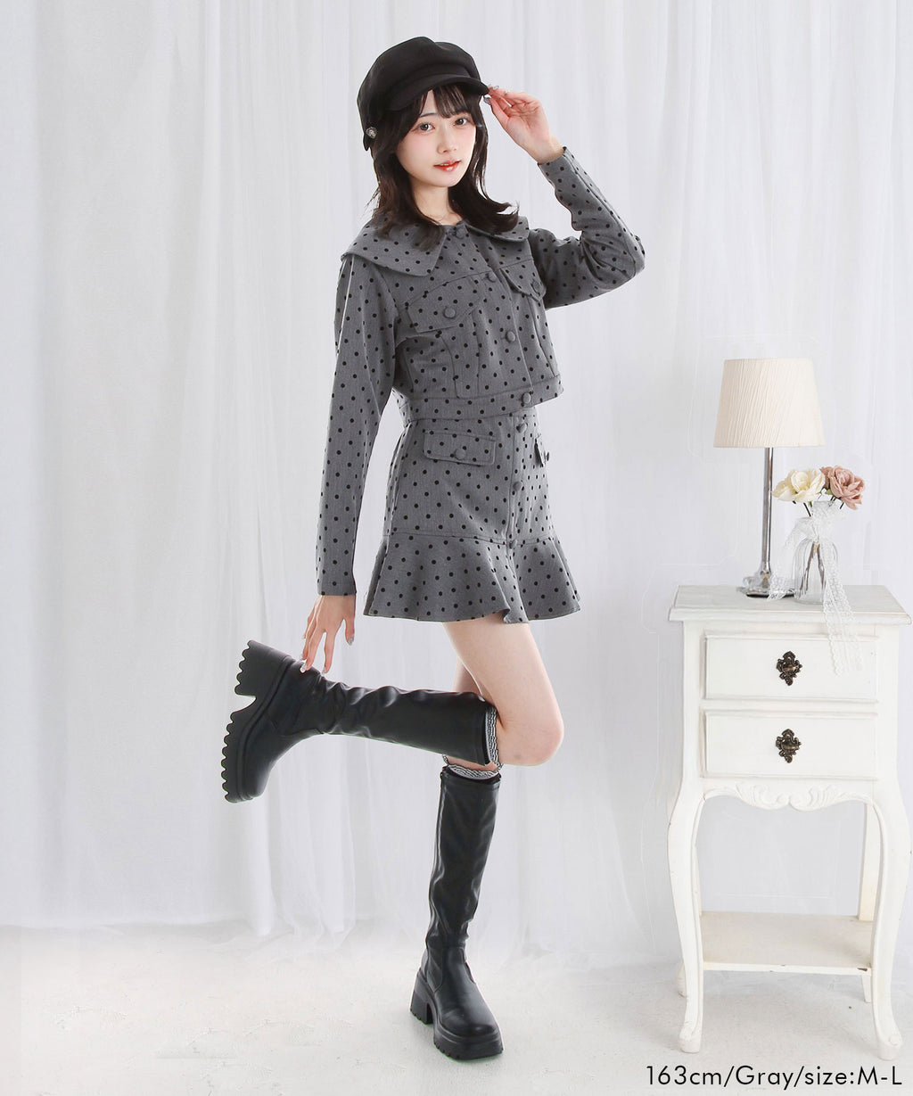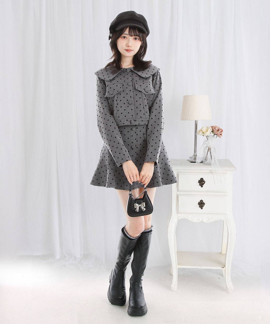 トレンド感たっぷり♪ドット柄丸襟ショートジャケット&ミニスカートセットアップのご紹介♪