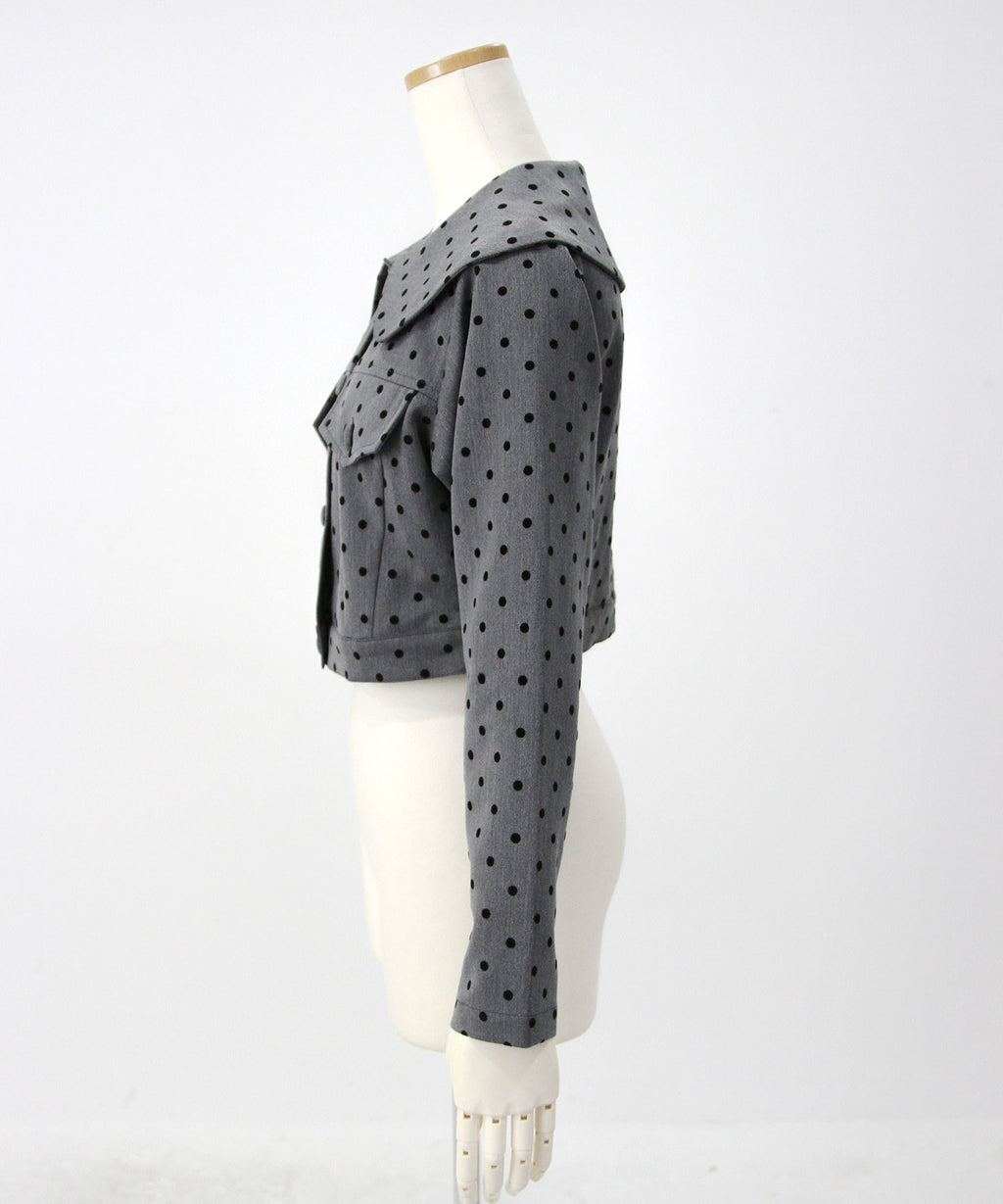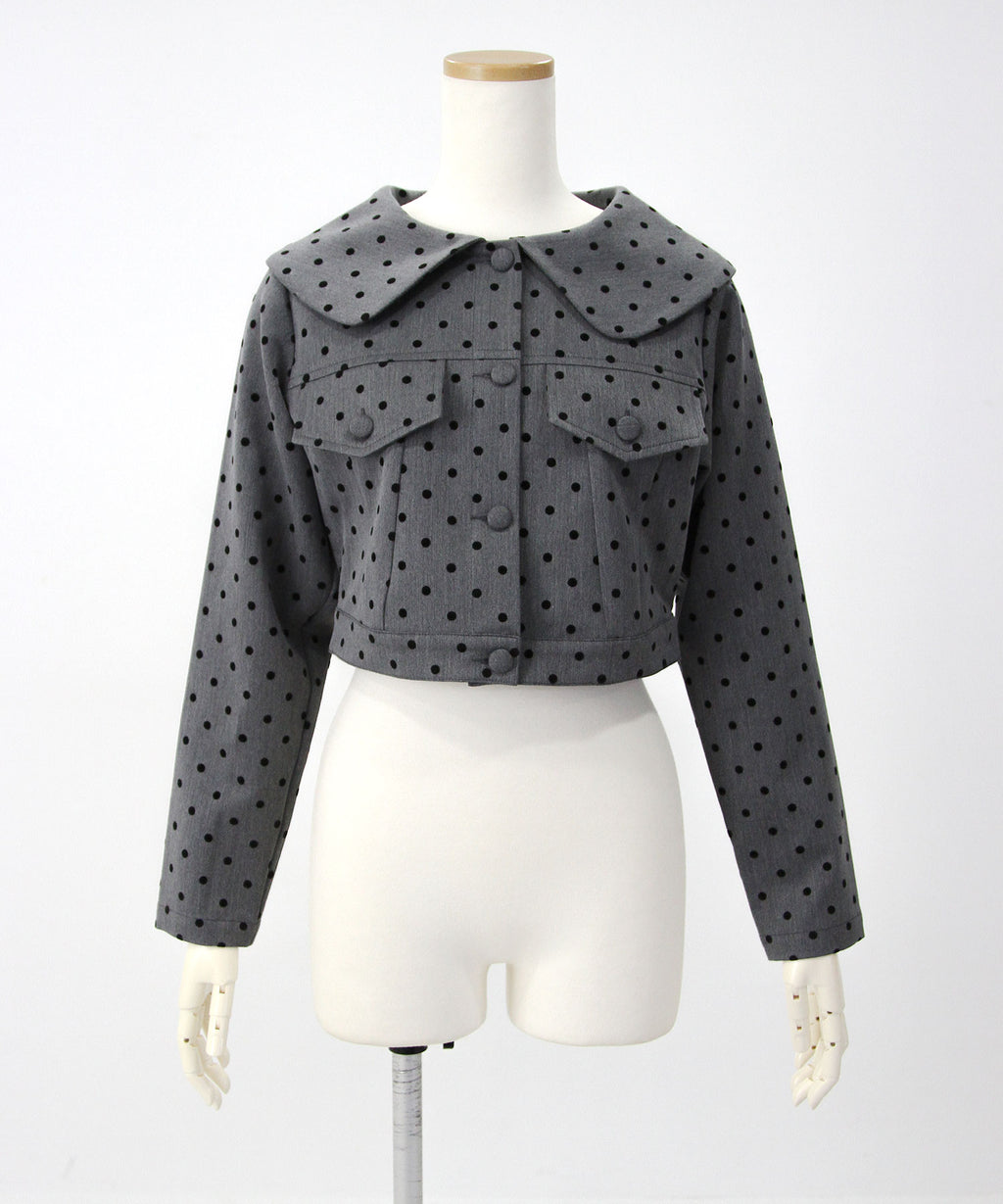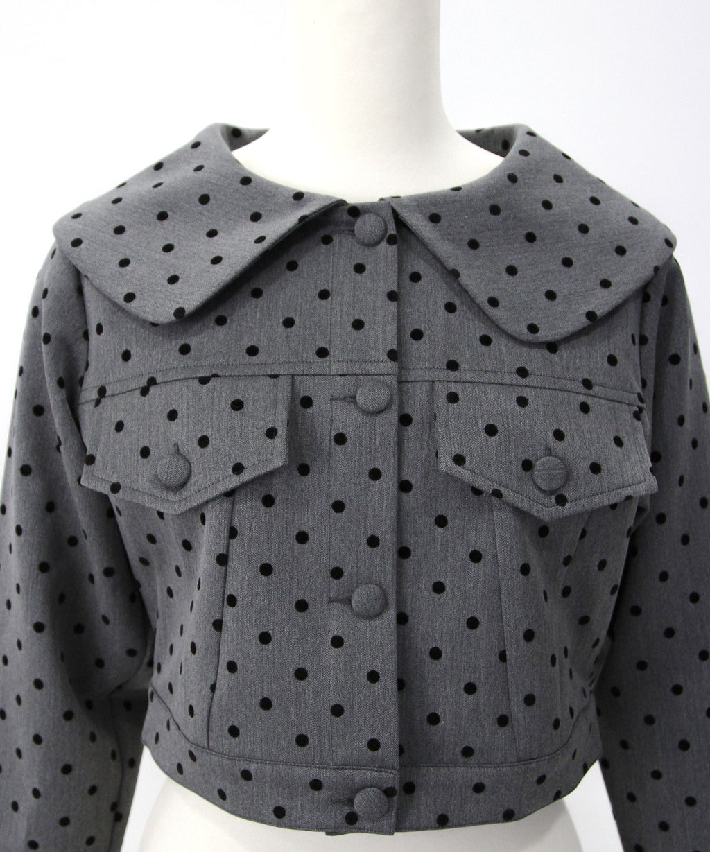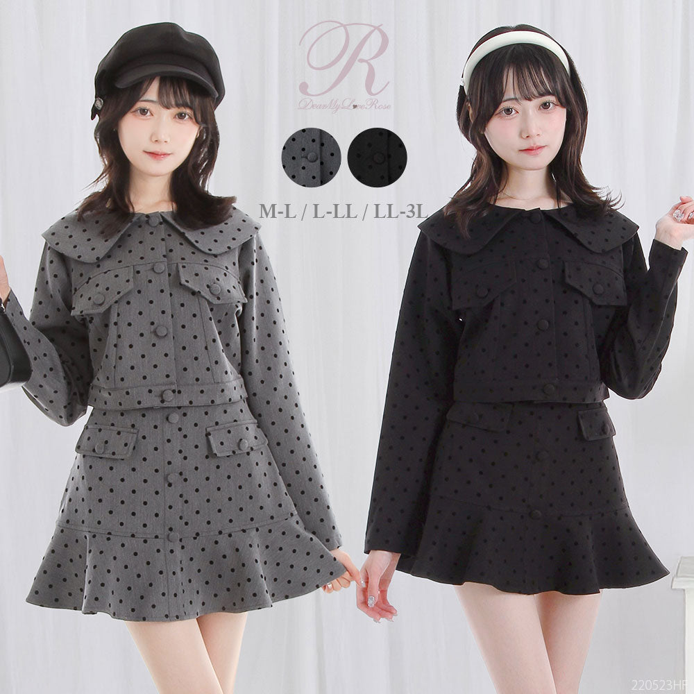 トレンド感たっぷり♪ドット柄丸襟ショートジャケット&ミニスカートセットアップのご紹介♪