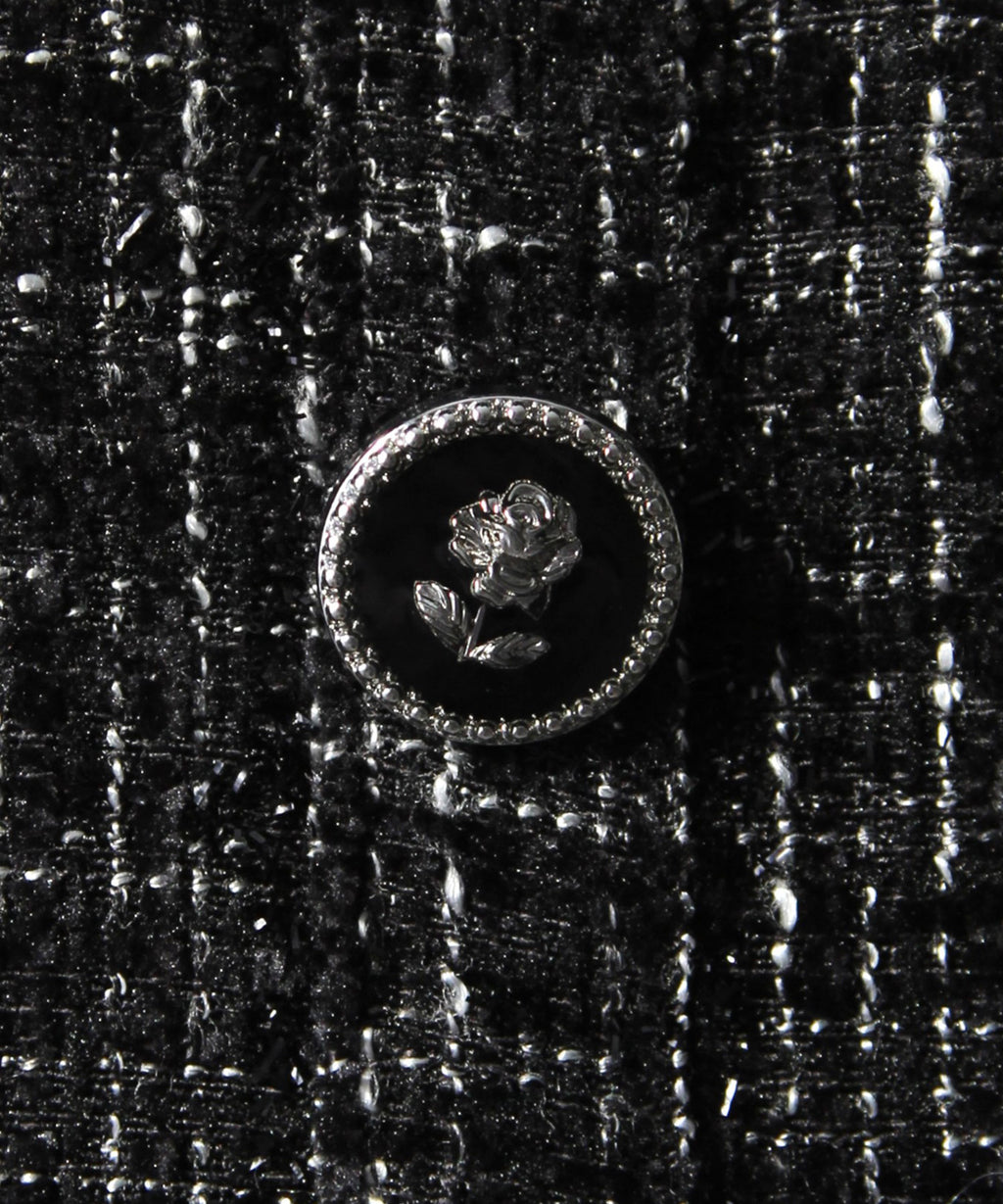 フロントに並んだ薔薇モチーフのボタンがクラシカルで高級感のあるアクセントに。