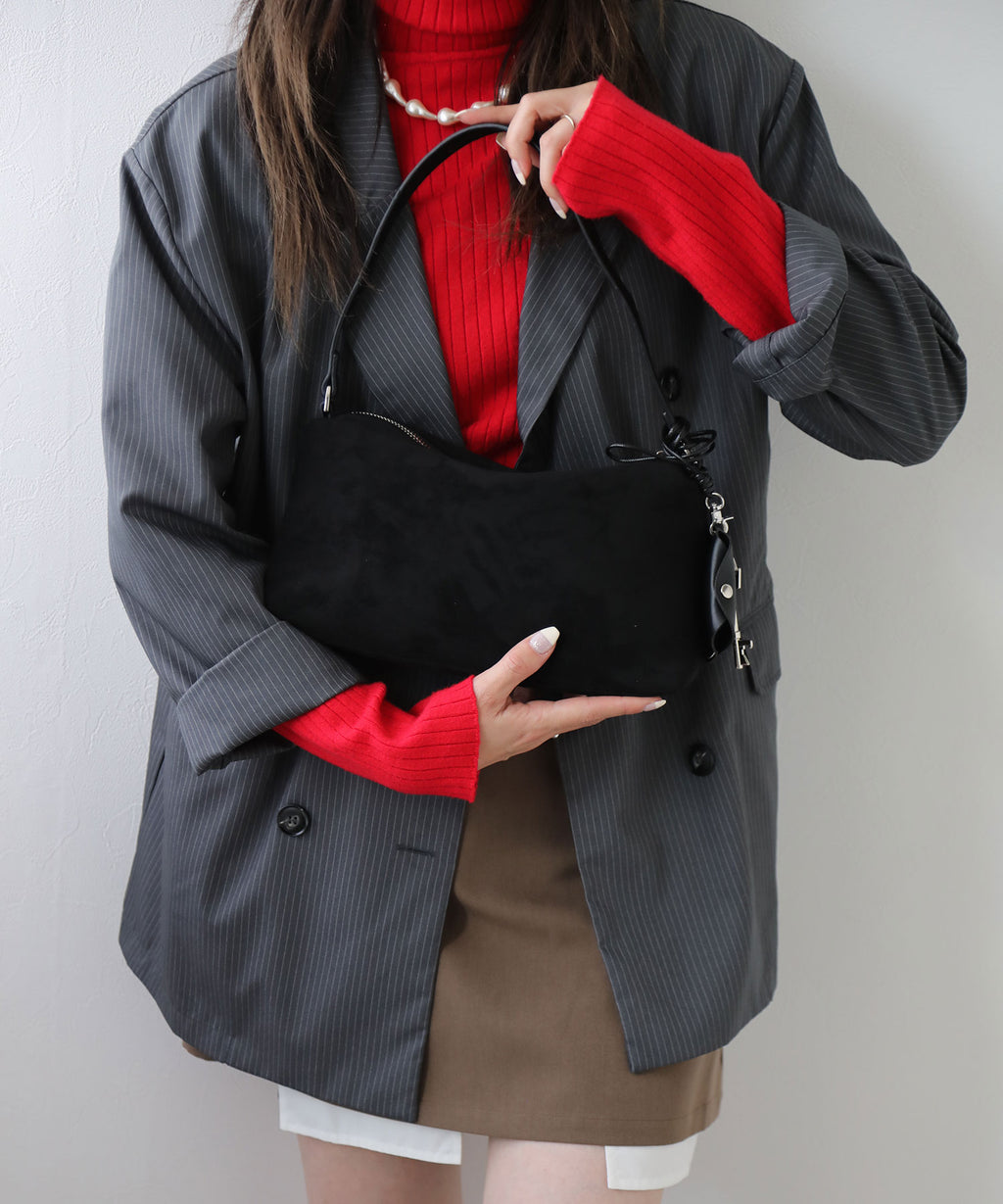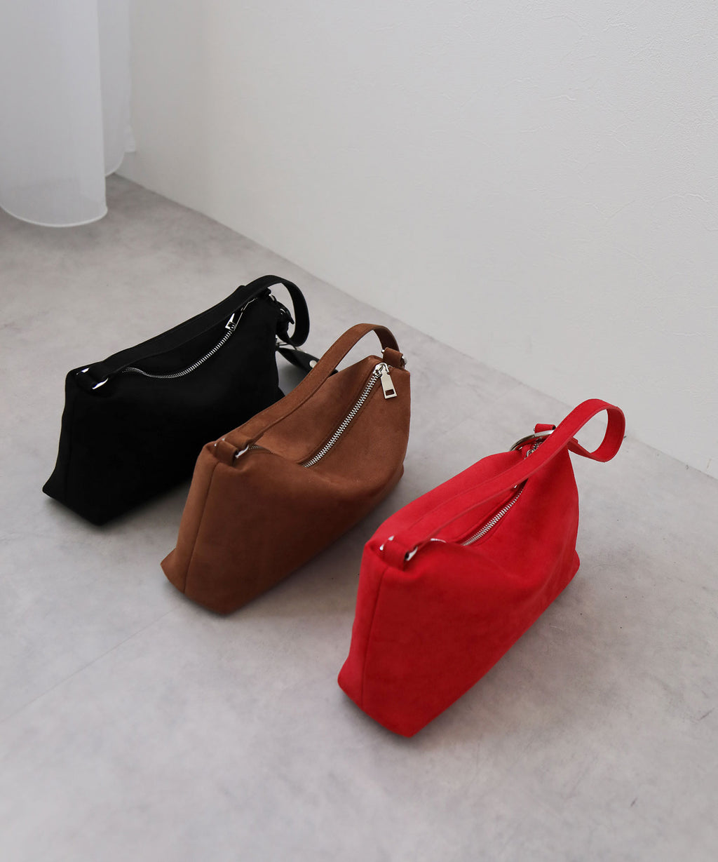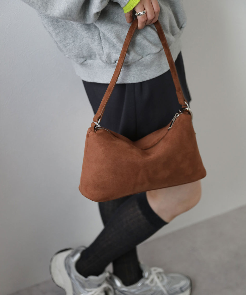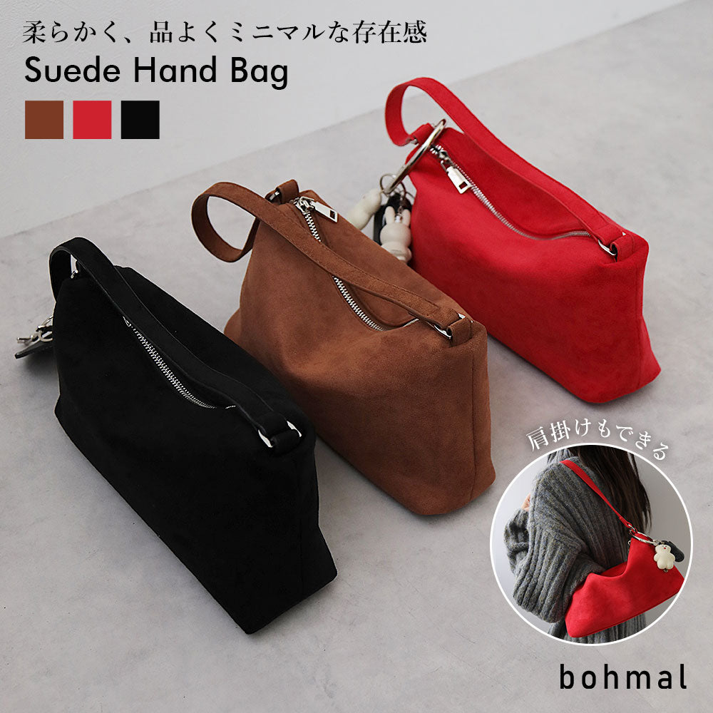 スウェードのしっとりとした質感が上品さを引き立てるハンドバッグ。