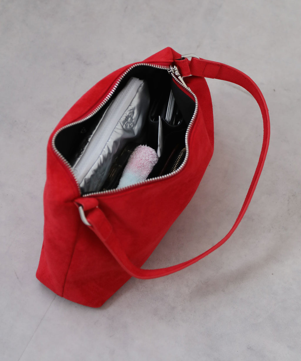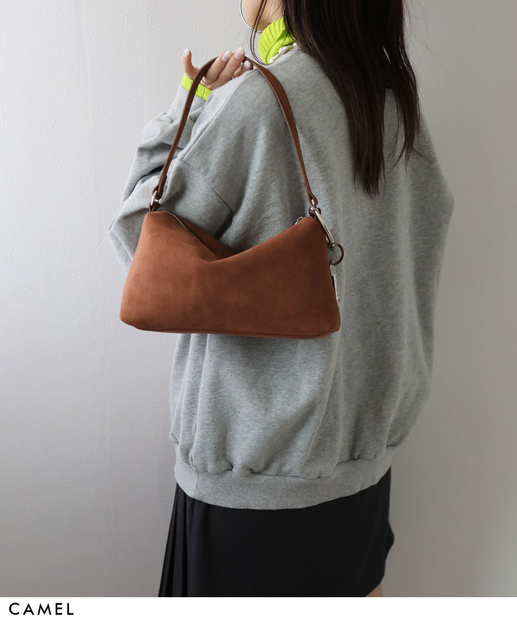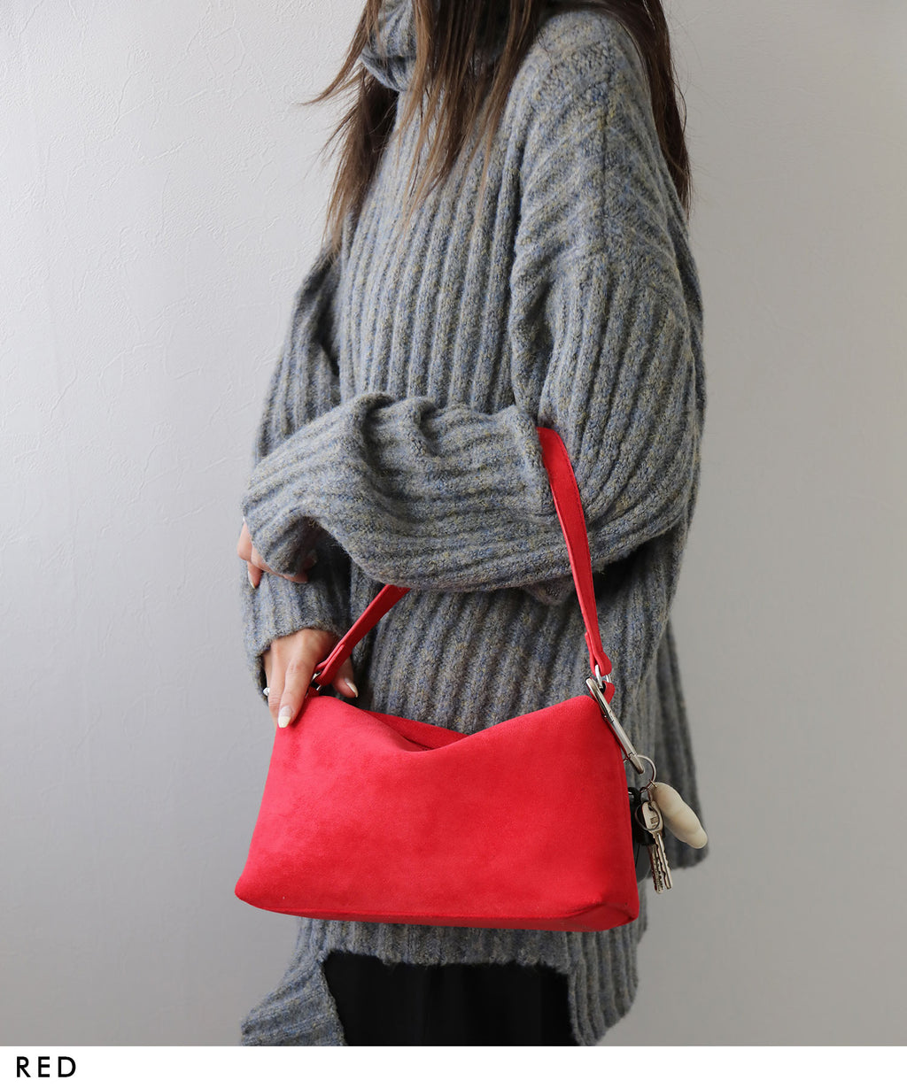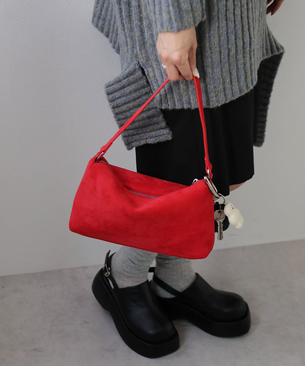 スウェードのしっとりとした質感が上品さを引き立てるハンドバッグ。