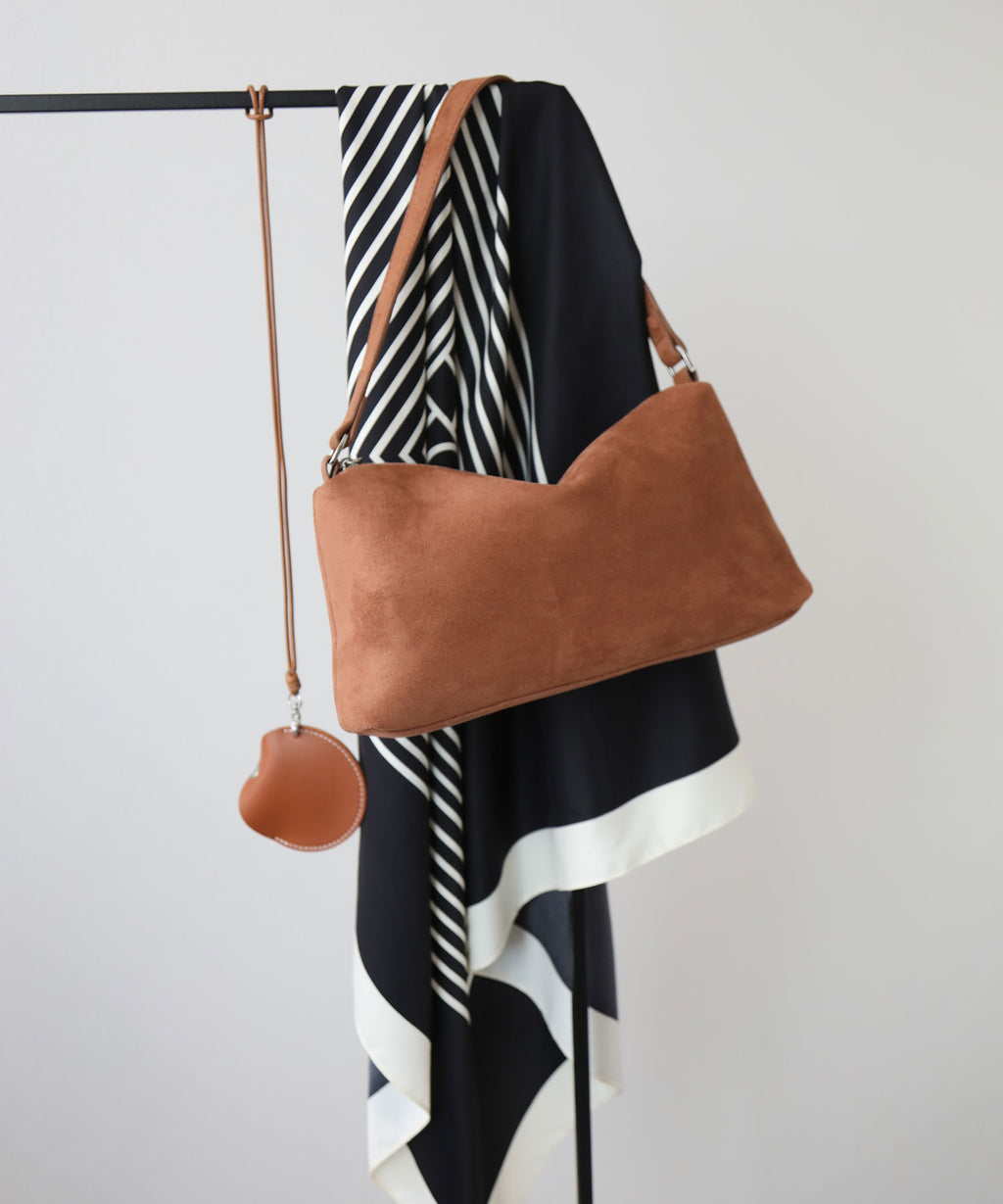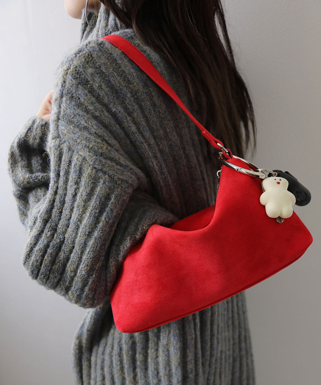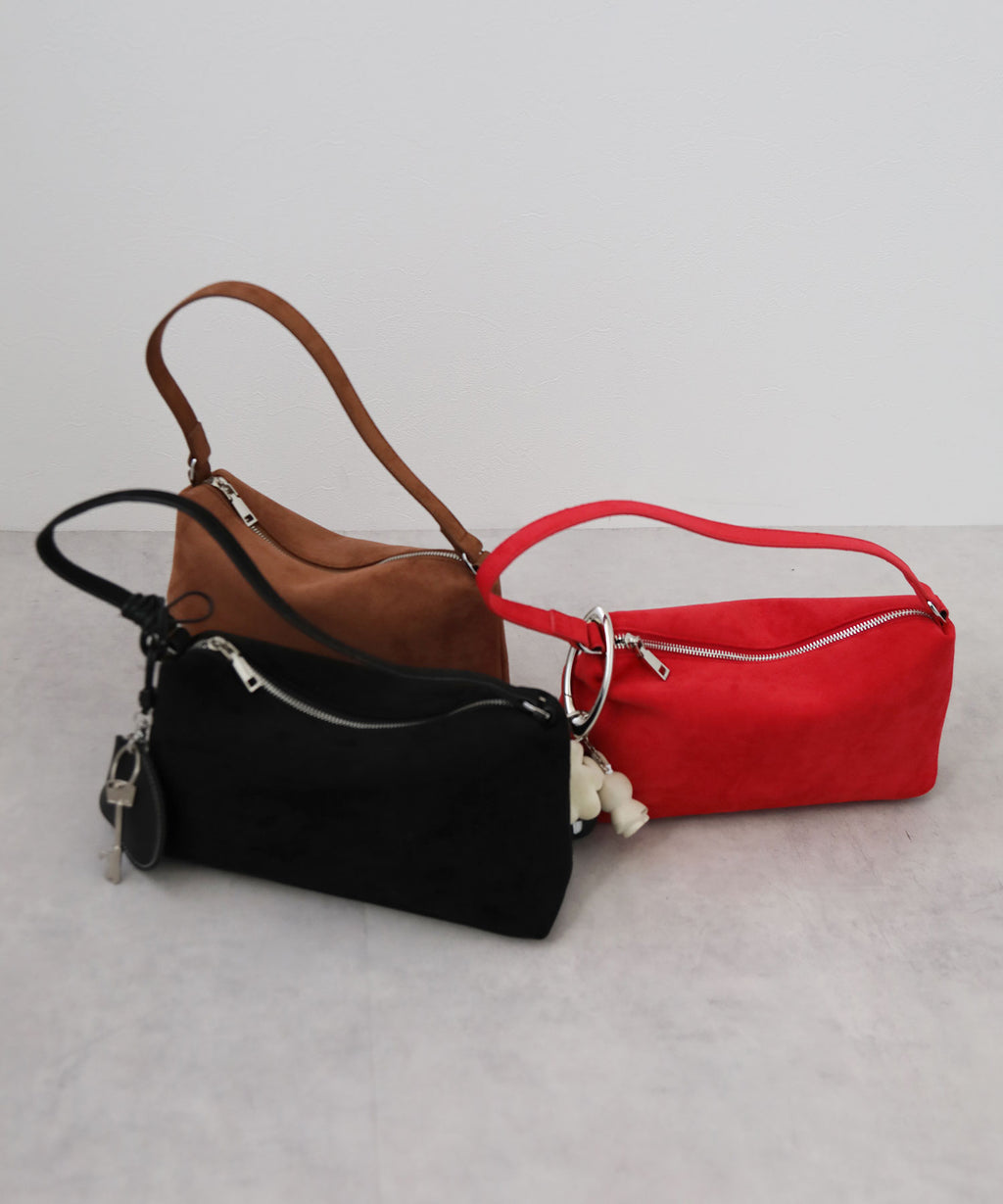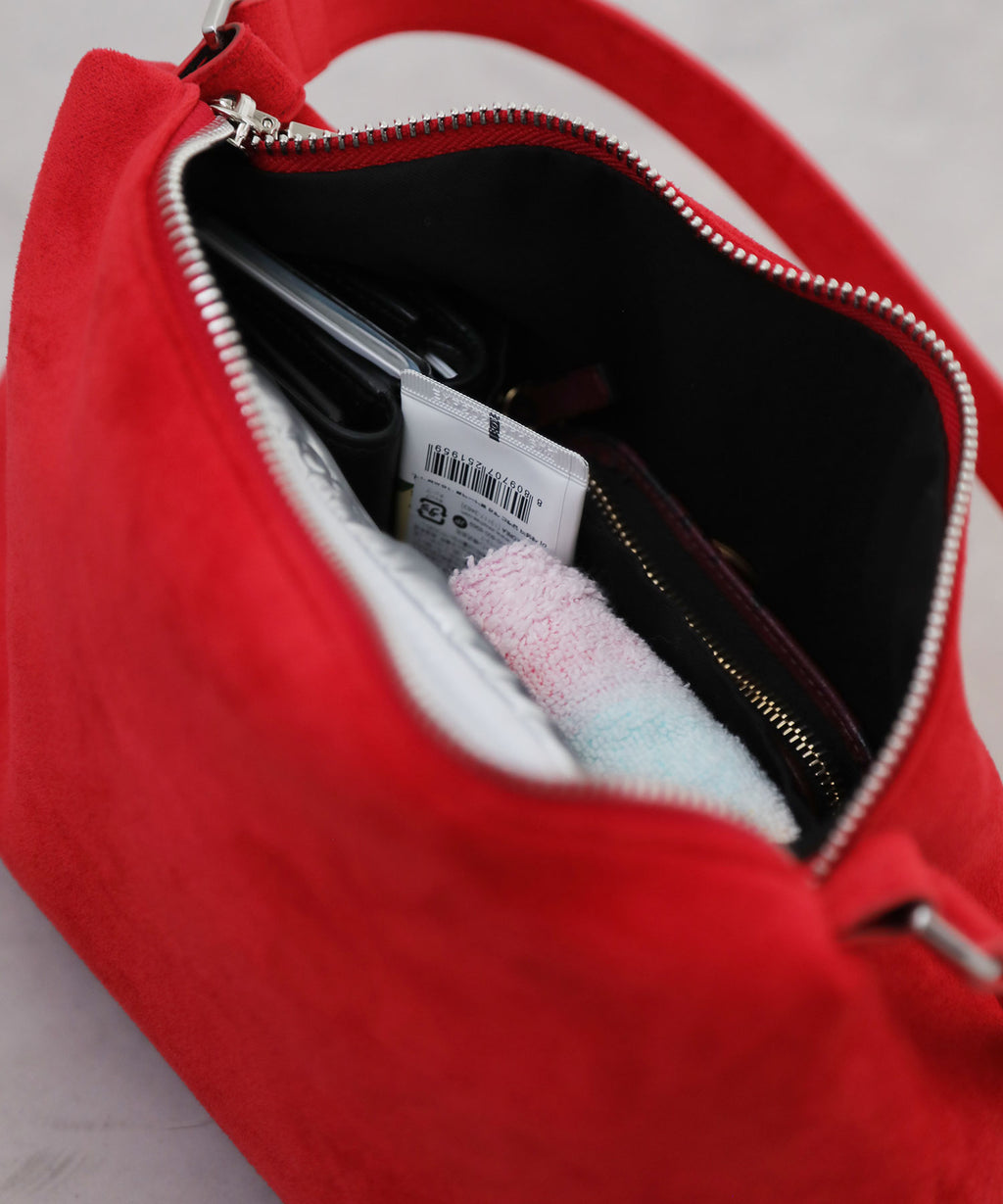 スウェードのしっとりとした質感が上品さを引き立てるハンドバッグ。