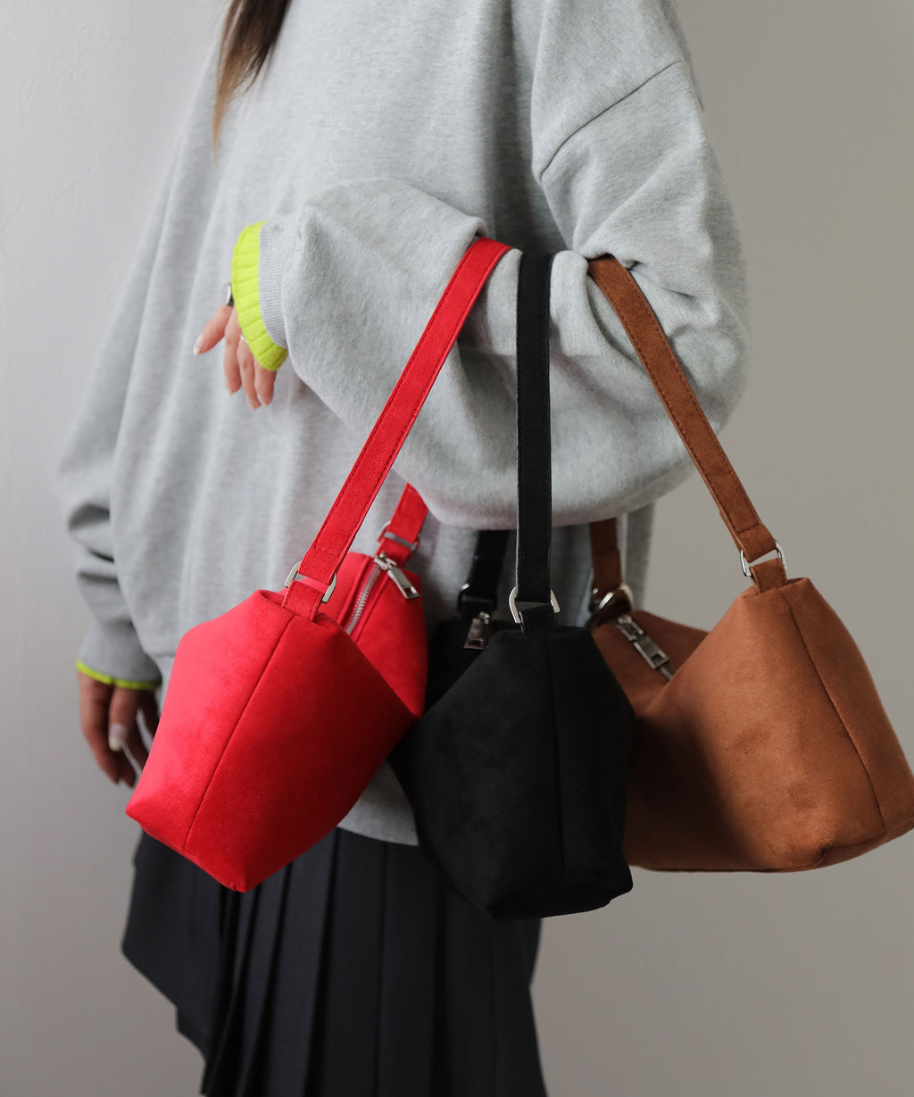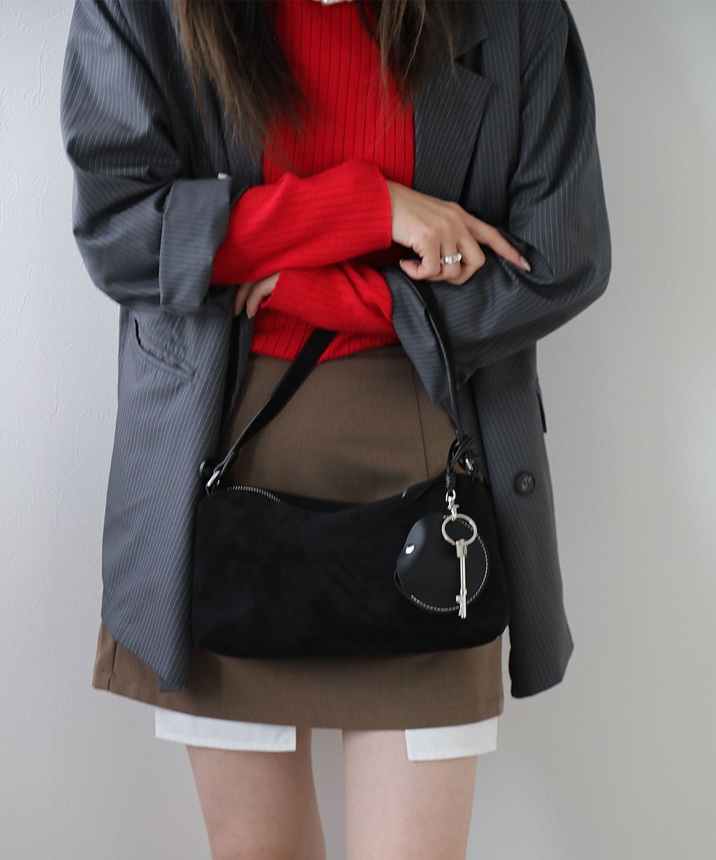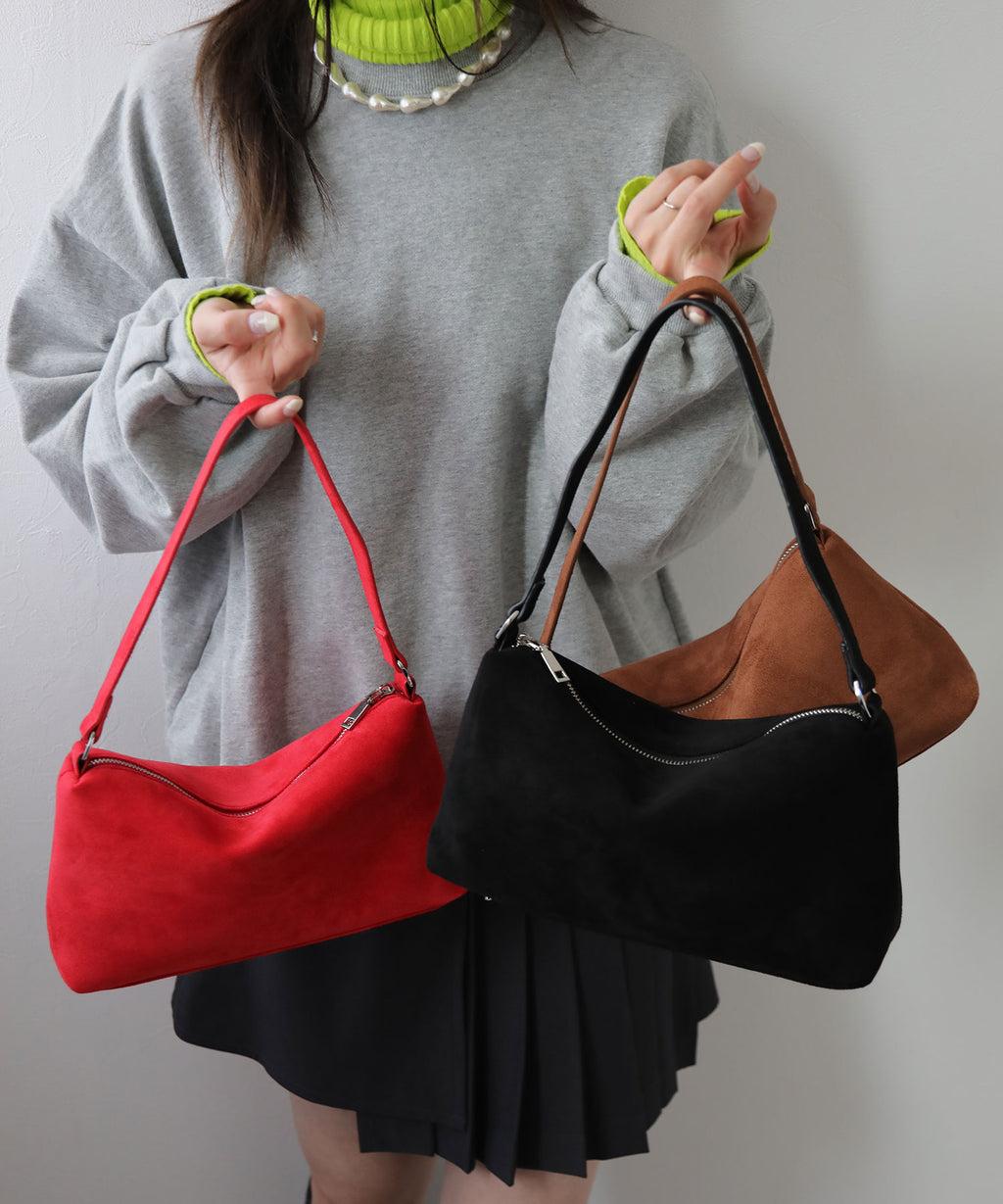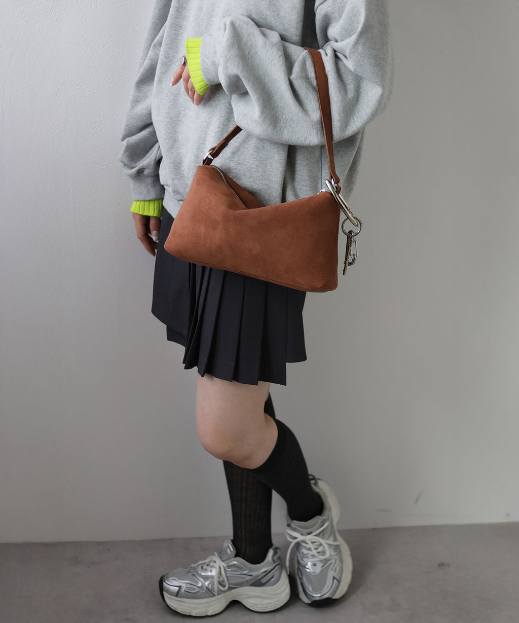 スウェードのしっとりとした質感が上品さを引き立てるハンドバッグ。