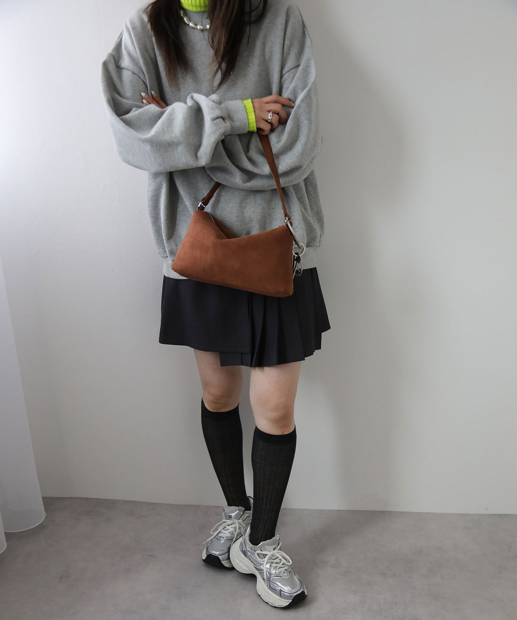 スウェードの質感がほどよい上品さをプラスして大人のこなれ感を演出。