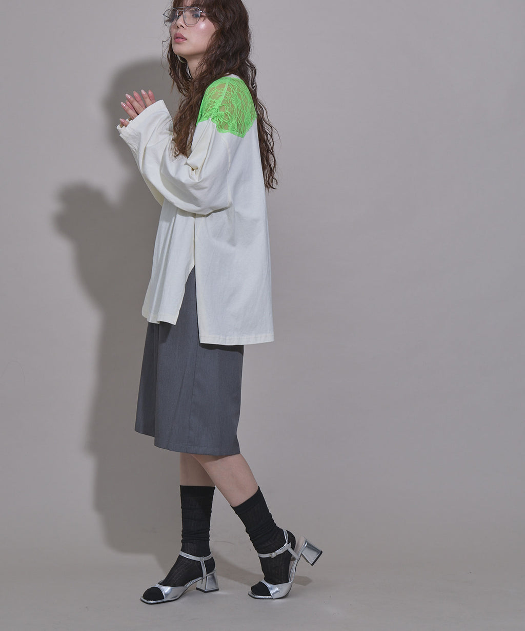 シアー素材なので、パンプスやサボなどの抜け感シューズと合わせると一段とこなれたコーディネートに仕上がります。