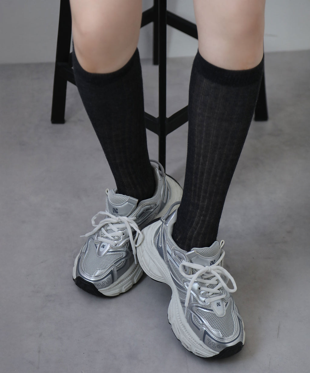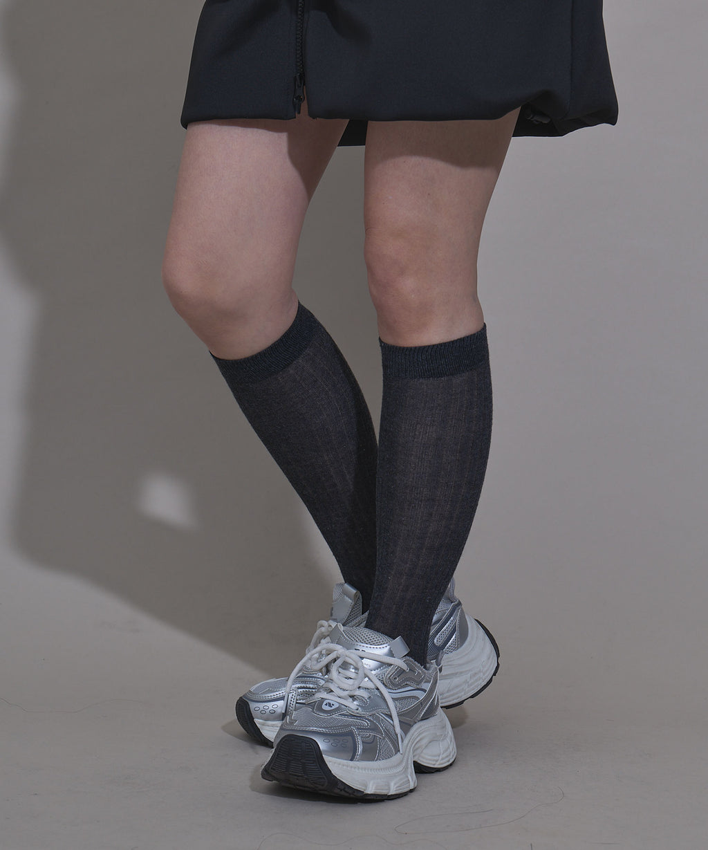 繊細なシアーリブが大人の抜け感を演出するロングソックス。