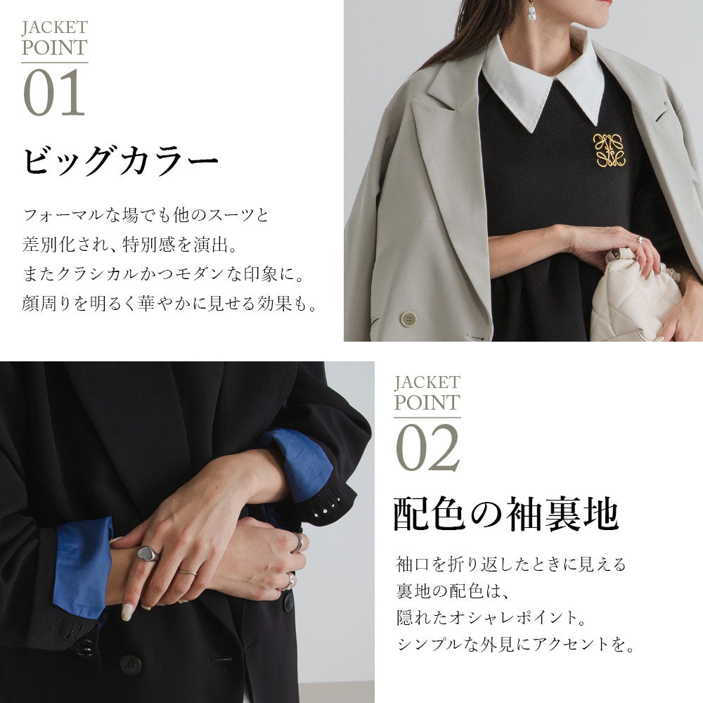 また、フォーマルな場でも他のスーツと差別化され、特別感を演出するビッグカラーは
