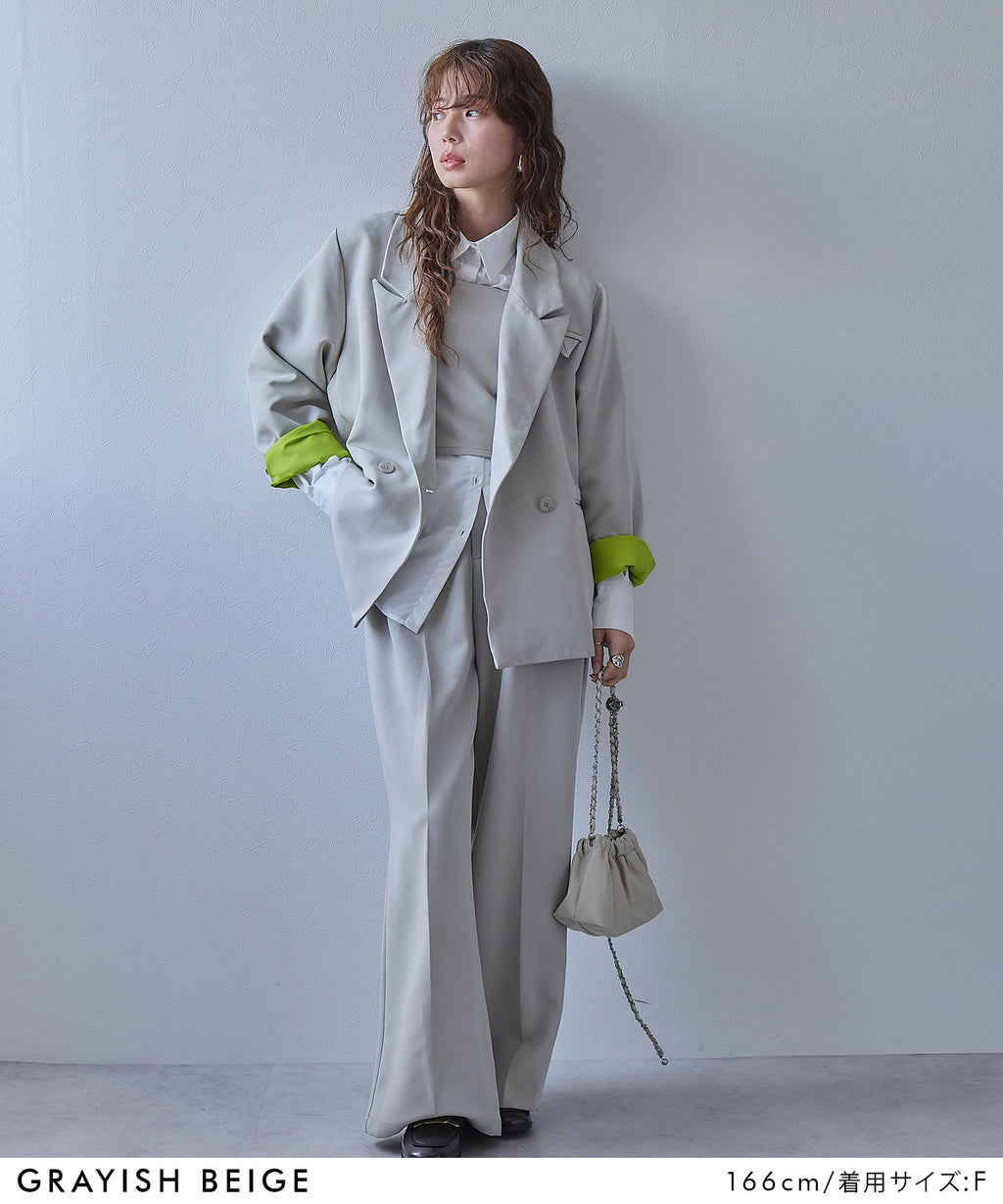 インナーをブラウスからシャツに変えると、よりフォーマルにハンサムな印象に。