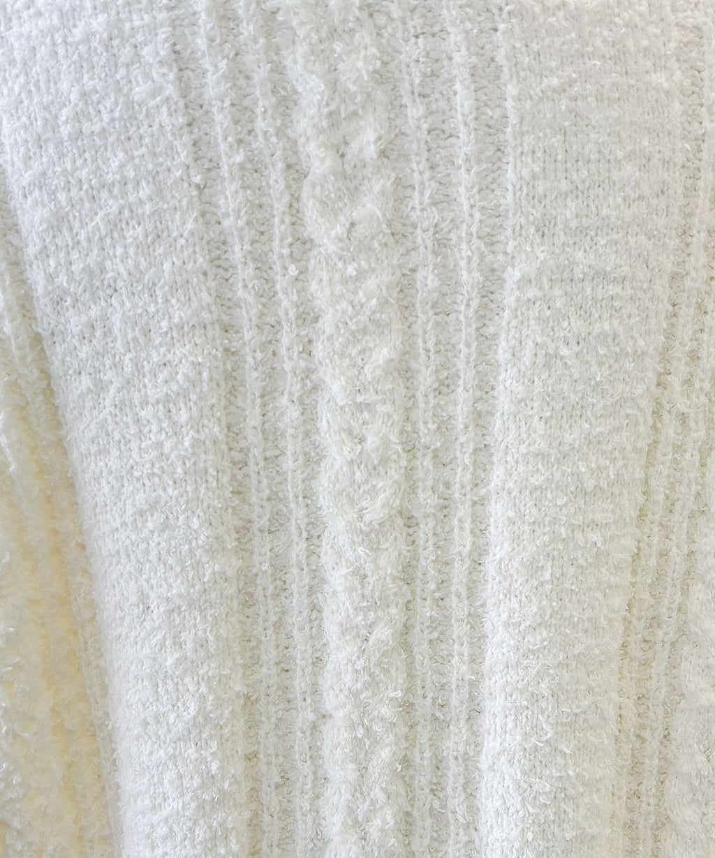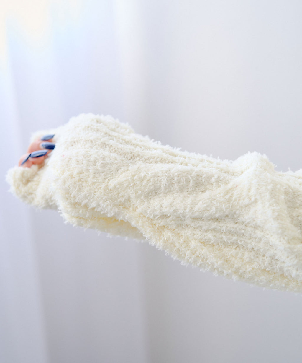 長めの袖が作る“萌え袖”シルエットと、ゆるい落ち感で上半身を小さく見せてくれる華奢みせデザイン。