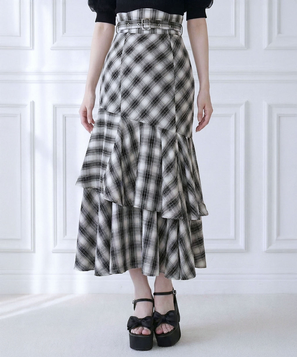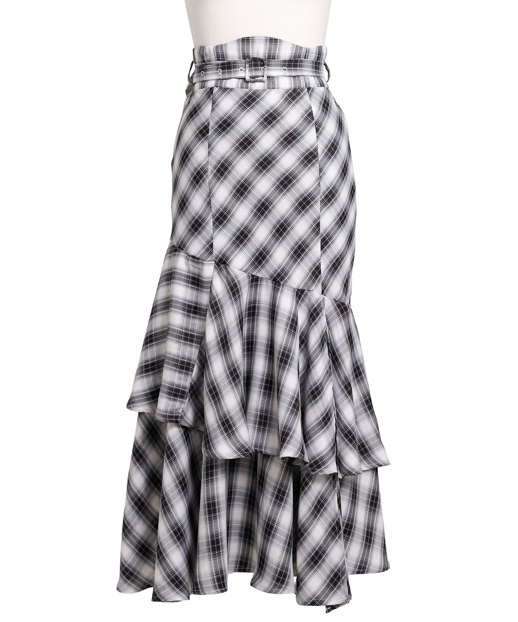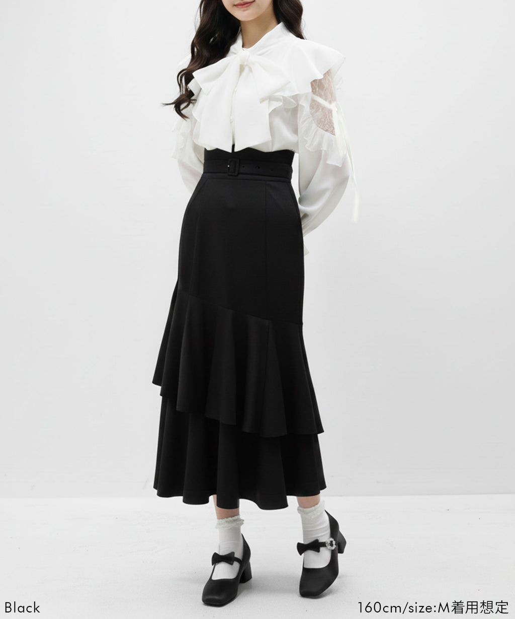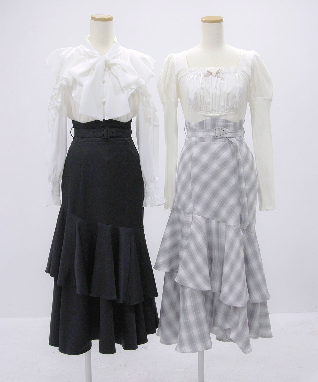 大人可愛いアシメティアードデザインのマーメイドスカート。
