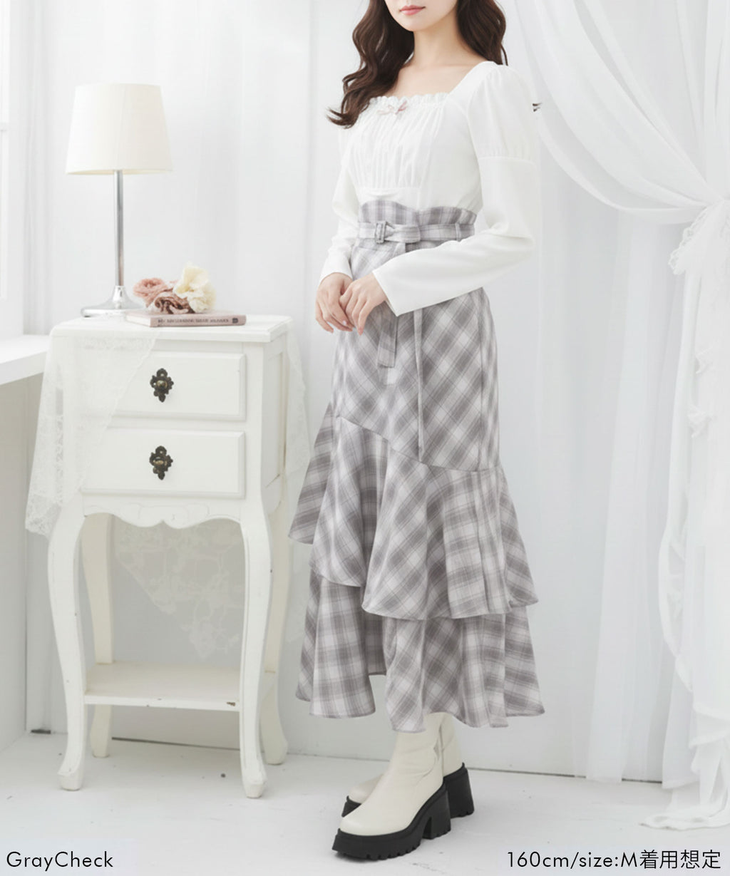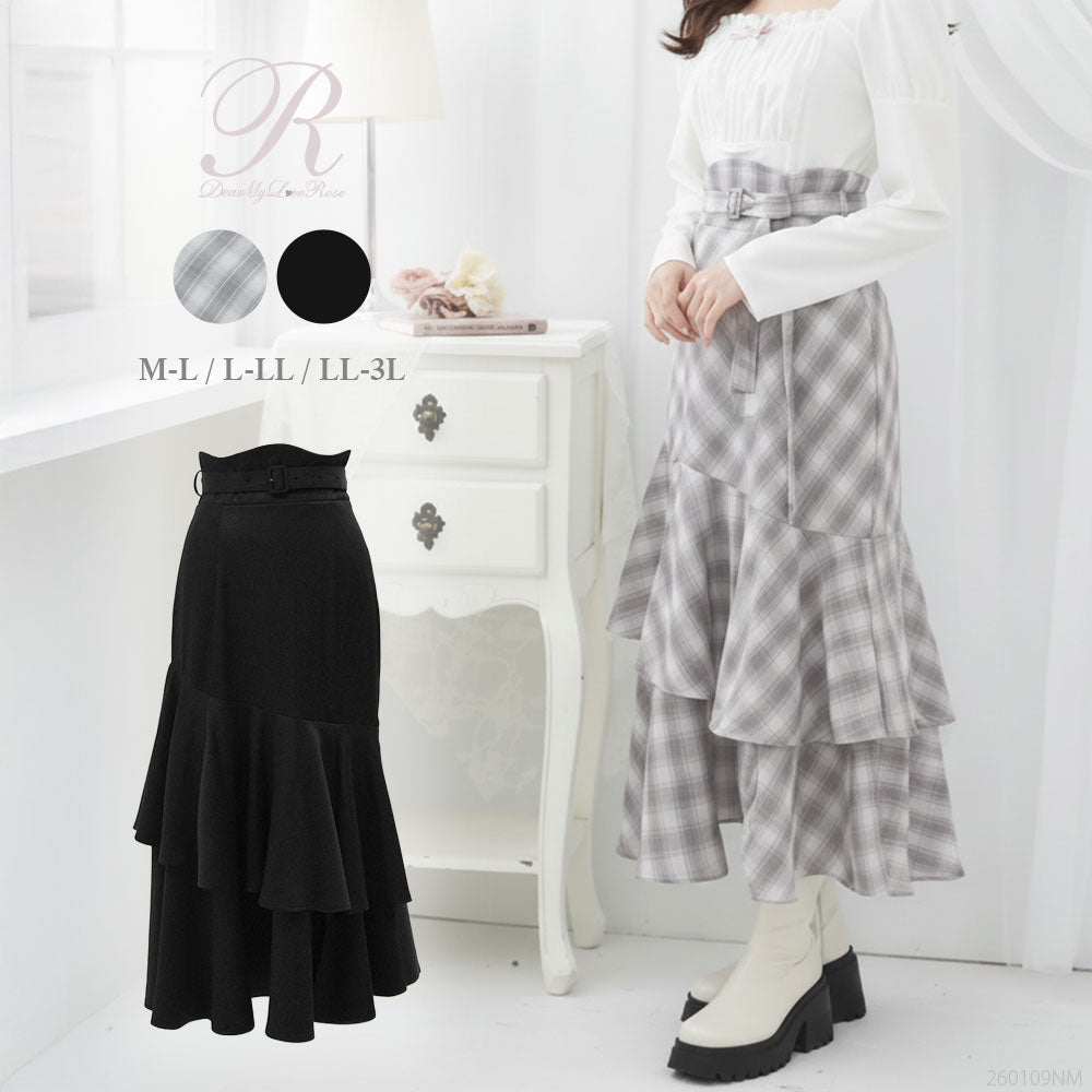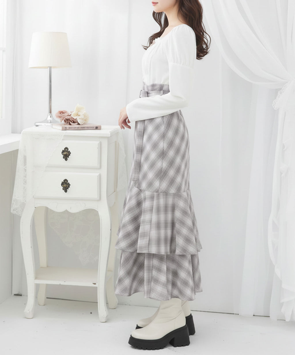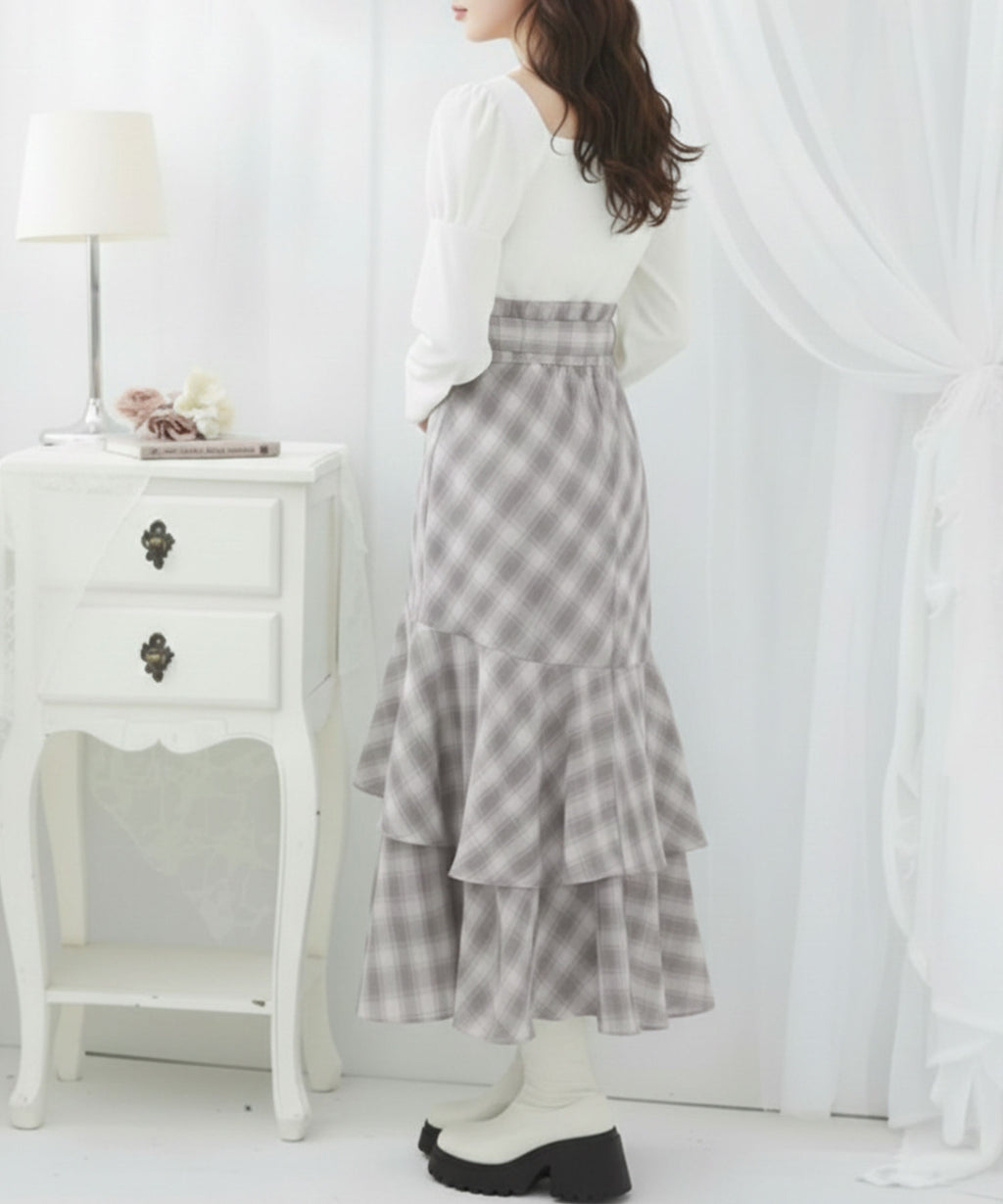 大人可愛いアシメティアードデザインのマーメイドスカート。