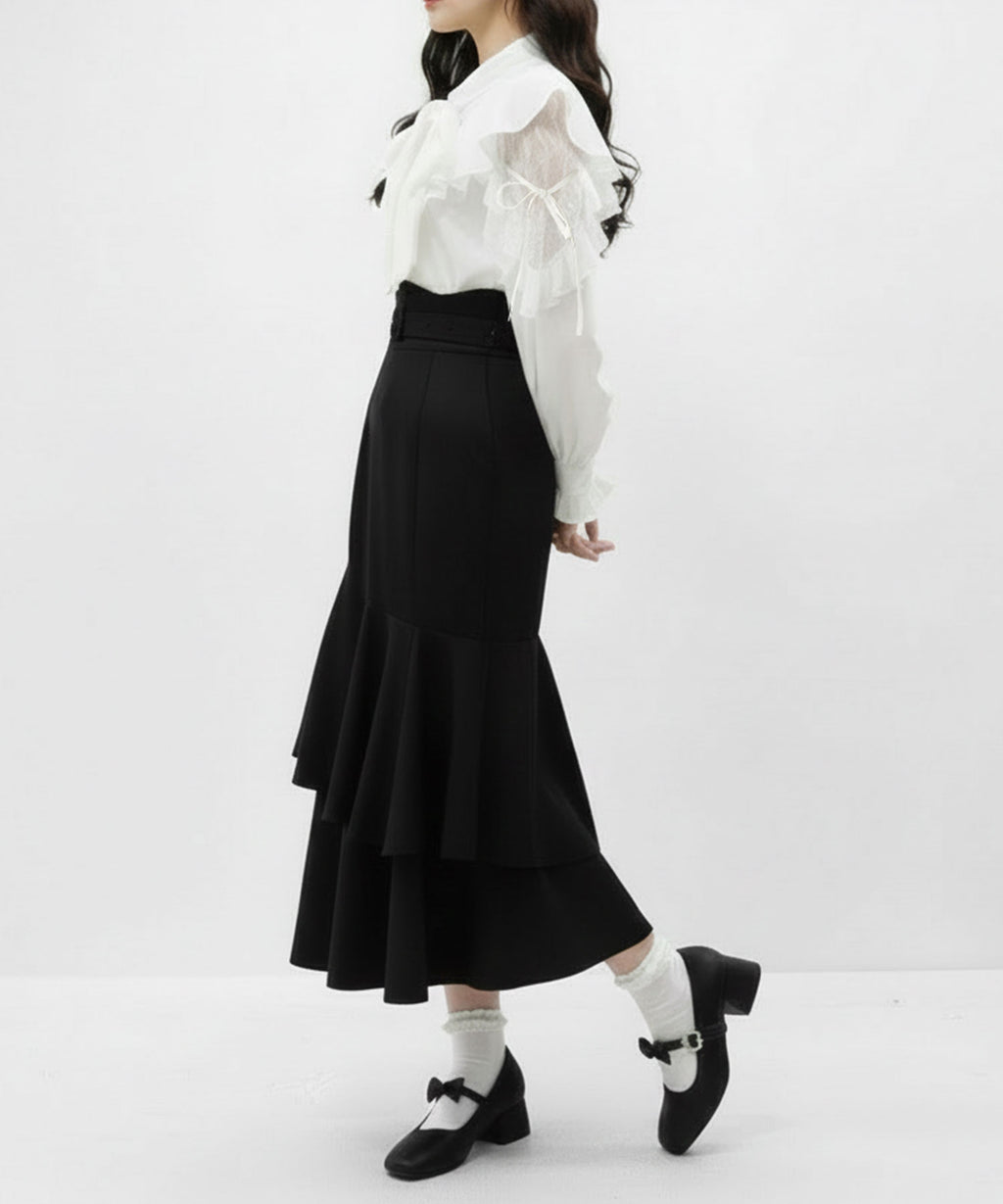 スタイルアップが叶う!ハイウエストアシメフリルマーメイドスカートのご紹介♪