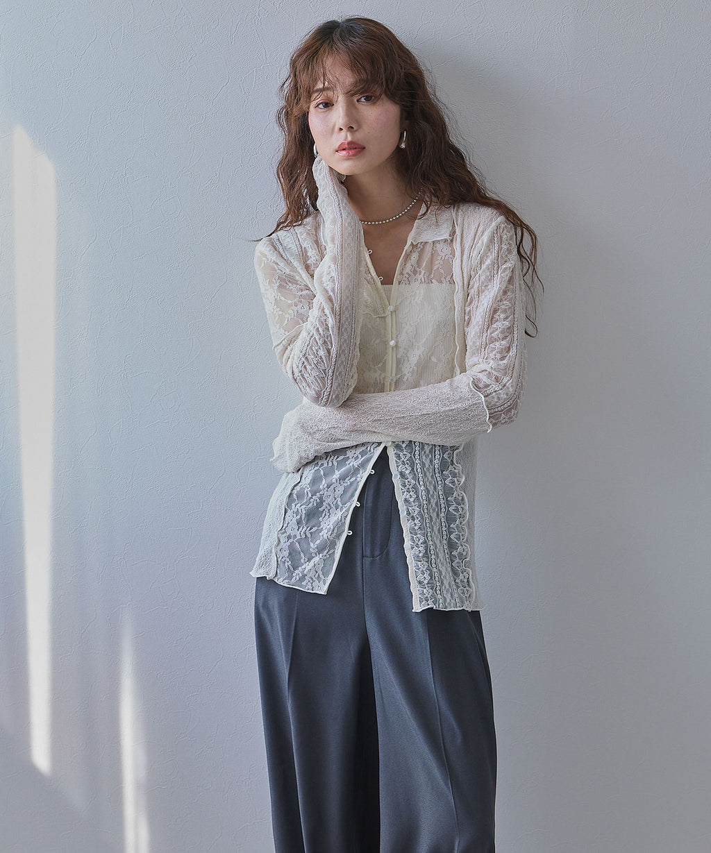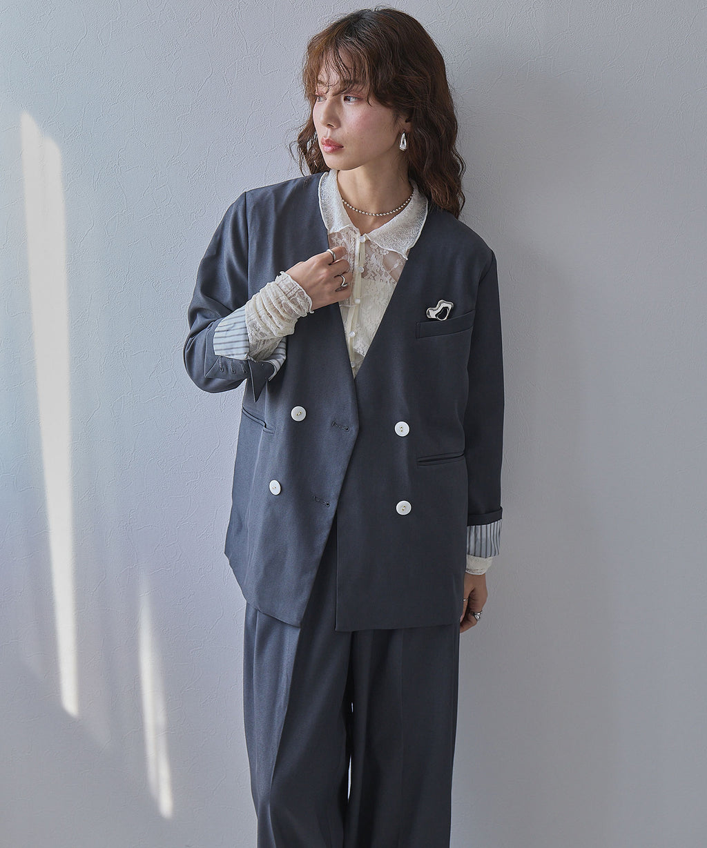 襟付きで程よいきちんと感がありつつ、長めの袖丈と着丈で女性らしさもプラス。