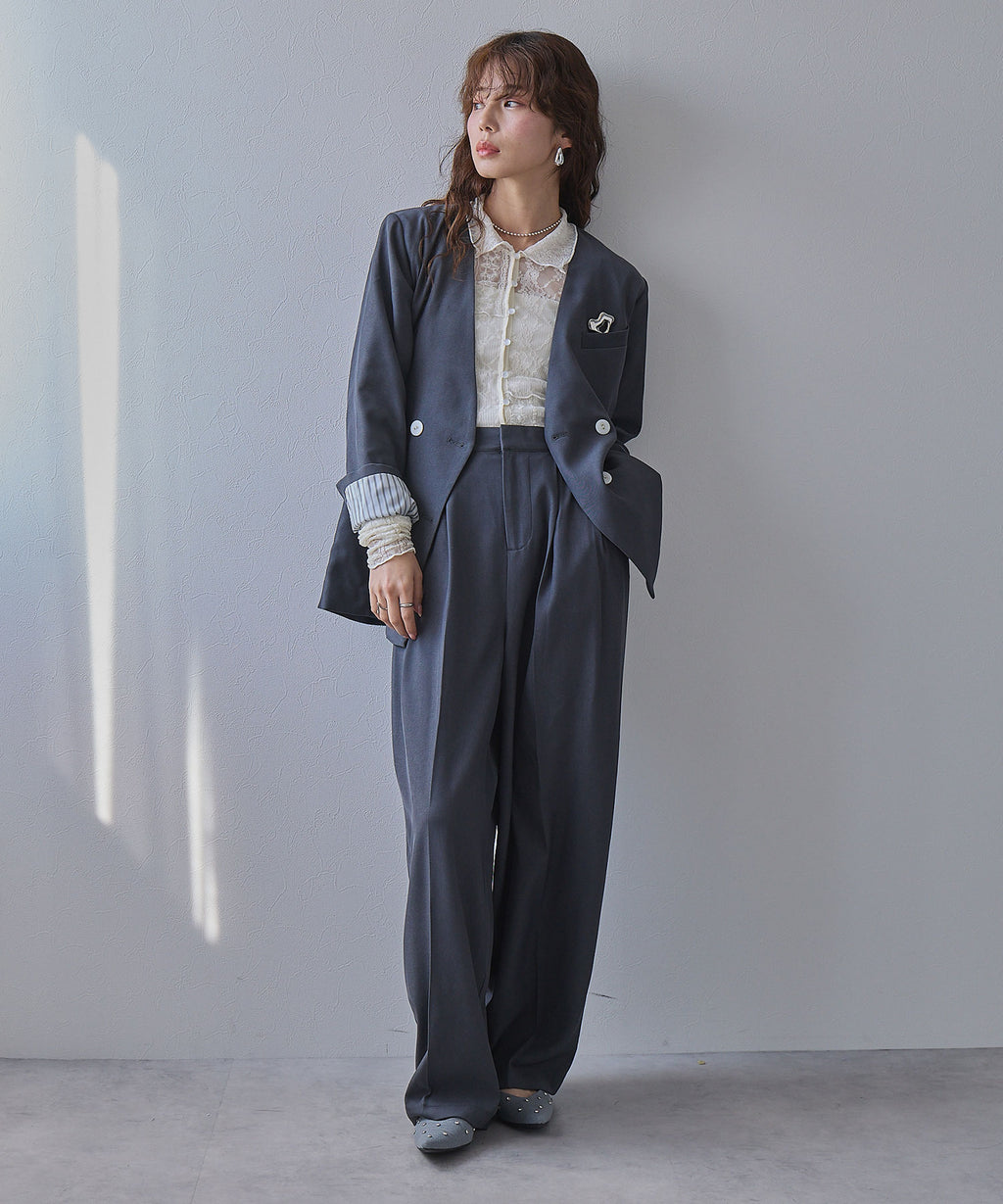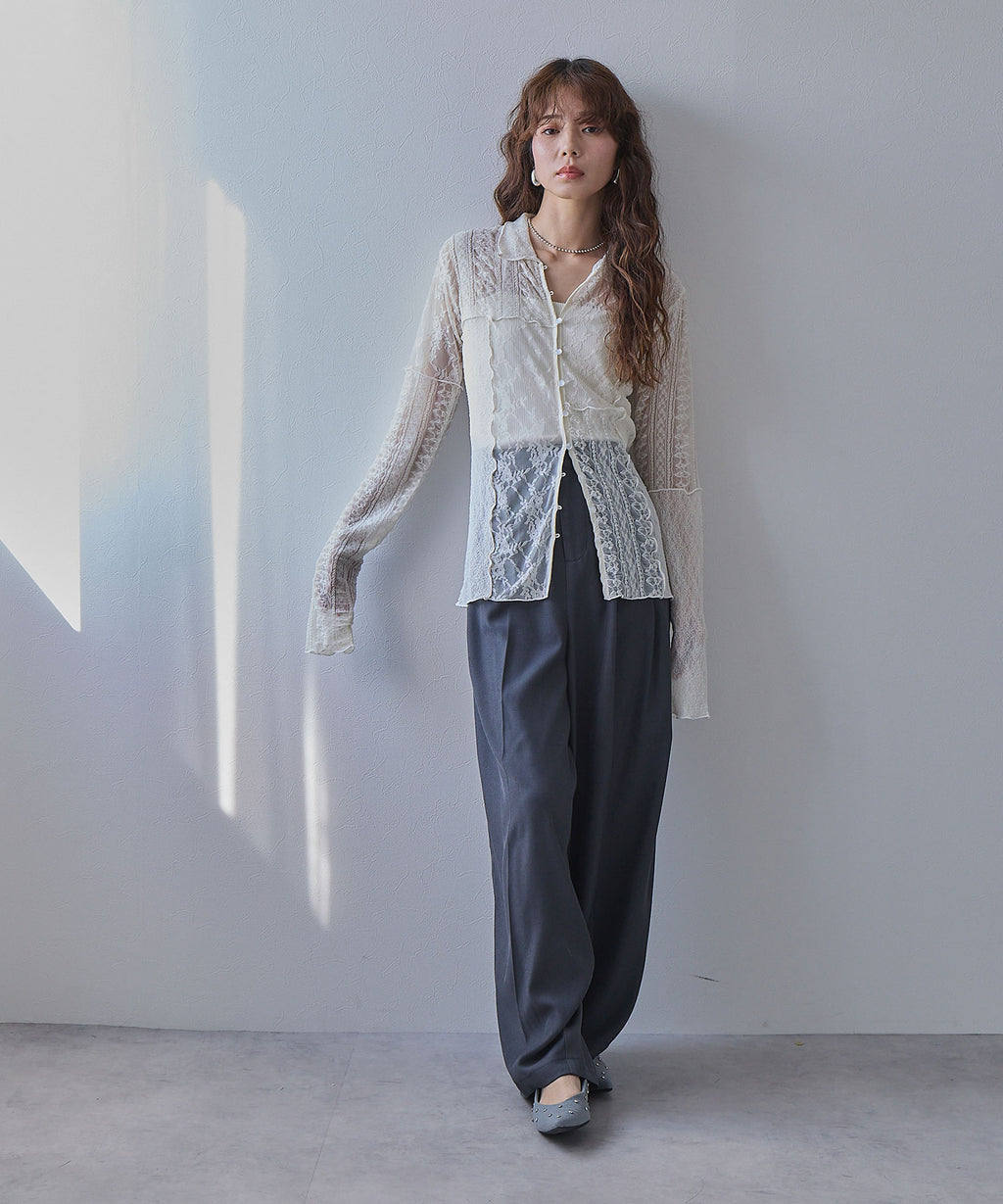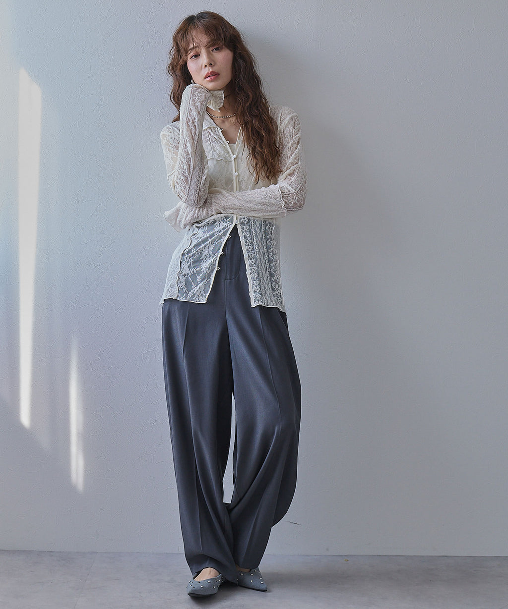 甘めトップス×マニッシュボトムで、今年らしいバランスに。
