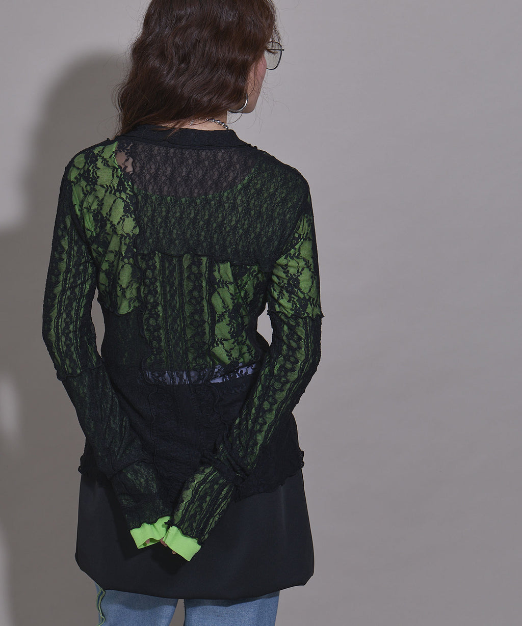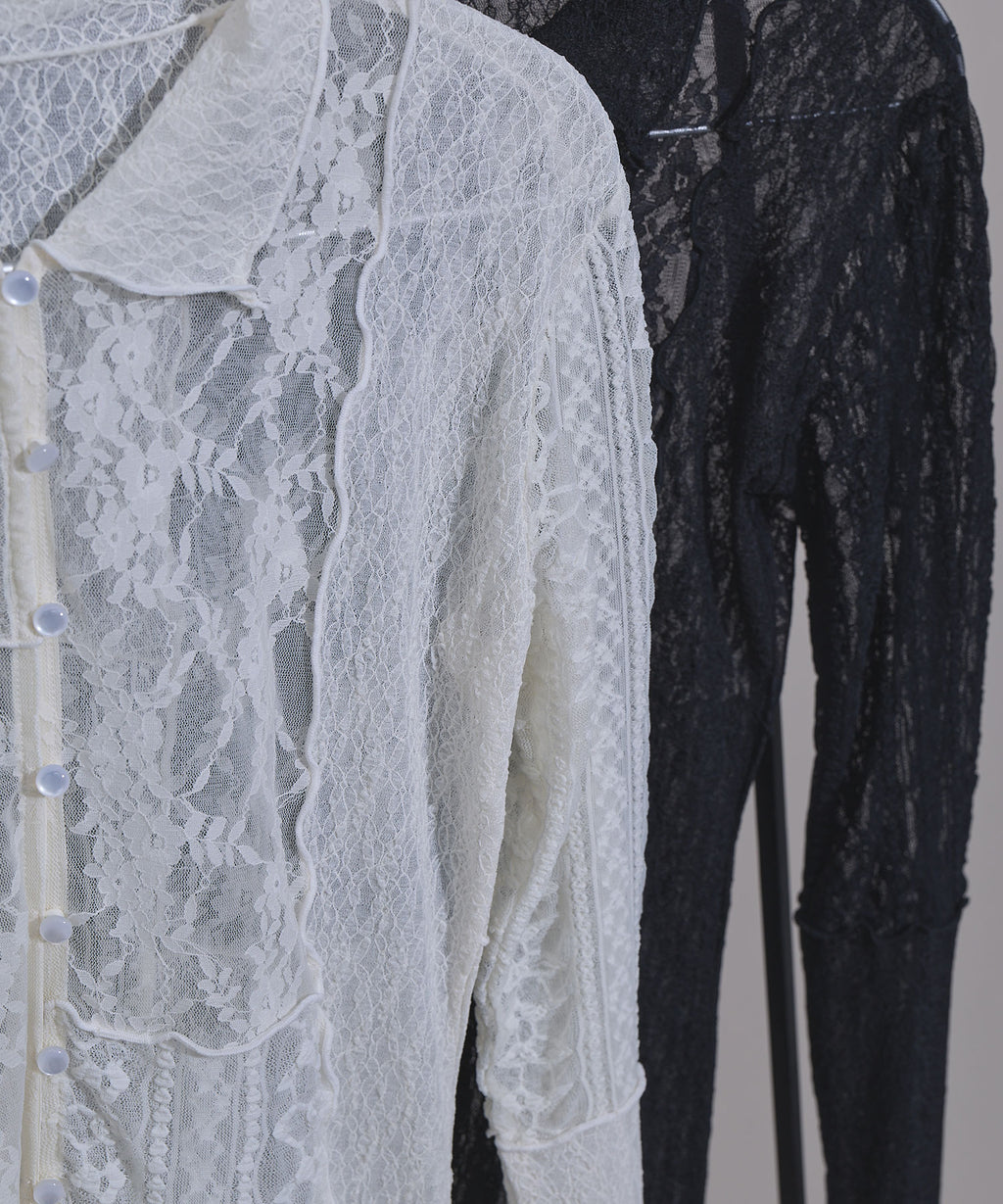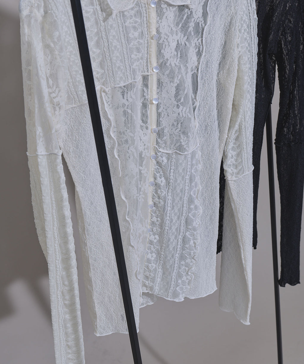 異なるレースを組み合わせた、表情豊かなパッチワークデザイン。