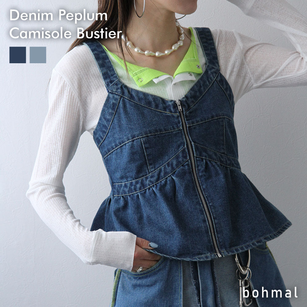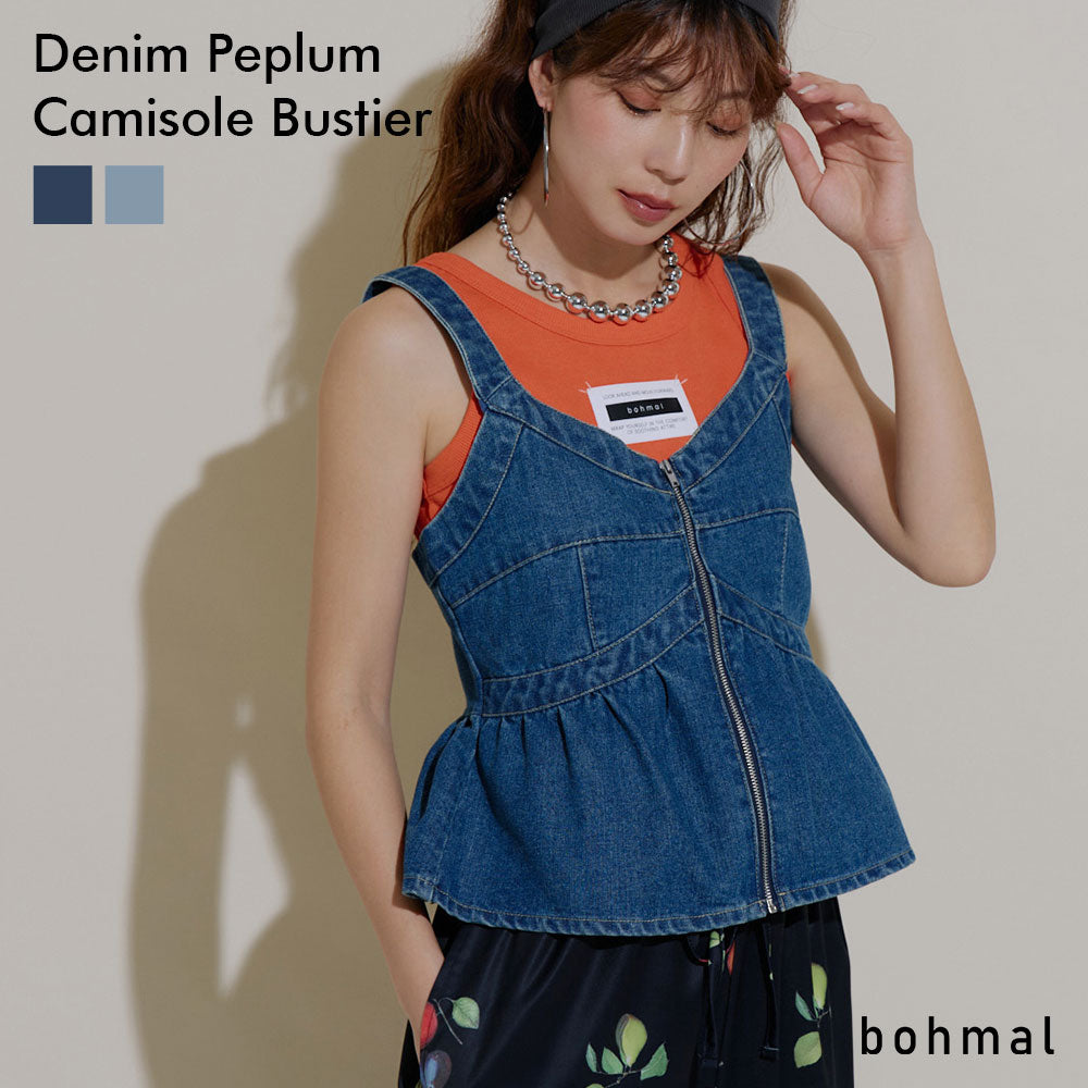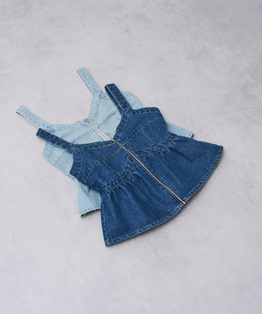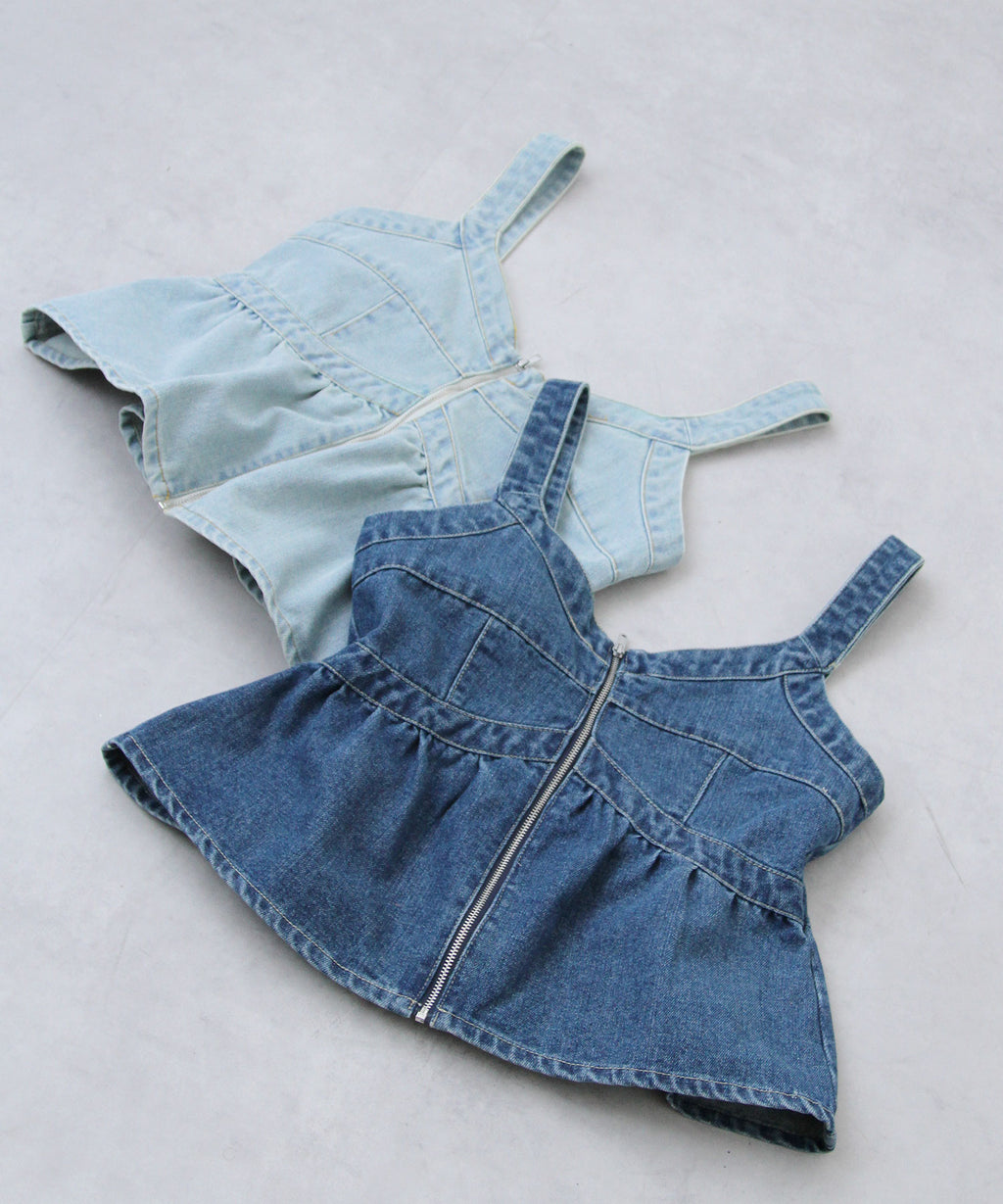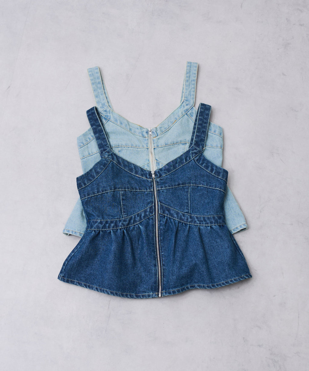 立体的なペプラムシルエットが目を惹く、デニム素材のキャミビスチェ。