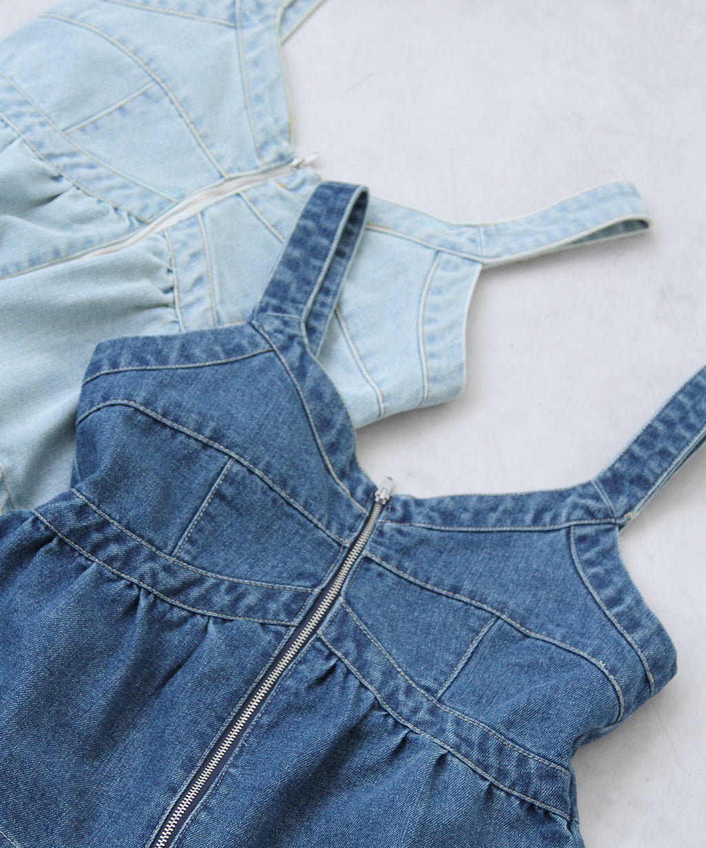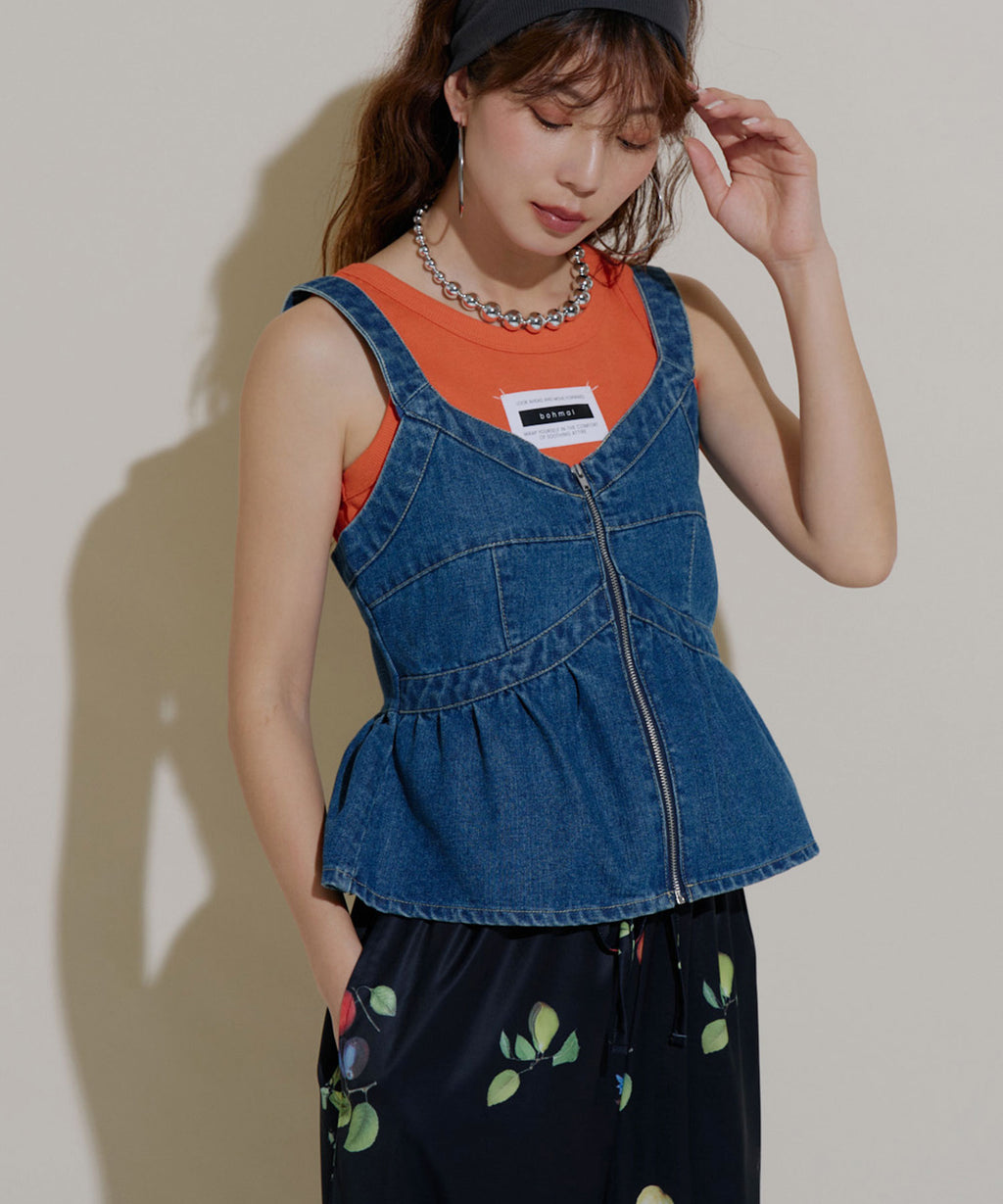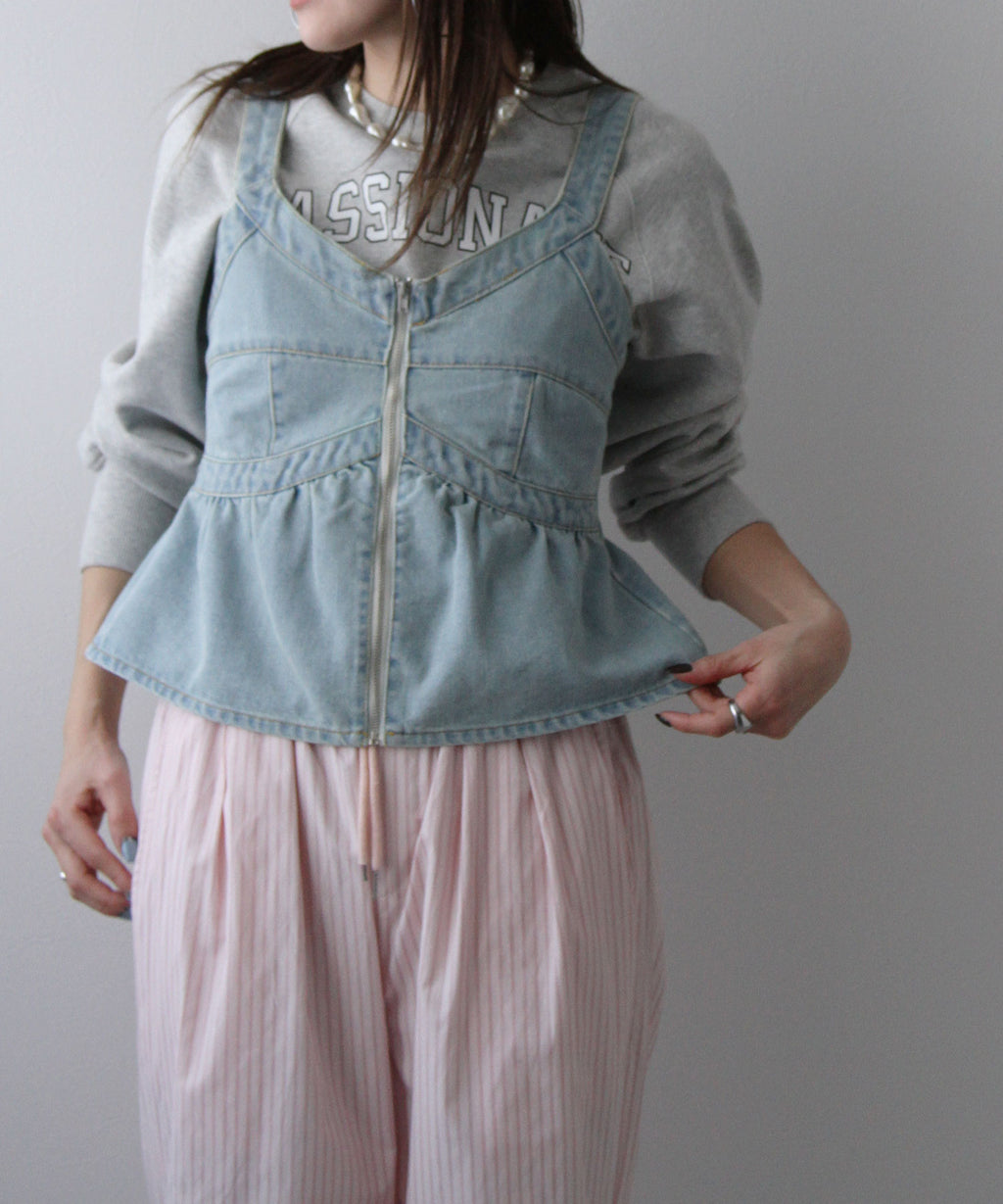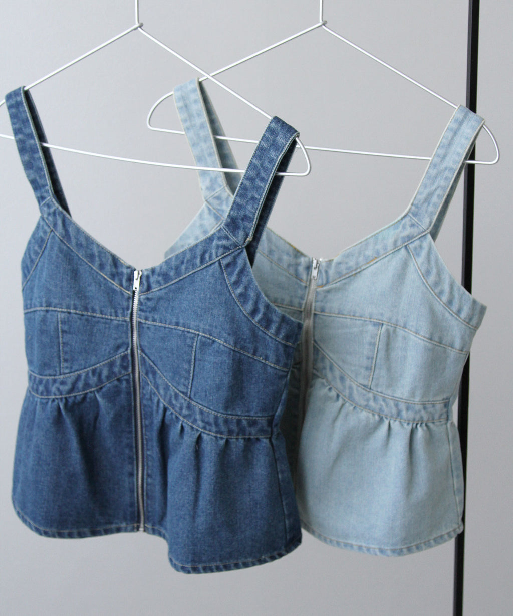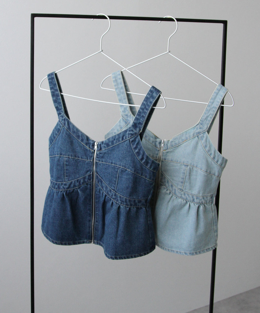 立体的なペプラムシルエットが目を惹く、デニム素材のキャミビスチェ。