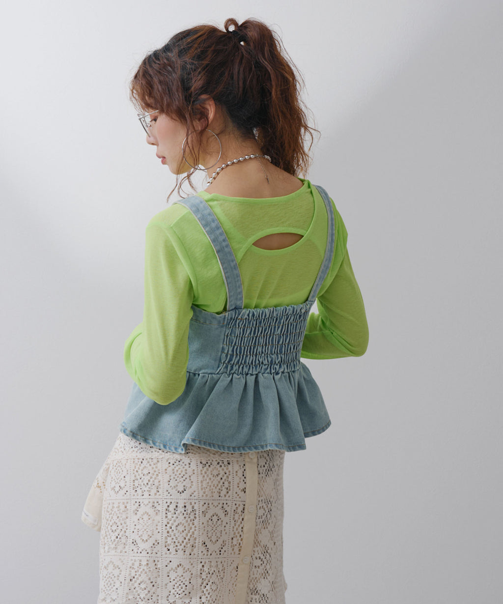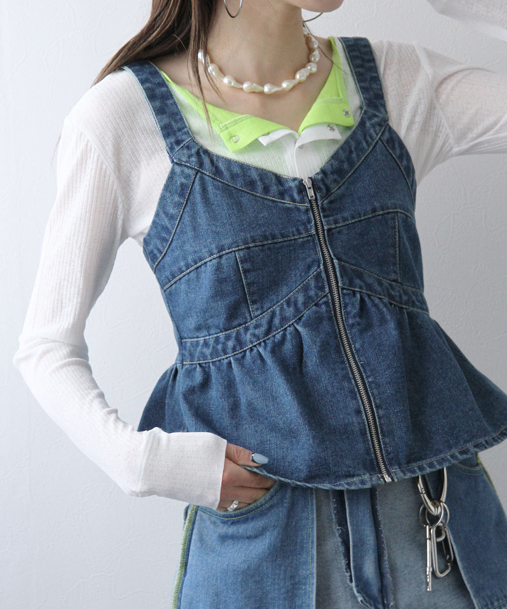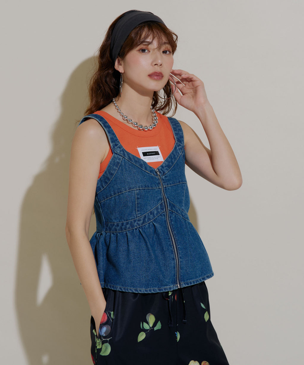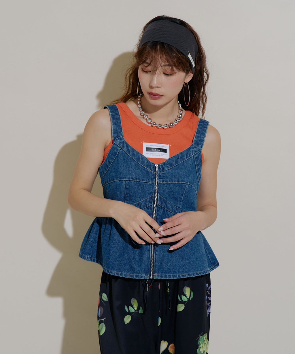 立体的なペプラムシルエットが目を惹く、デニム素材のキャミビスチェ。
