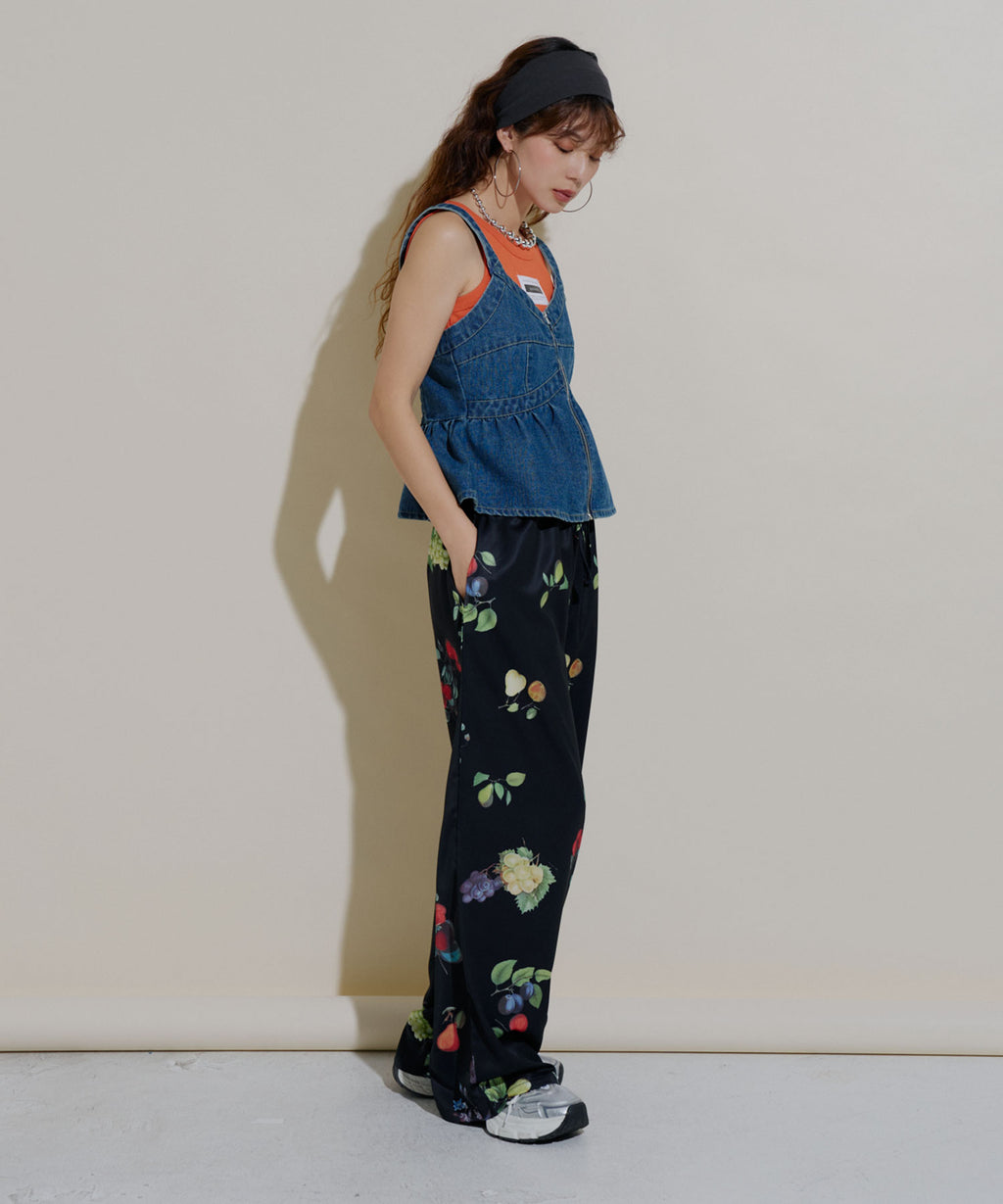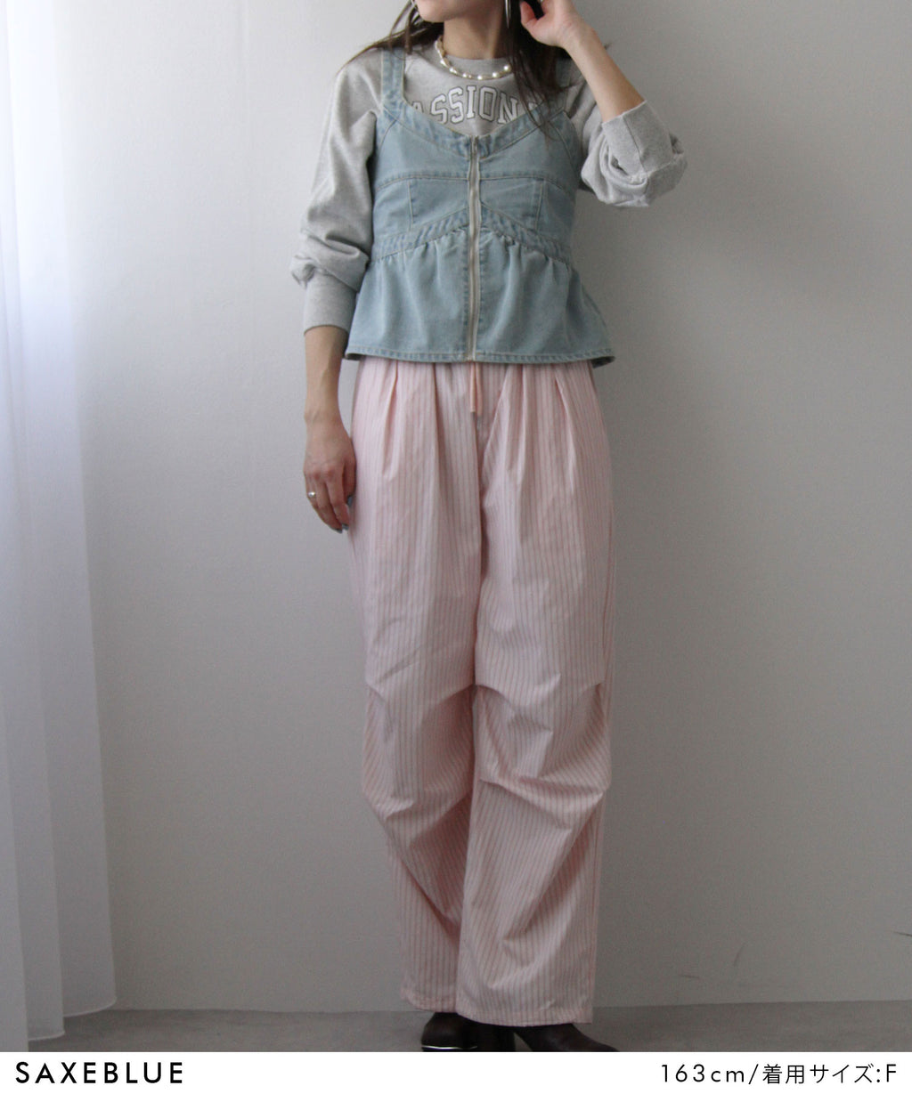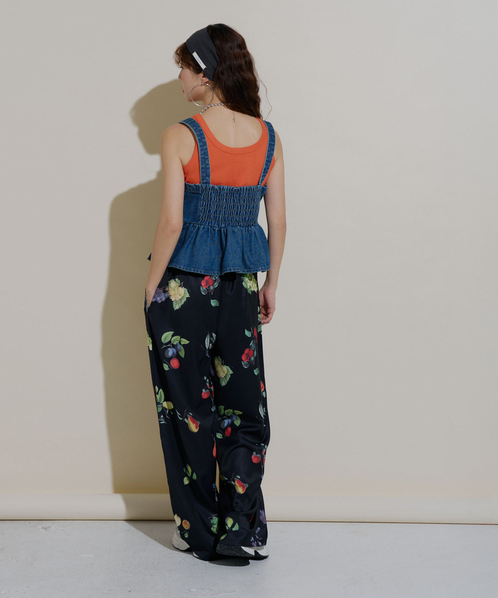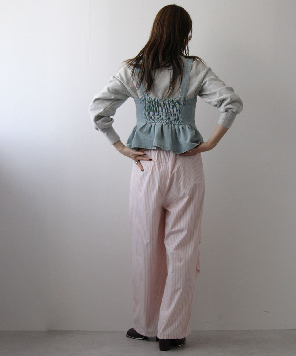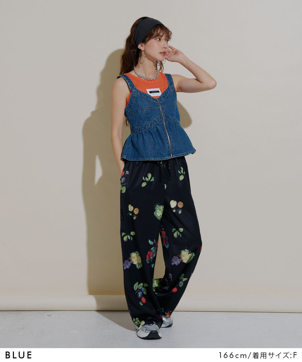立体的なペプラムシルエットが目を惹く、デニム素材のキャミビスチェ。