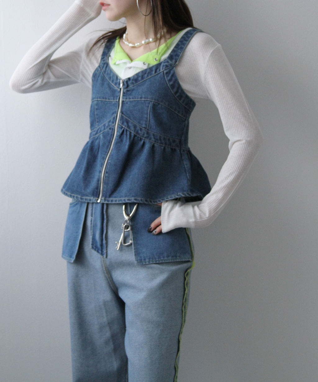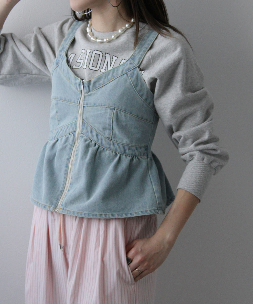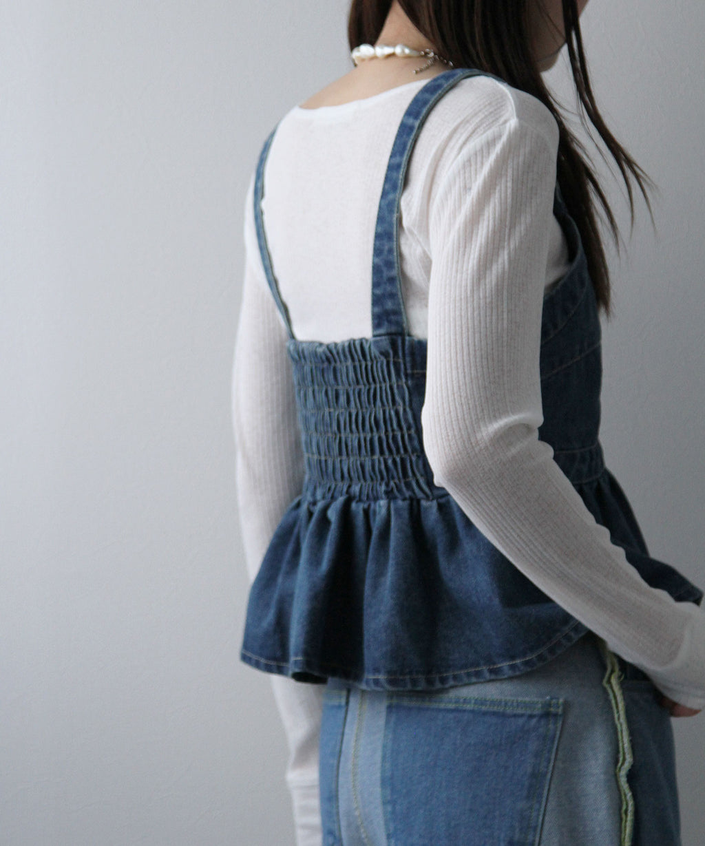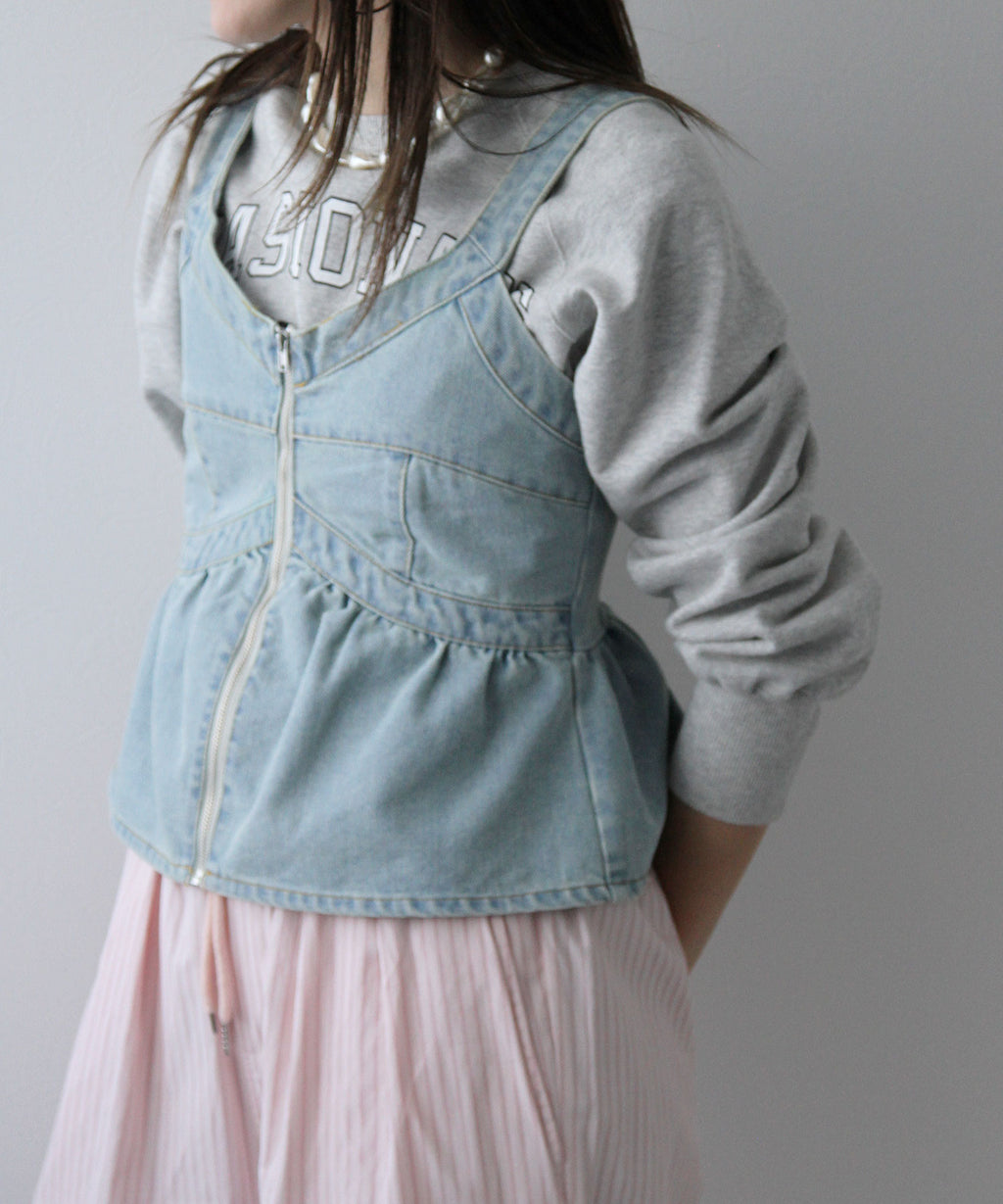 +1でコーデが垢抜ける、デニムペプラムビスチェ。