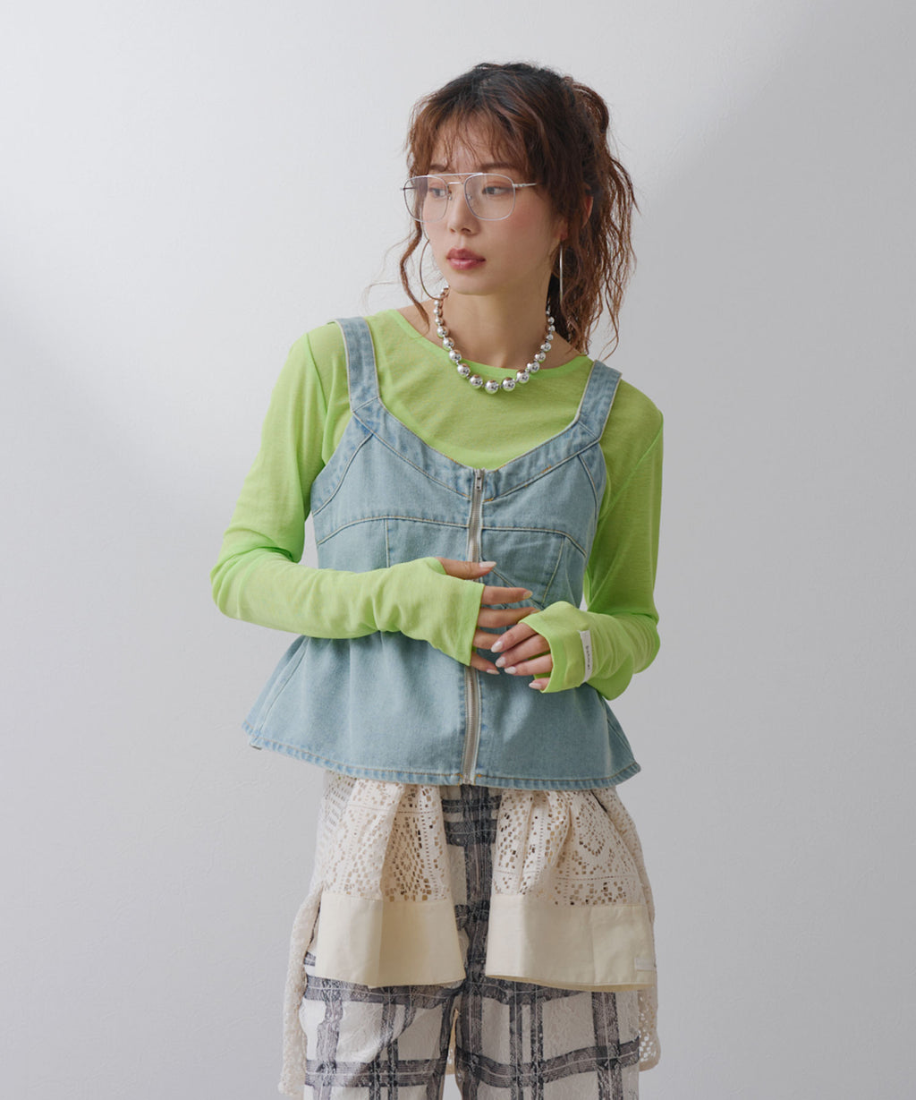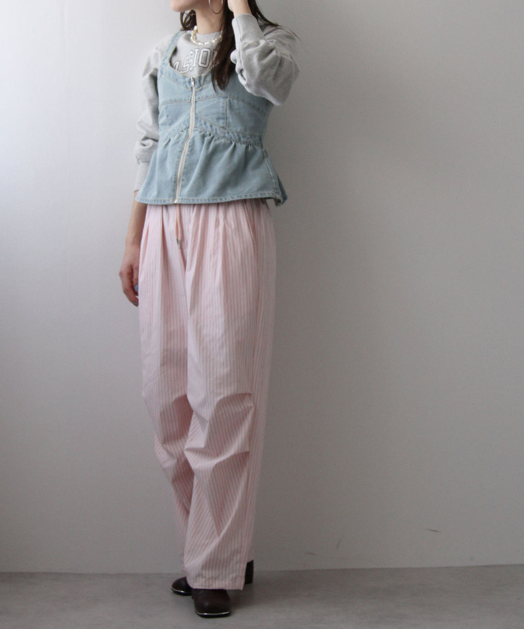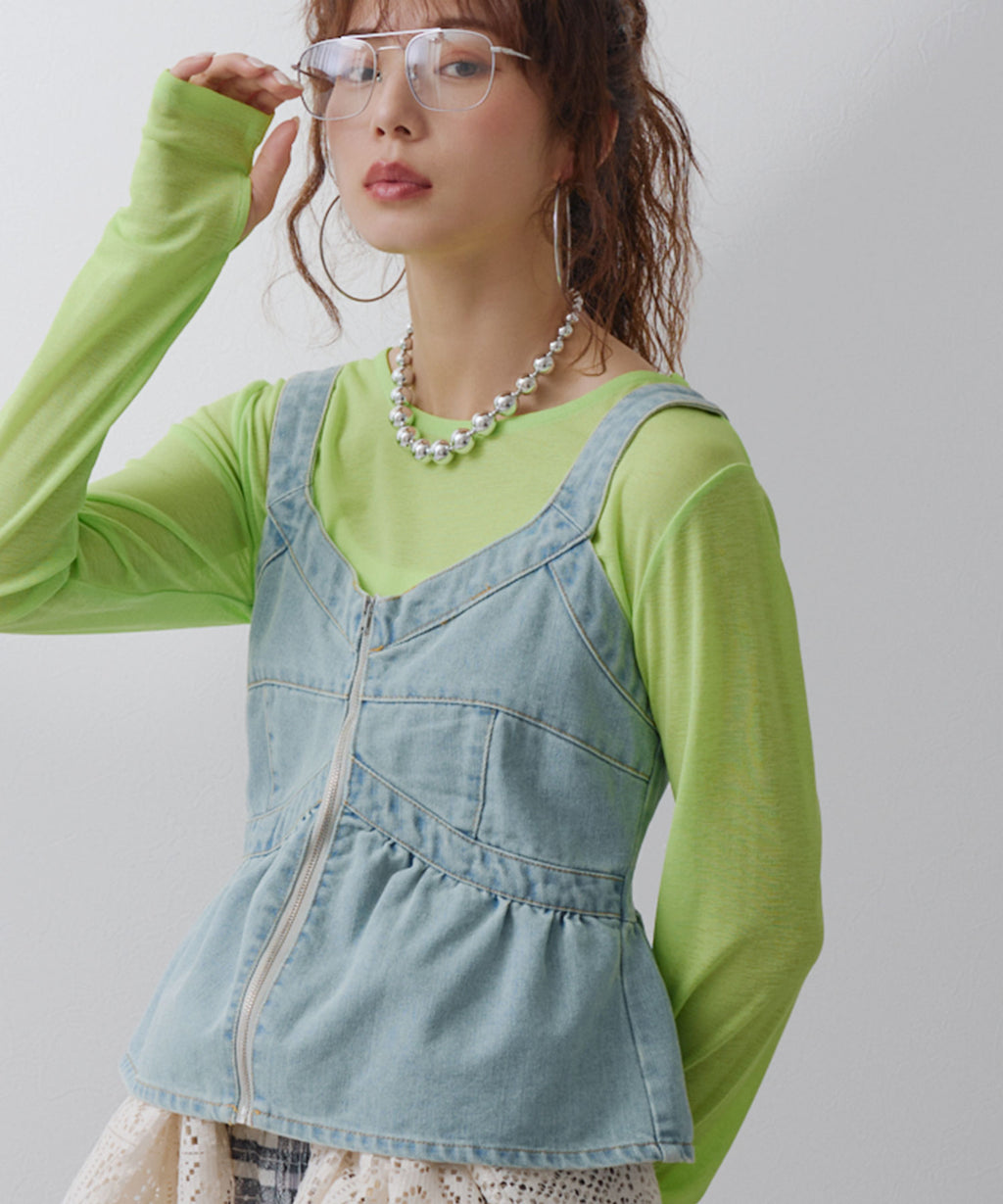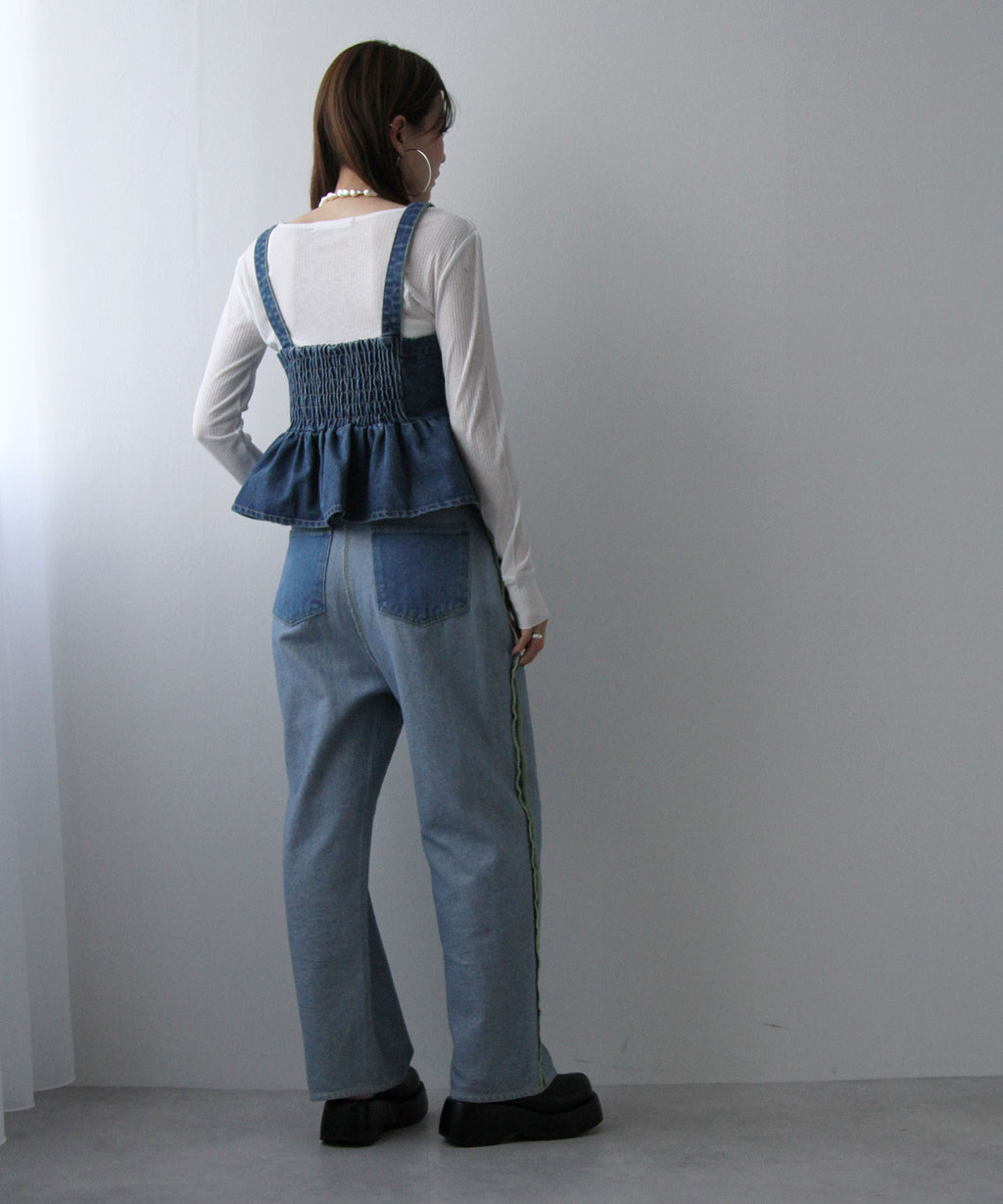 +1でコーデが垢抜ける、デニムペプラムビスチェ。
