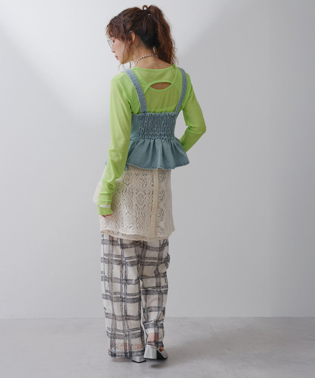 季節が進めば、Tシャツやタンクトップ、キャミソールとのレイヤードもおすすめ。