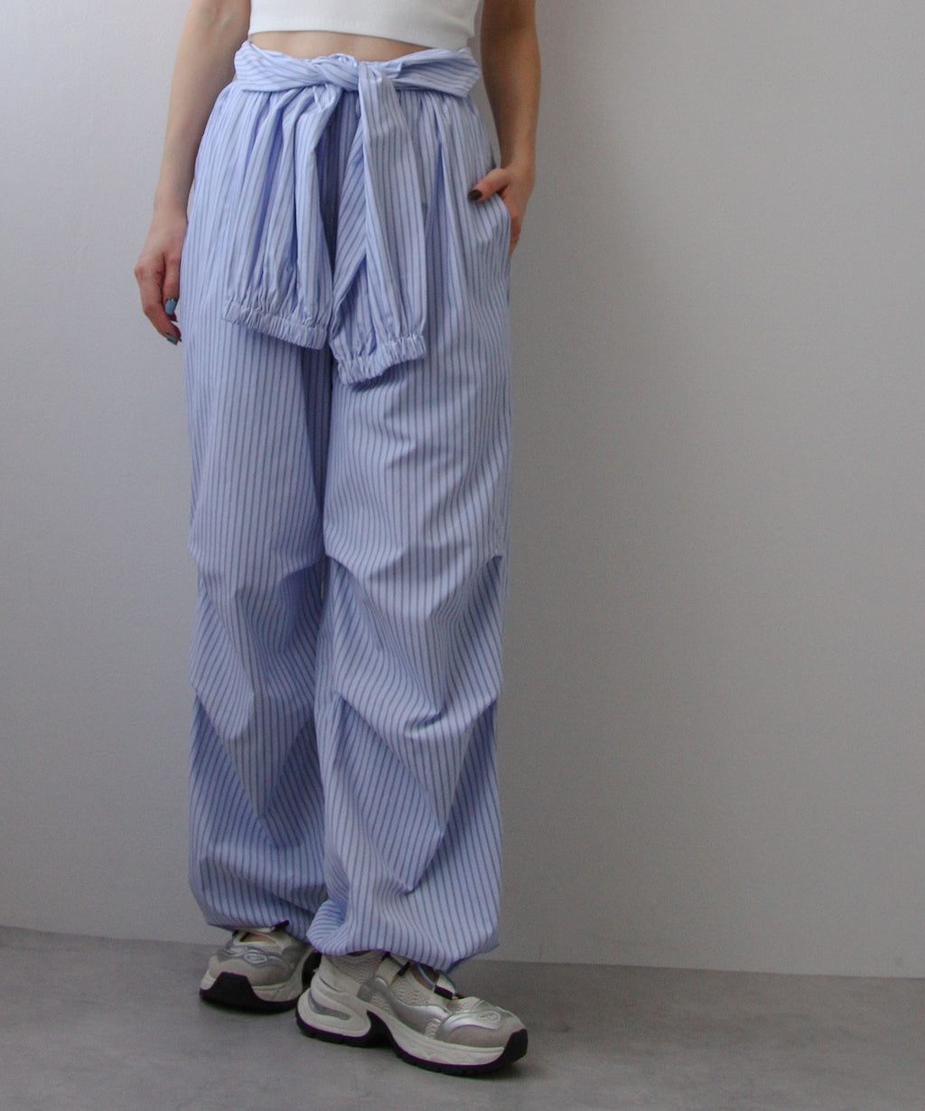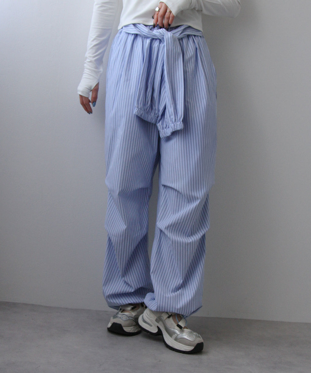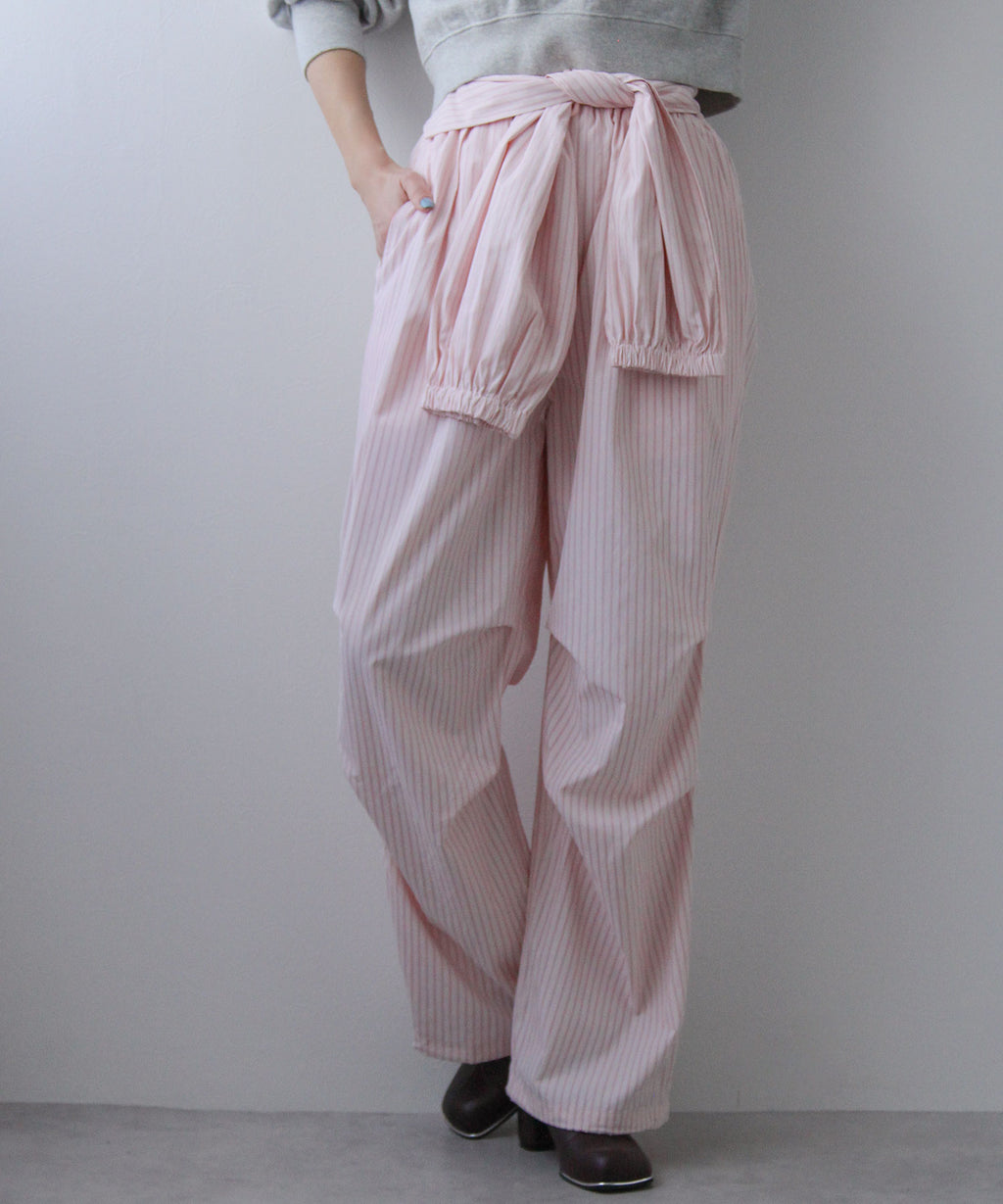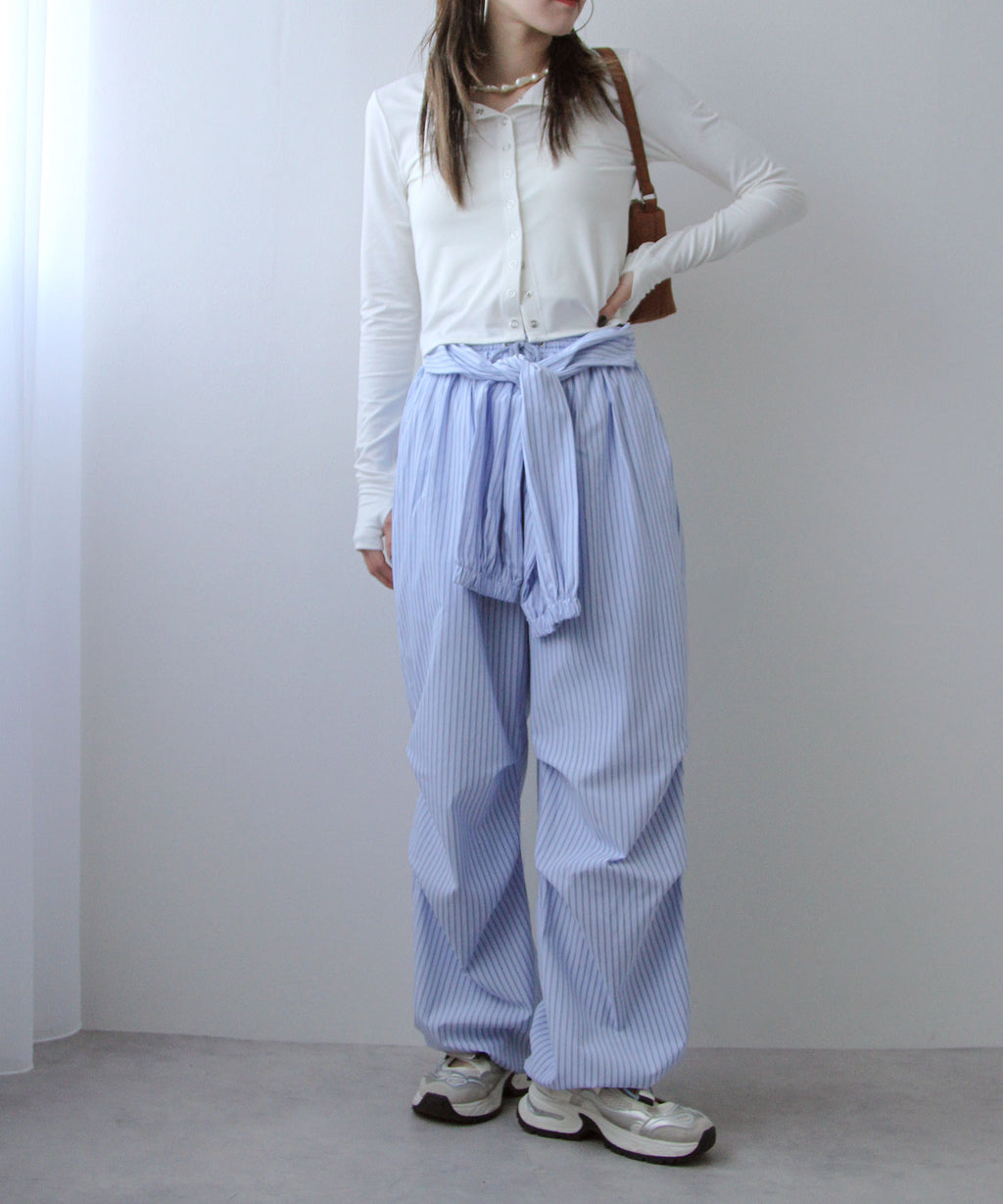 取り外し可能なウエスト巻きデザインで、コーデの印象を自在にチェンジ。
